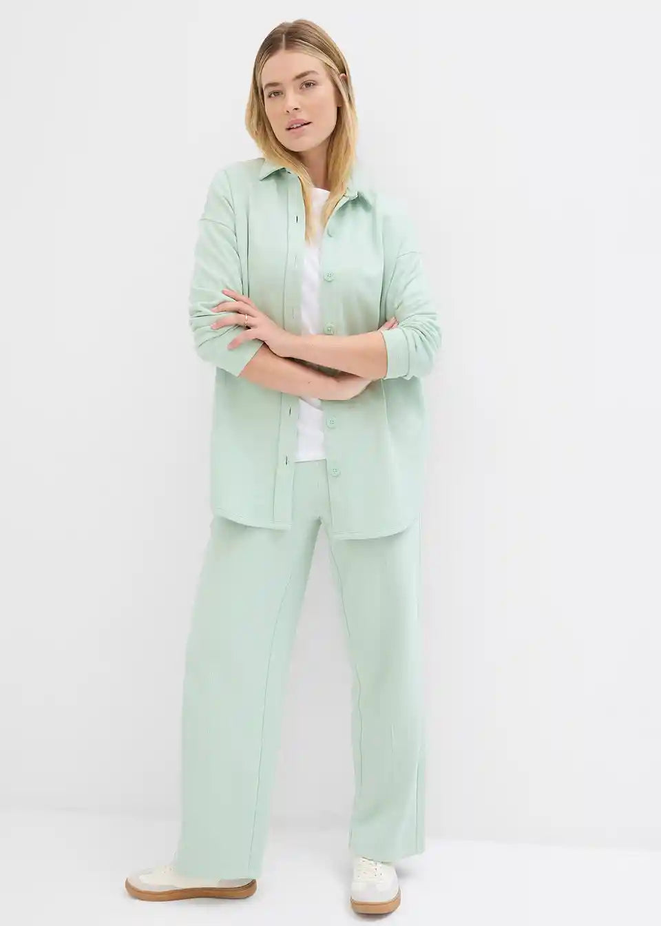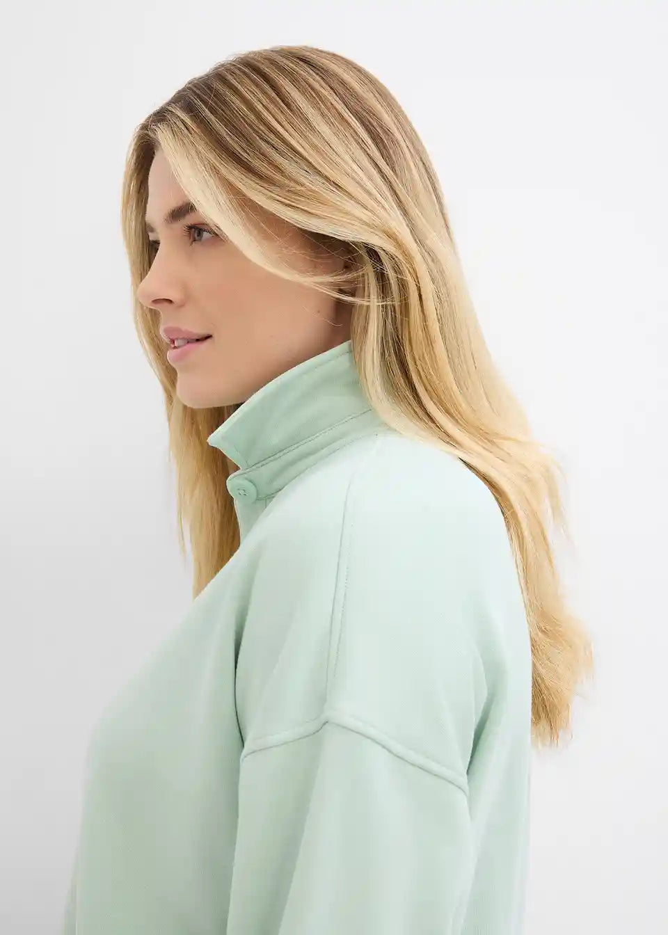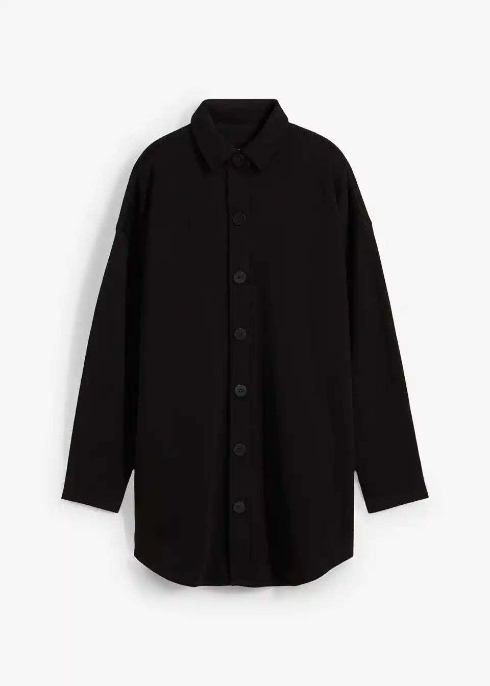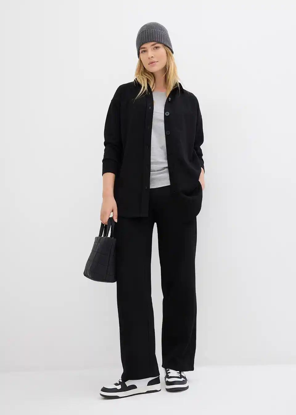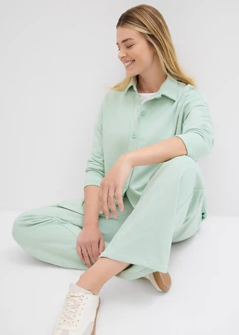 Lange Sweatjacke mit Knopfleiste und Eingriffstaschen