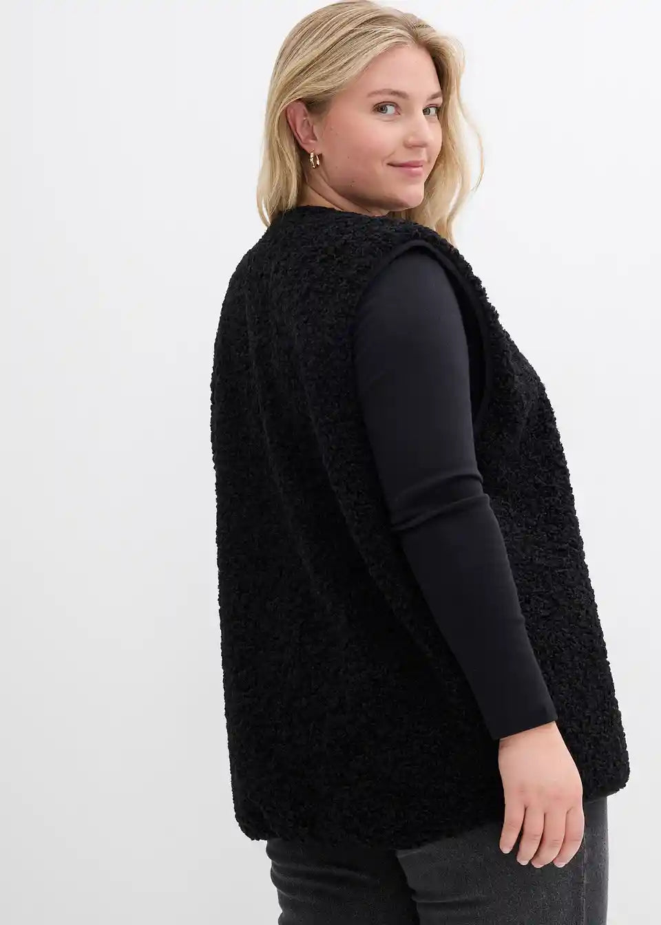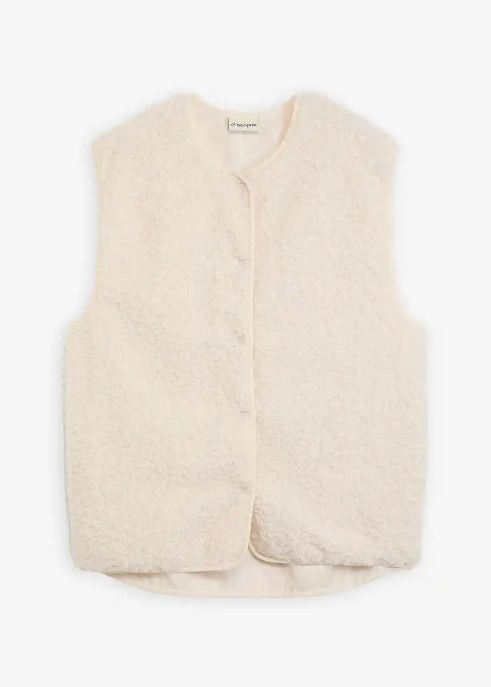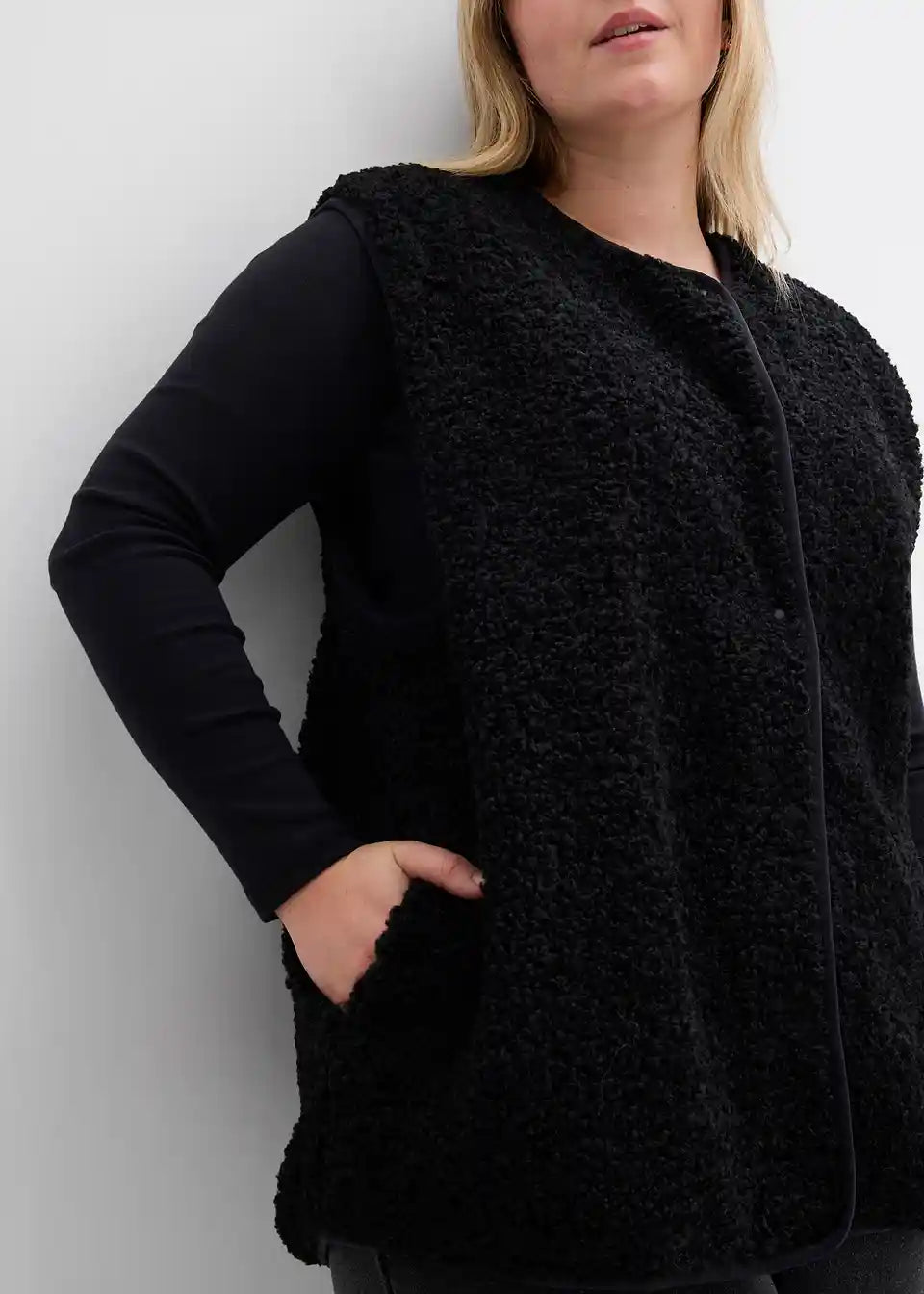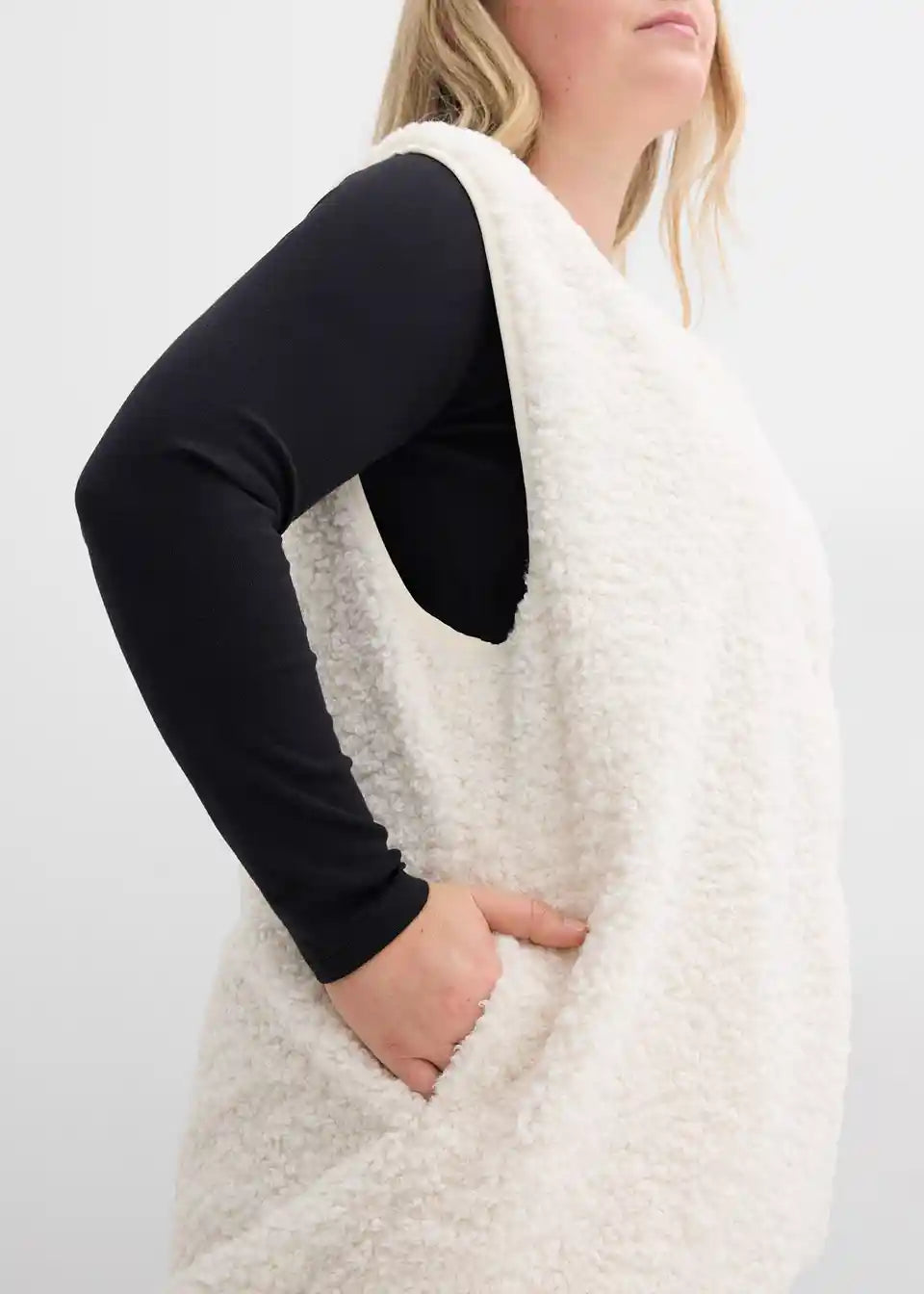 Weit geschnittene Fleece-Weste aus Teddyfleece mit seitlichen Eingriffstaschen.