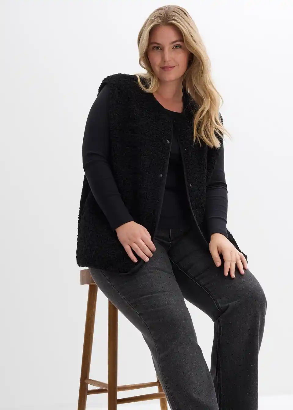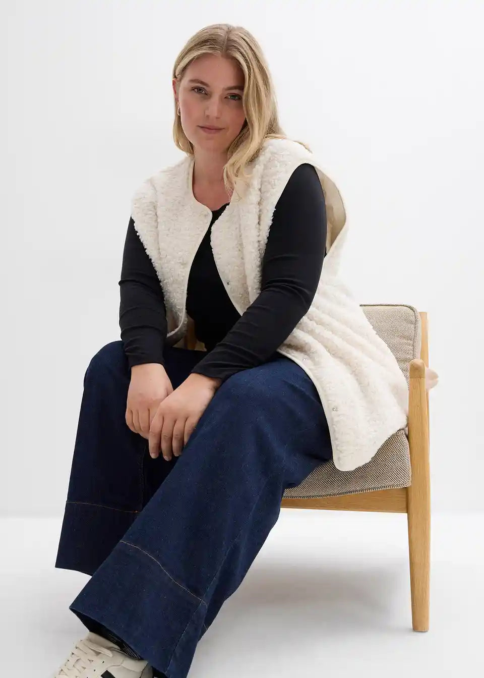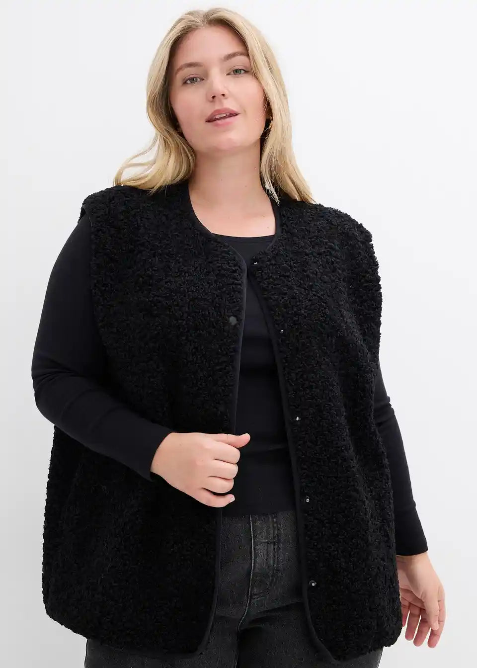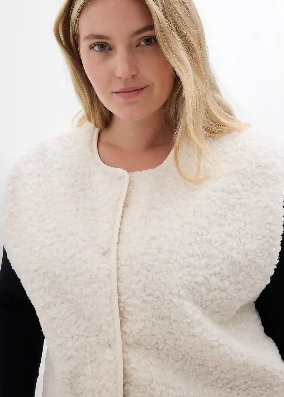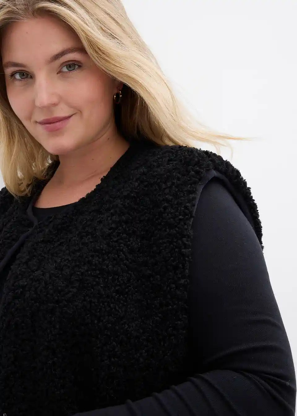 Weit geschnittene Fleece-Weste aus Teddyfleece mit seitlichen Eingriffstaschen.