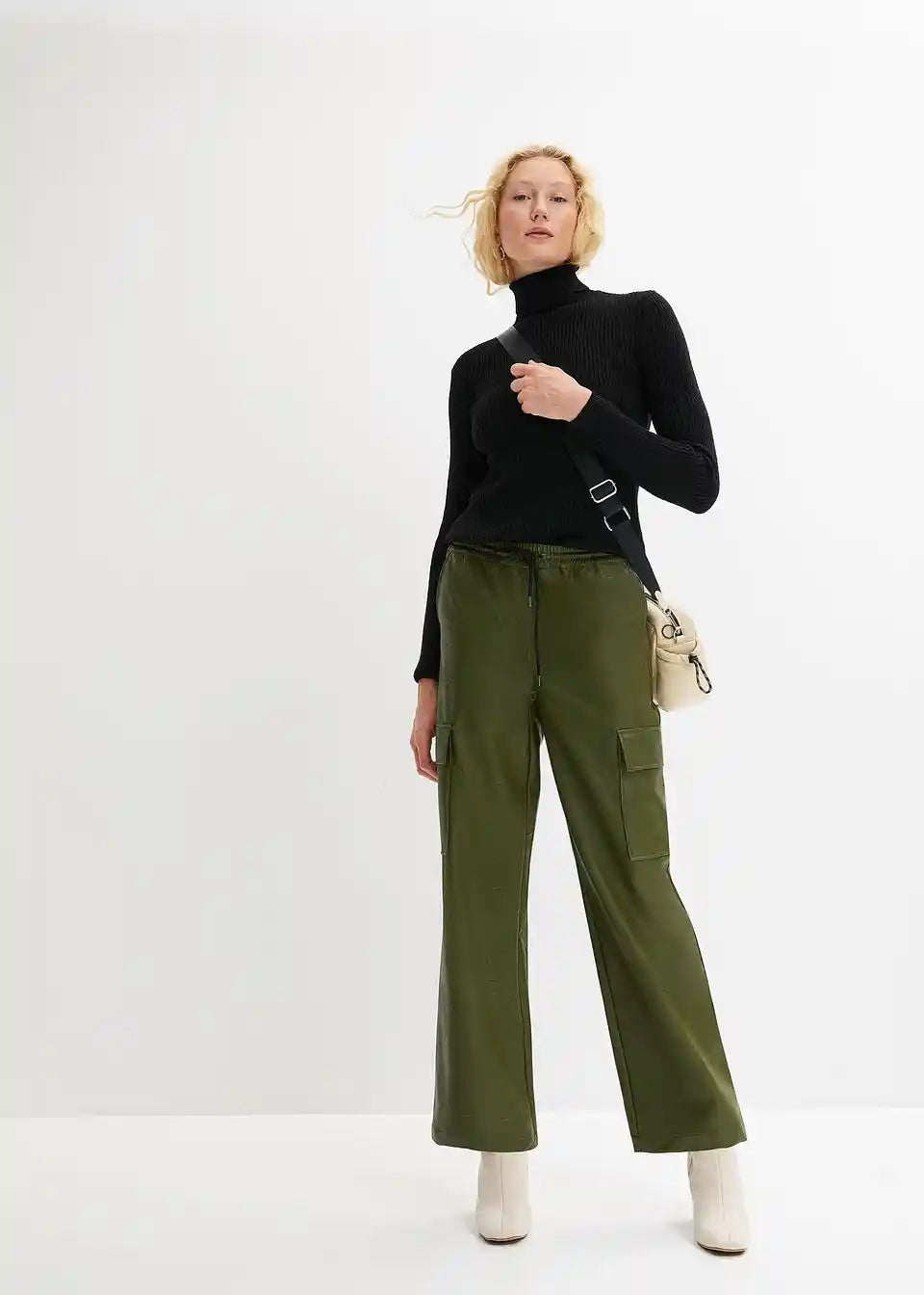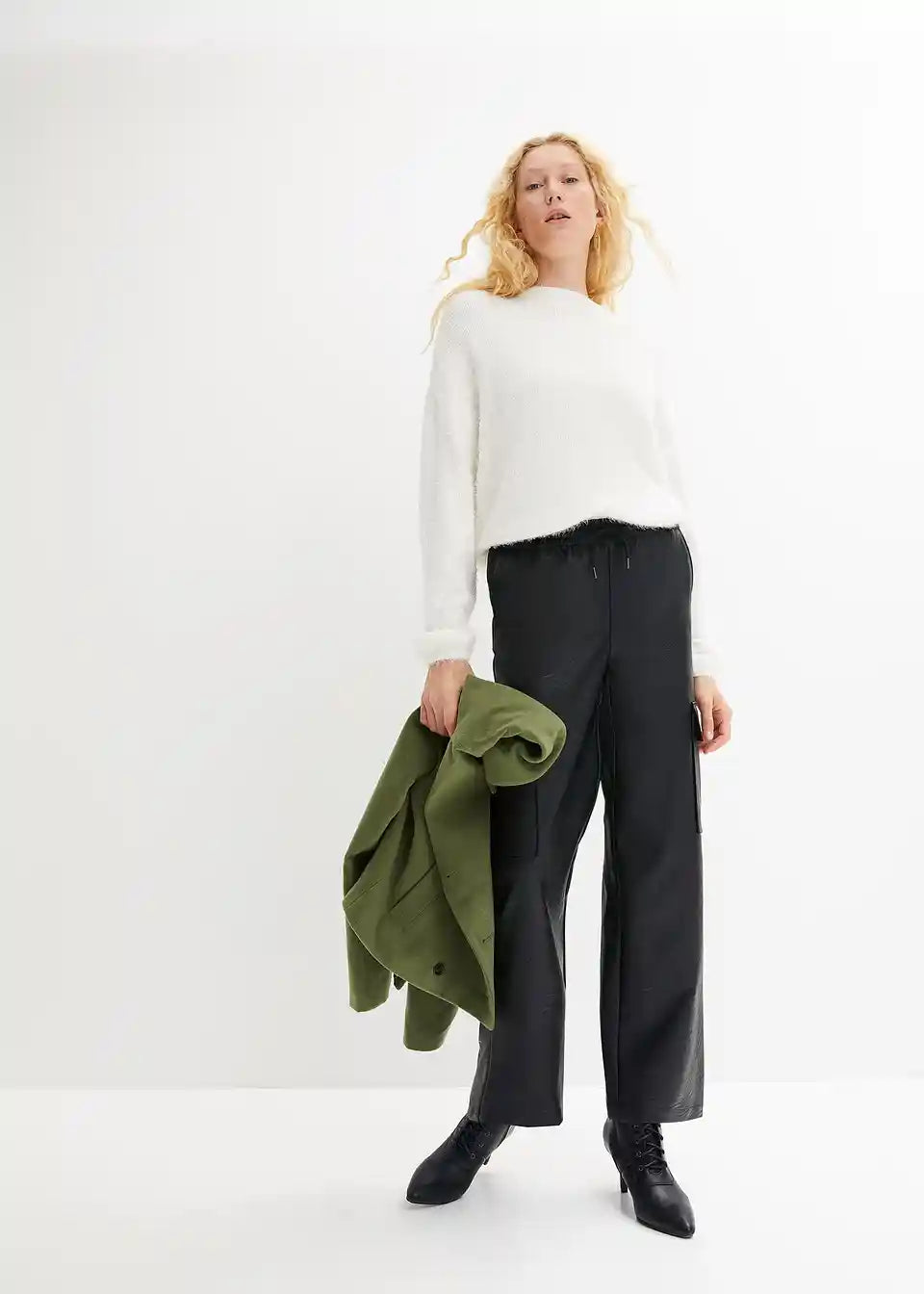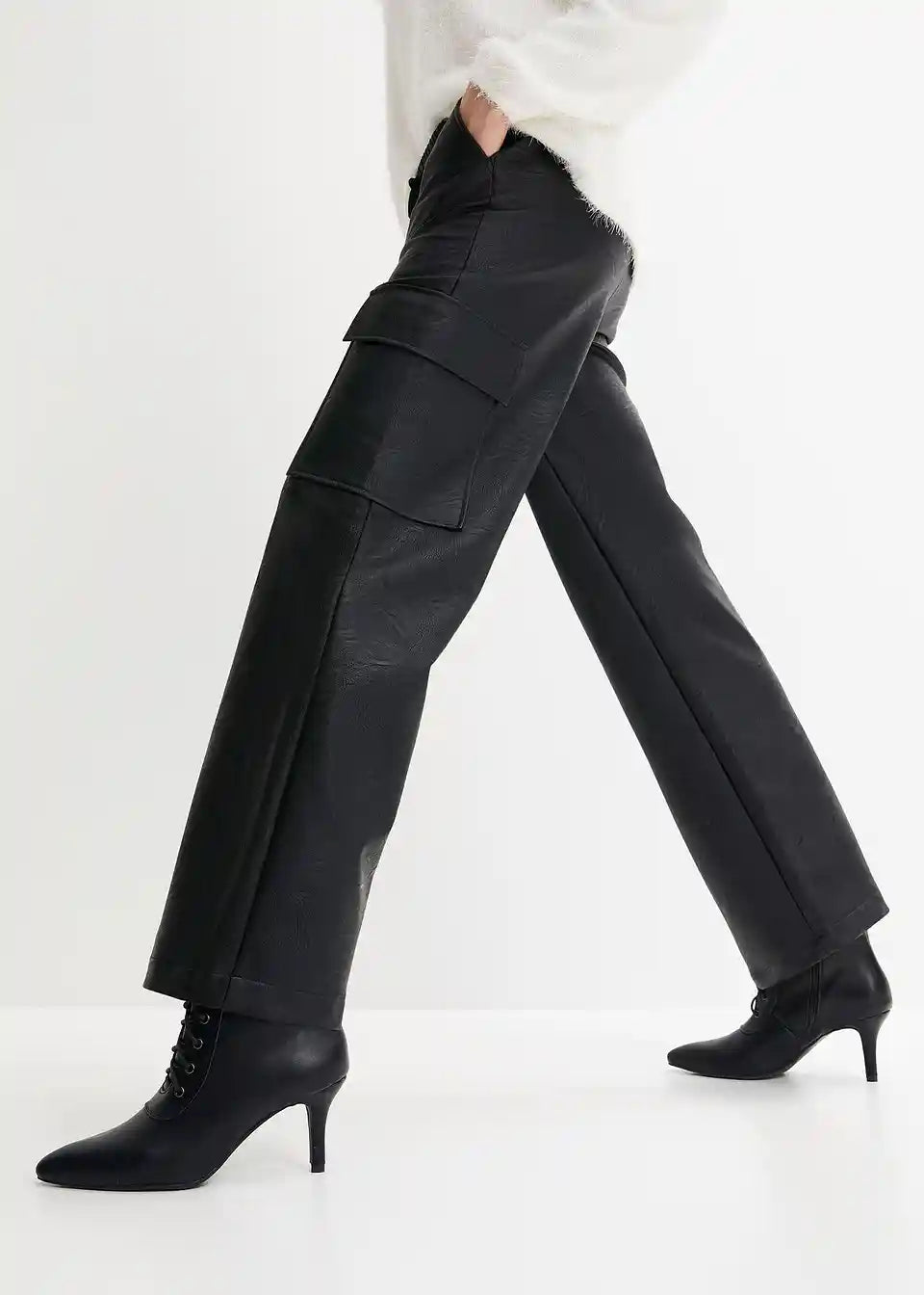 trendige Lederimitat-Hose mit elastischem Gummibund