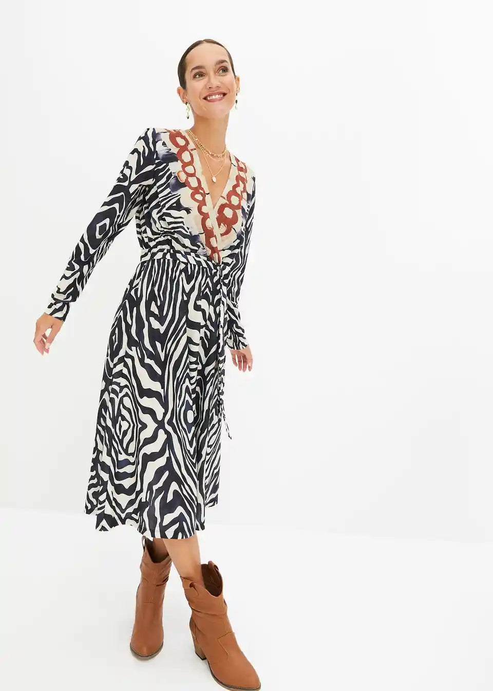 Stylisches Kleid mit schwingendem Rock und schönem Muster