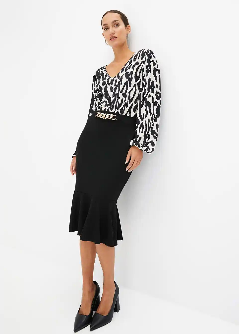 Modernes Kleid mit Kettenaccessoire in der Taille