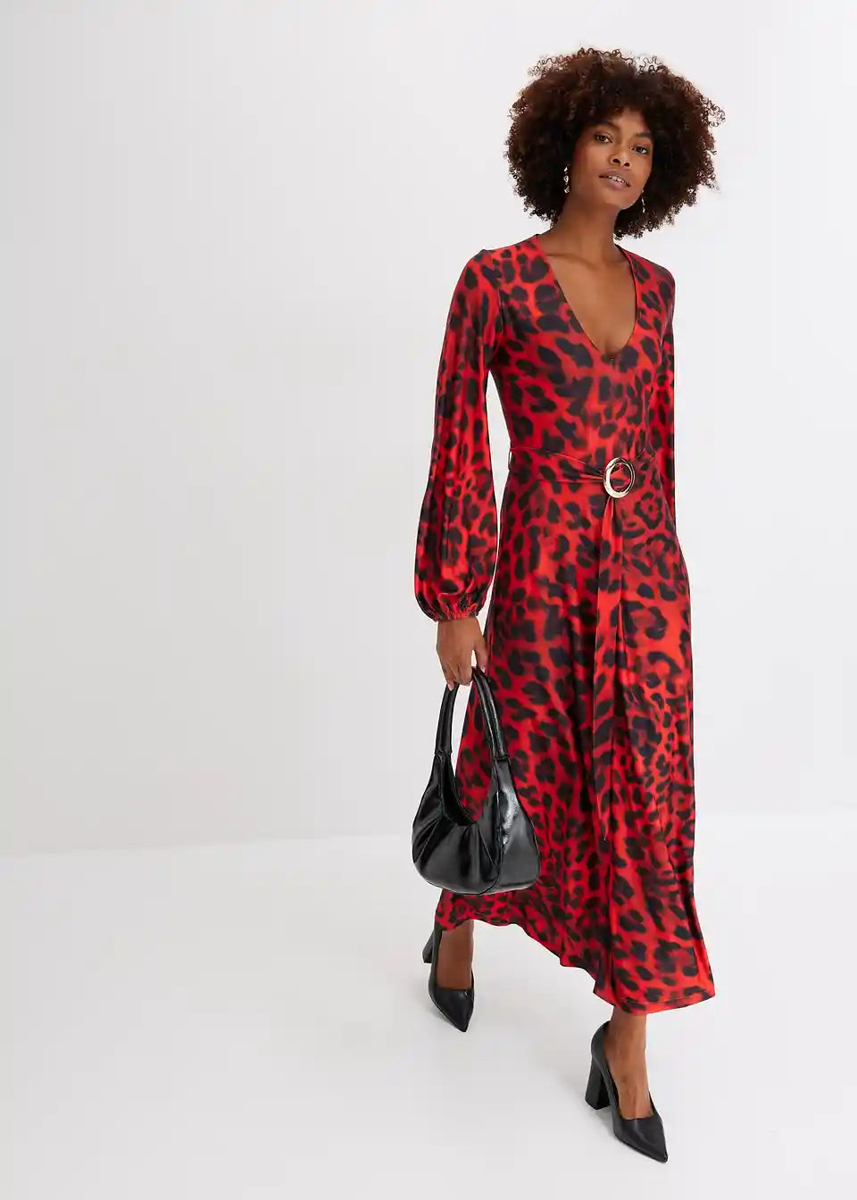 Modern und feminin: Maxikleid in Jersey mit Taillenband und Metallring.
