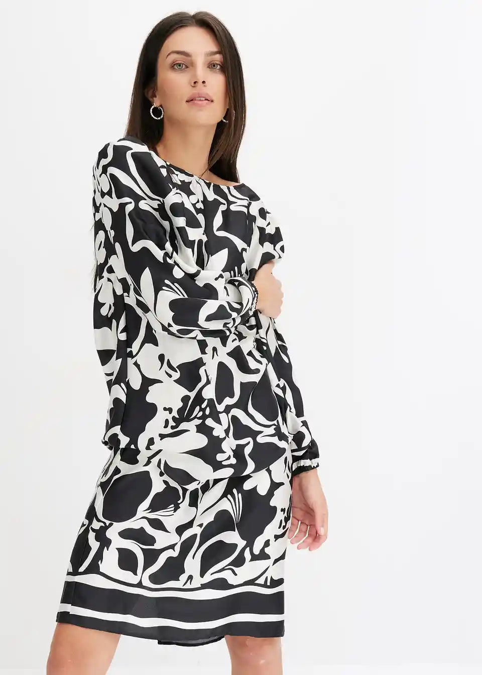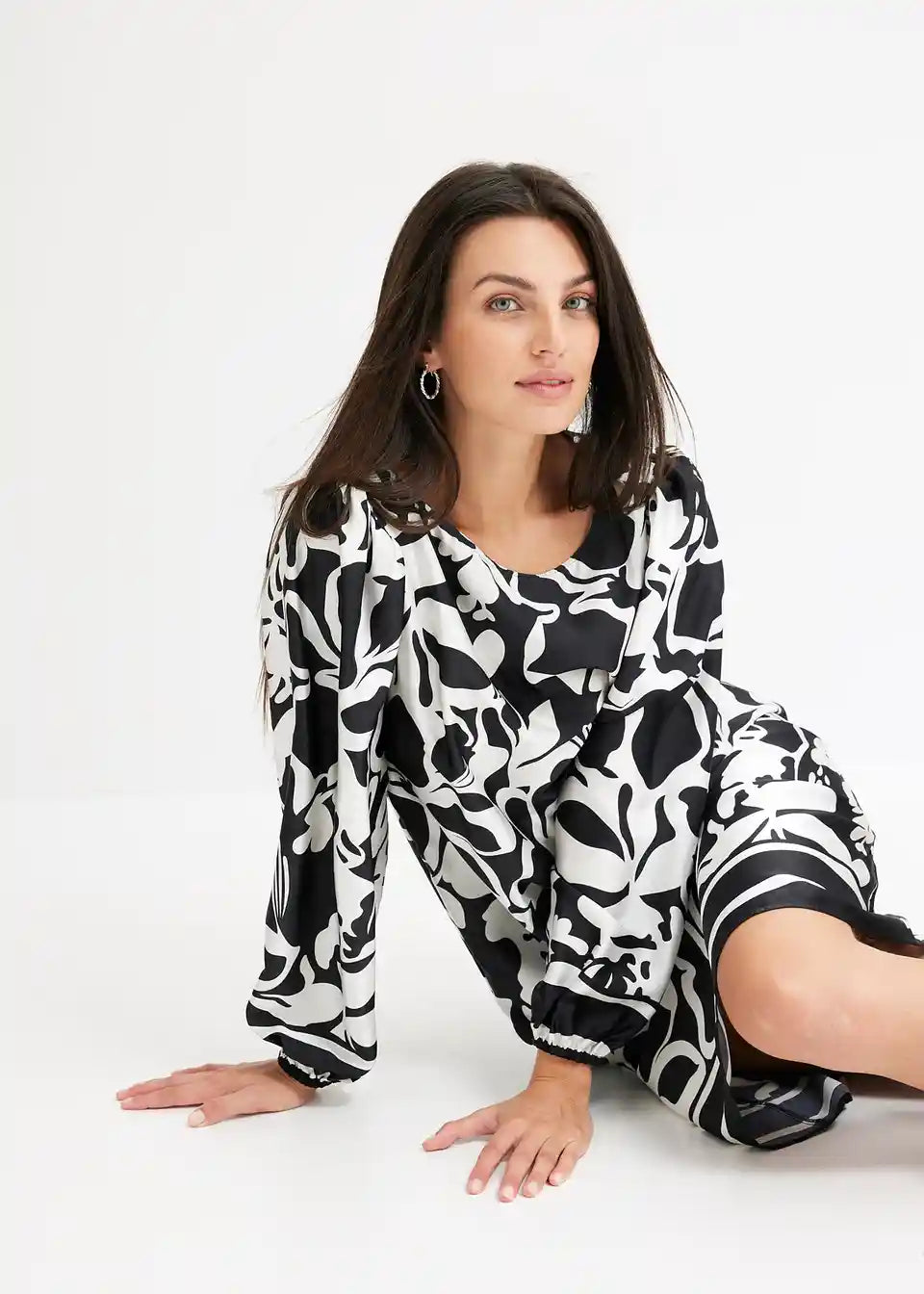 Modern und feminin: Blusen-Kleid aus fließendem Material in Mini-Länge
