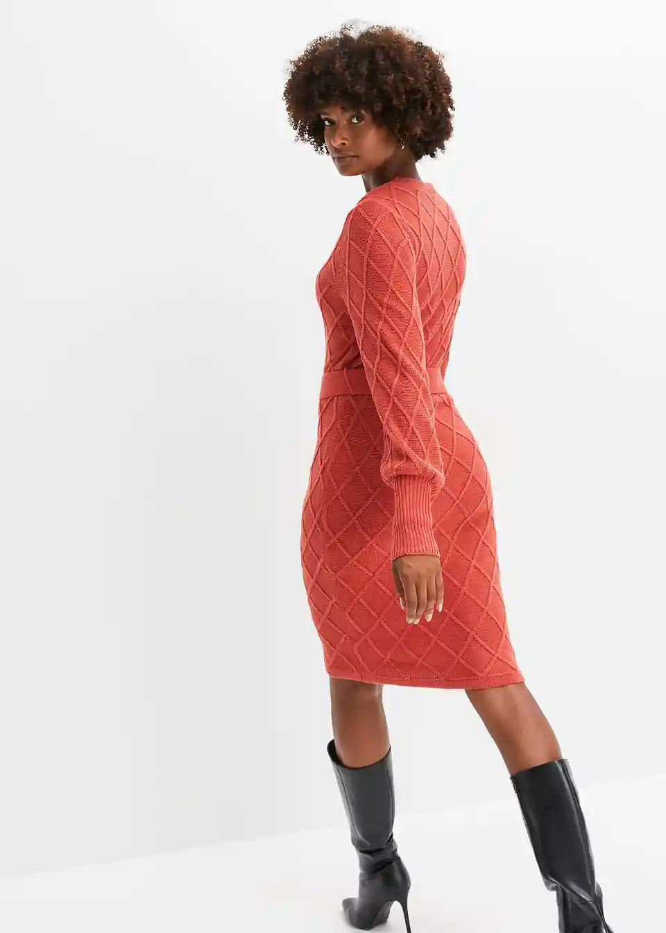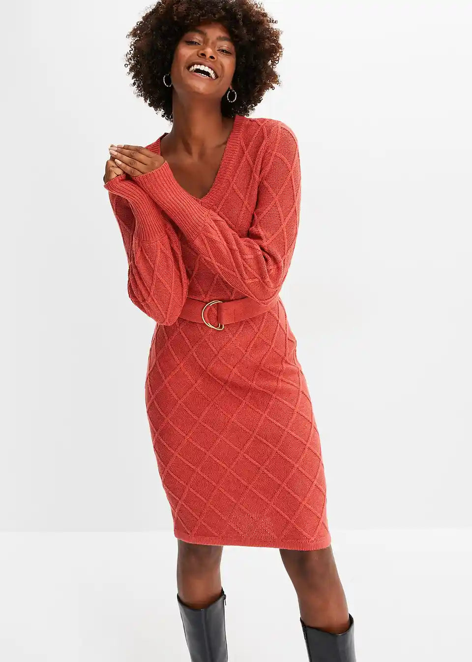 Modern und Feminin: Strickkleid mit Bindeband und Ringschnalle.