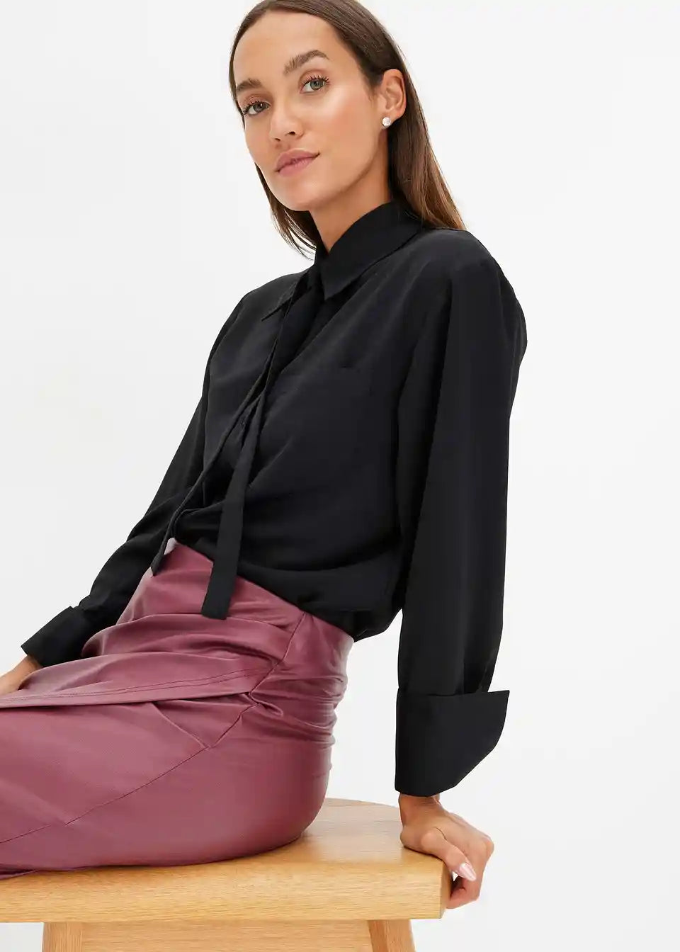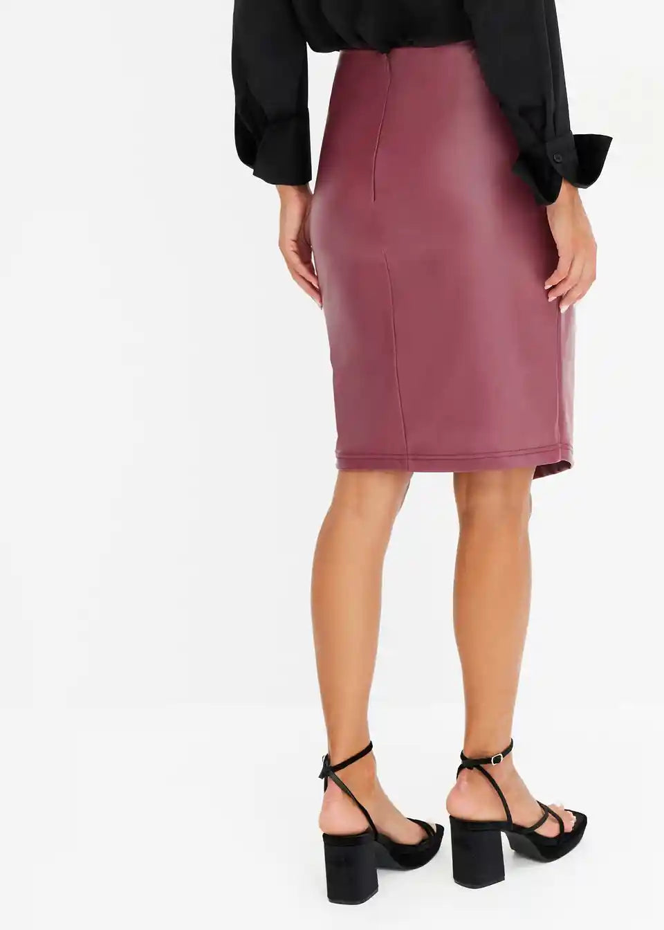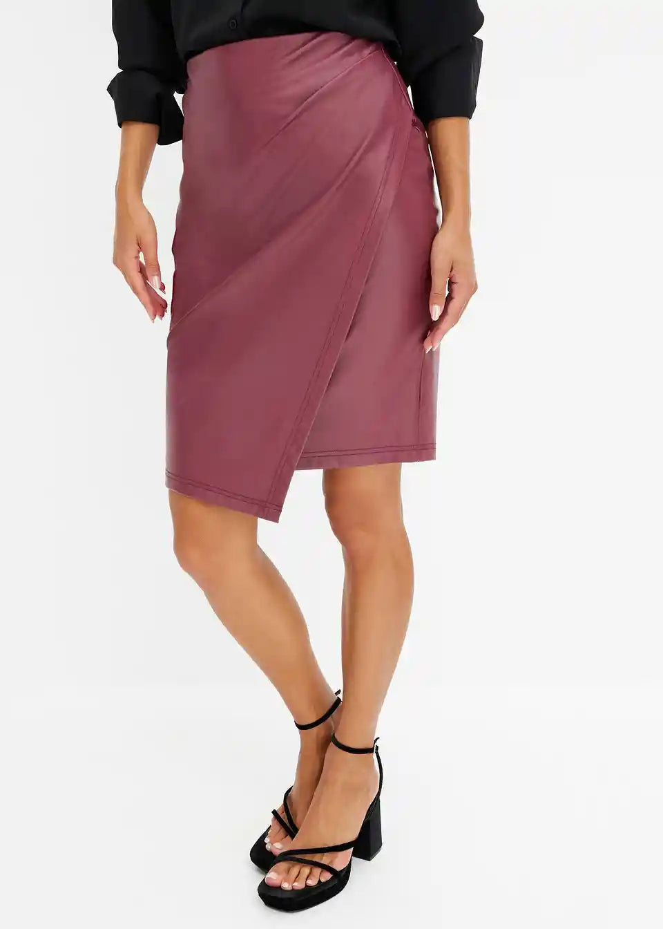 Modern und feminin: Lederimitat-Rock in Mini-Länge mit Raffungen im Wickeloptik