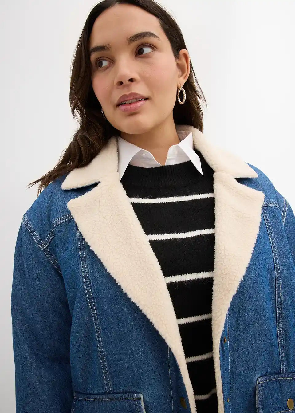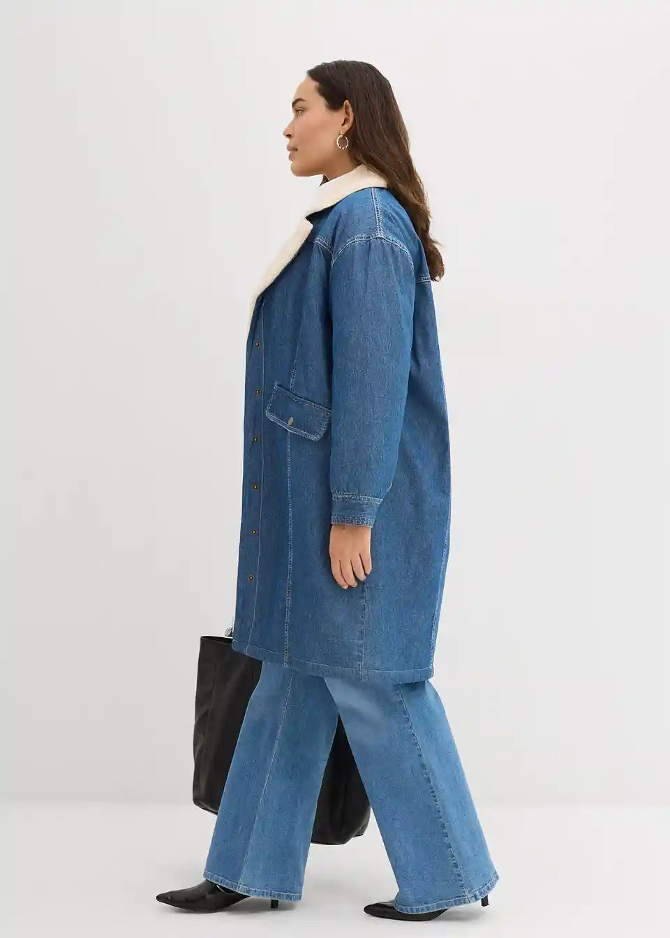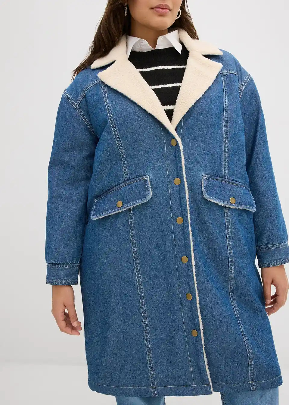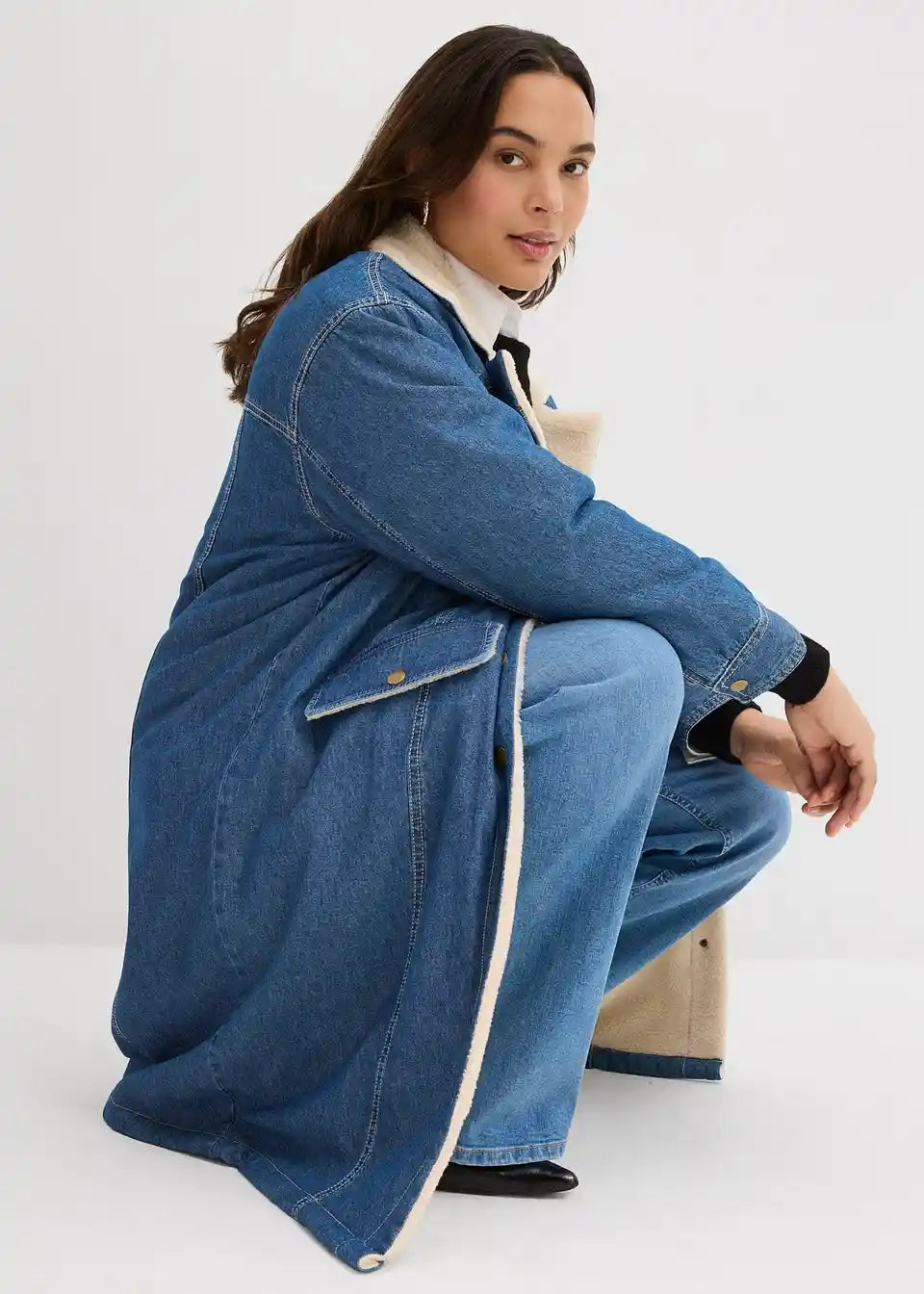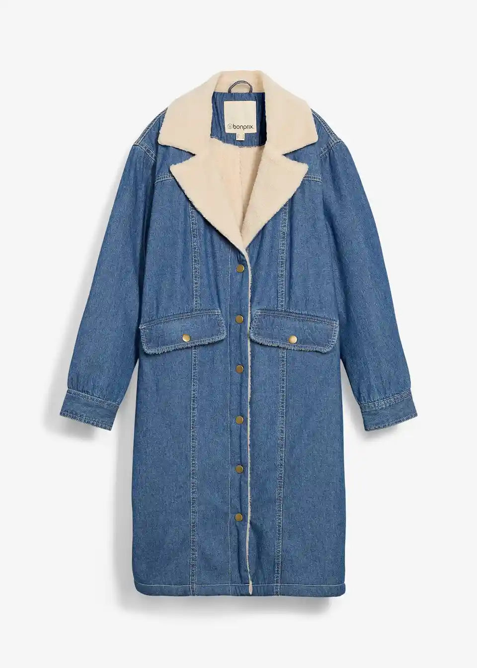 Denim-Wintermantel, warm gefüttert mit Teddy