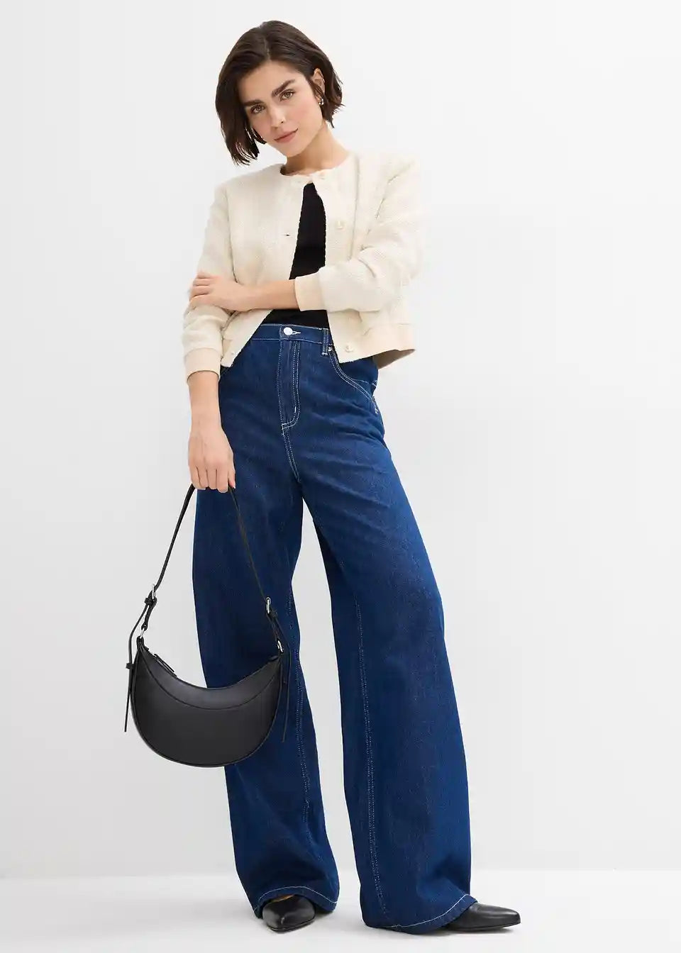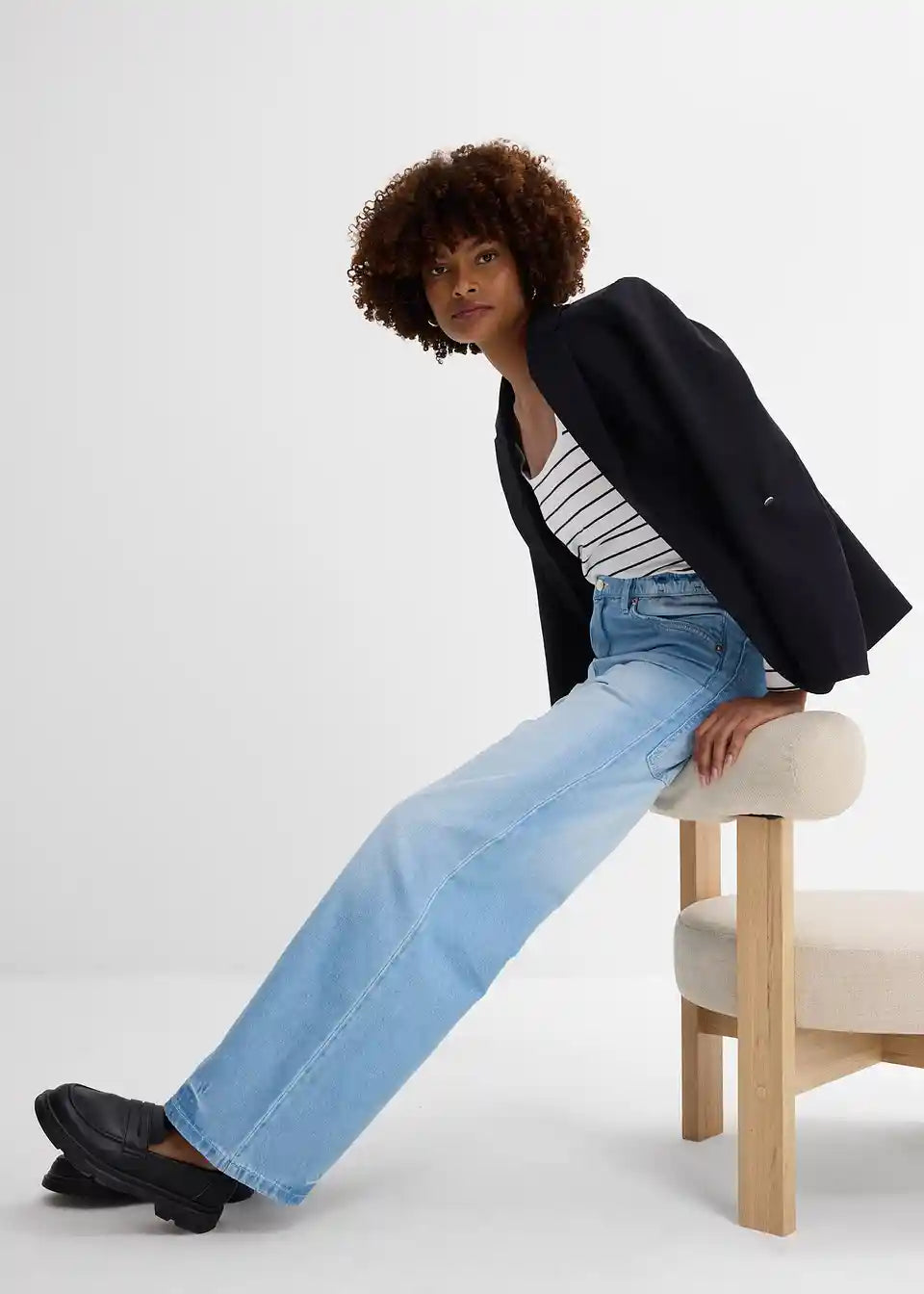 Wide-Leg-Jeans Mid Waist, Bequembund