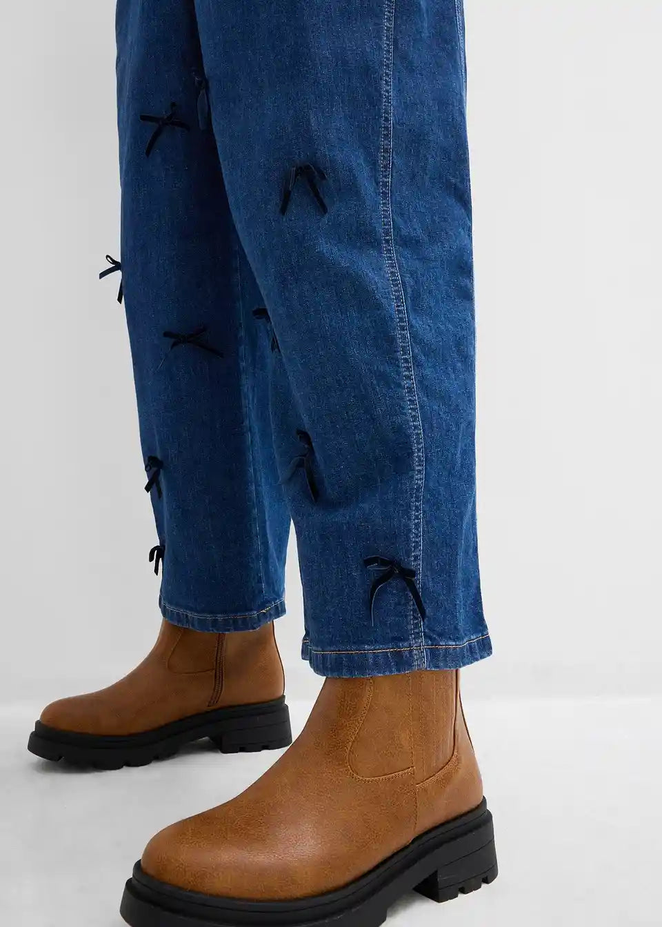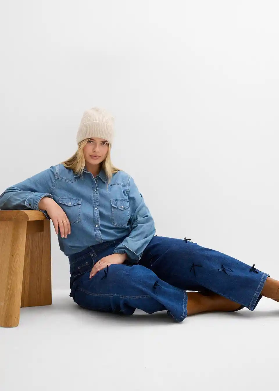 Barrel-Jeans High Waist, Bequembund mit Schleifen