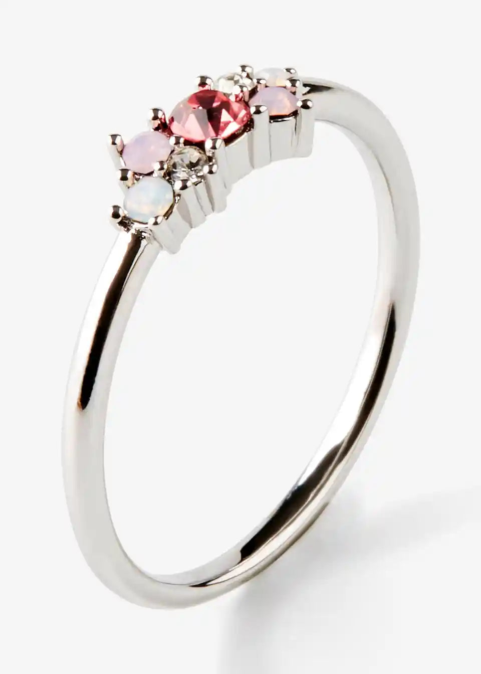 Hübscher Ring mit Beerenfarbigen Glaskristallsteinen