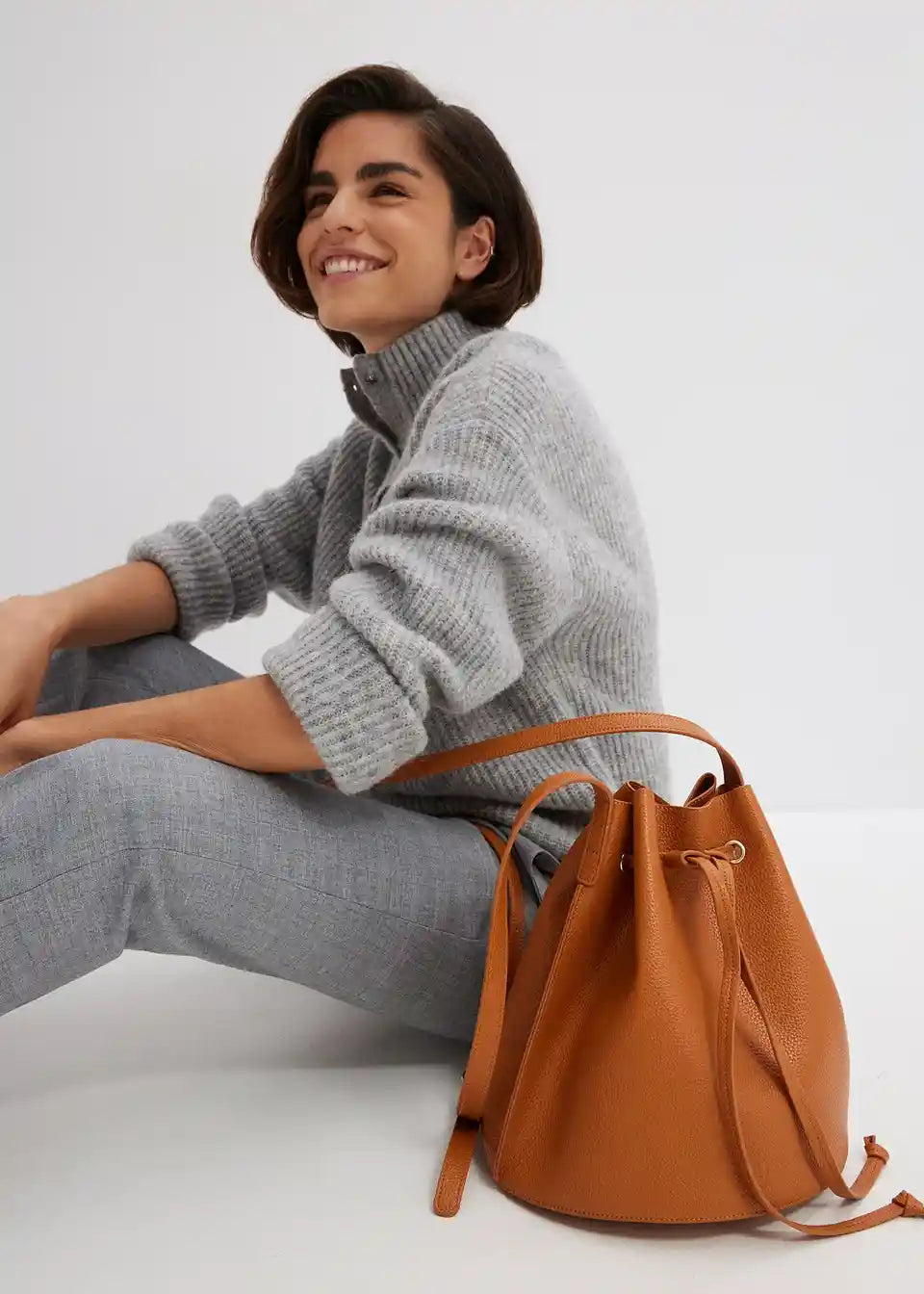 Zeitlos schlichte Beuteltasche aus Lederimitat