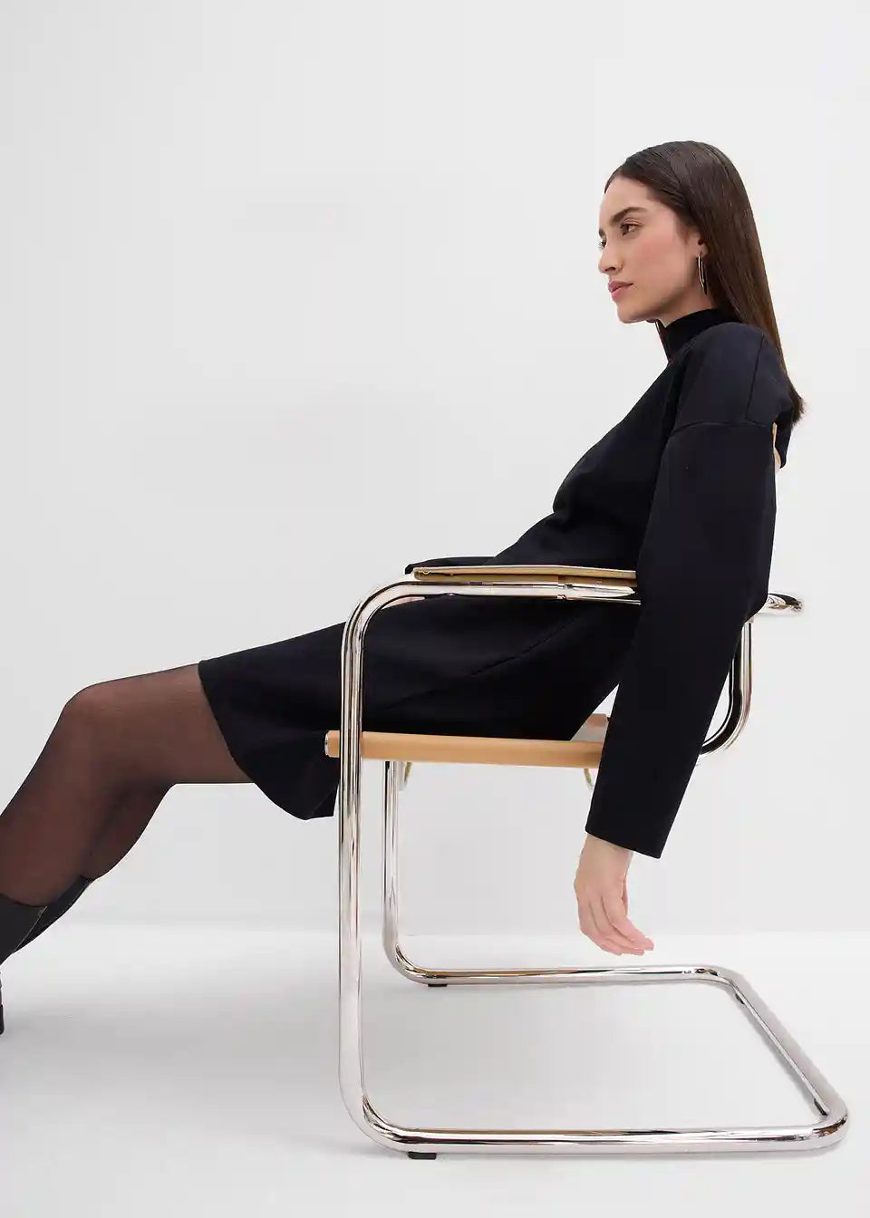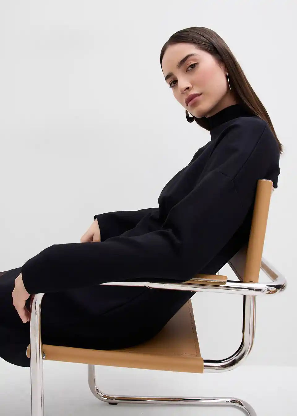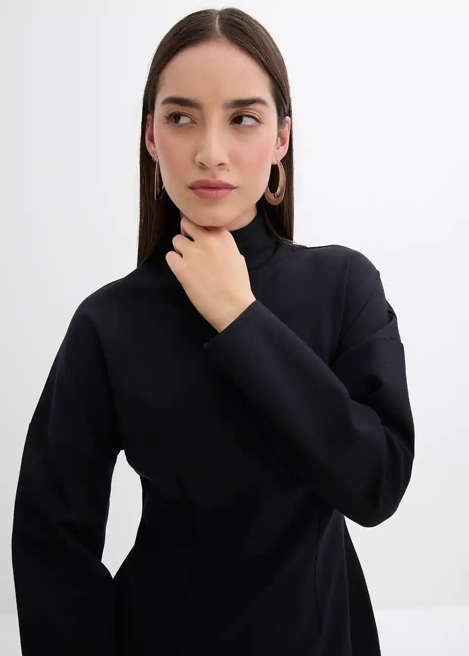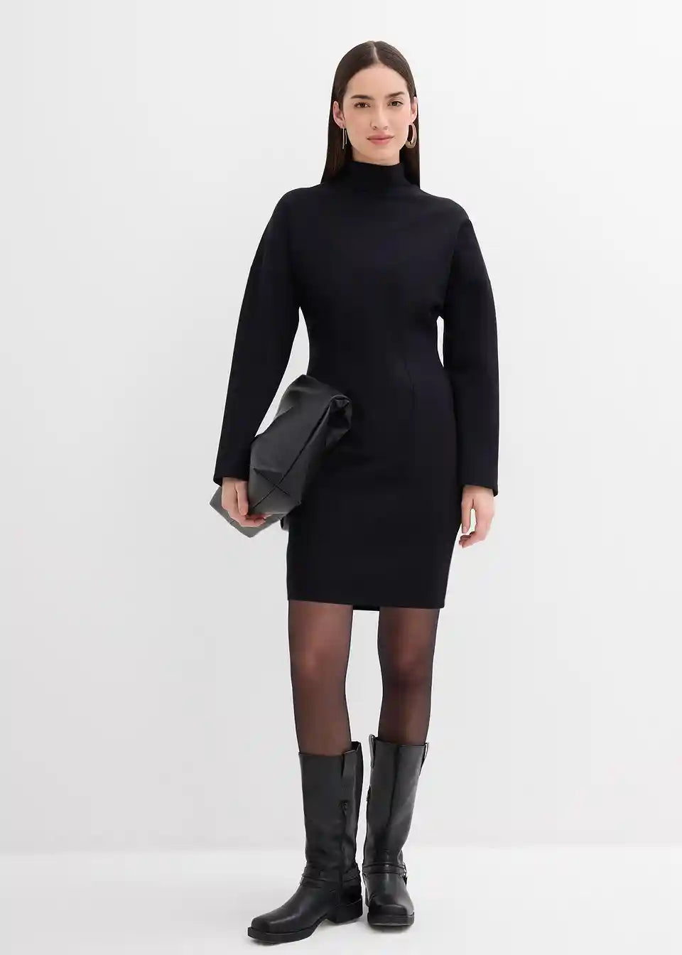 Tailliertes Minikleid mit Rollkragen und voluminösen Ärmeln