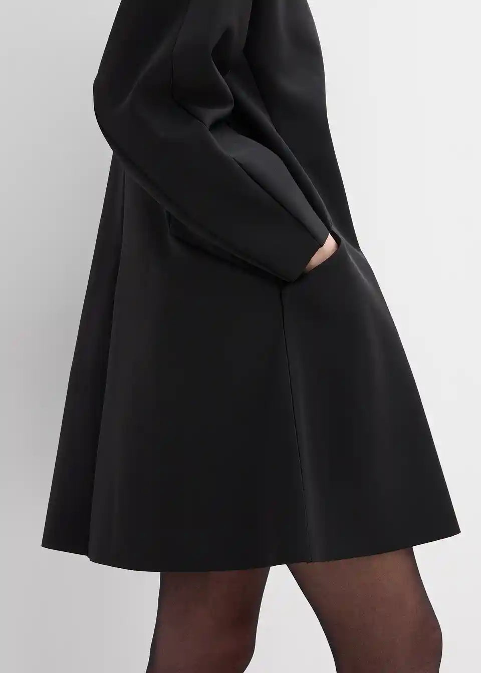 Minikleid mit Rundhalsausschnitt sowie Teilungsnähten vorne und an den Ärmeln. Verdeckter Reißverschluss hinten und zwei Nahttaschen vorne.