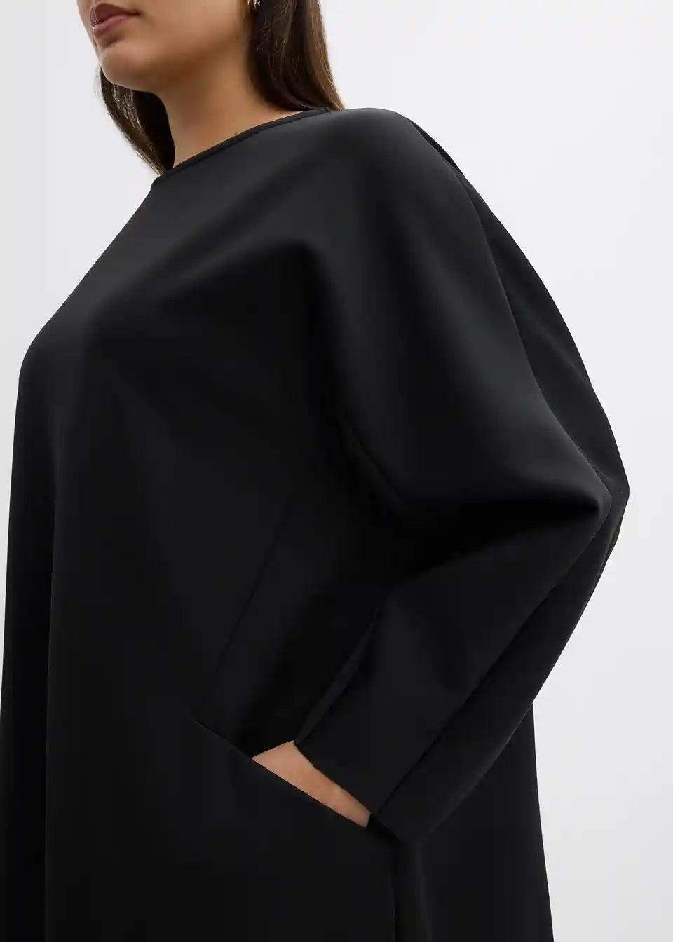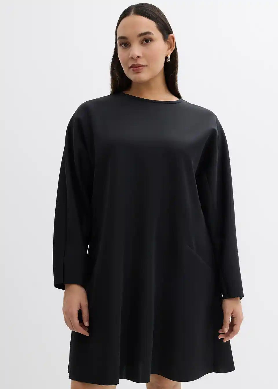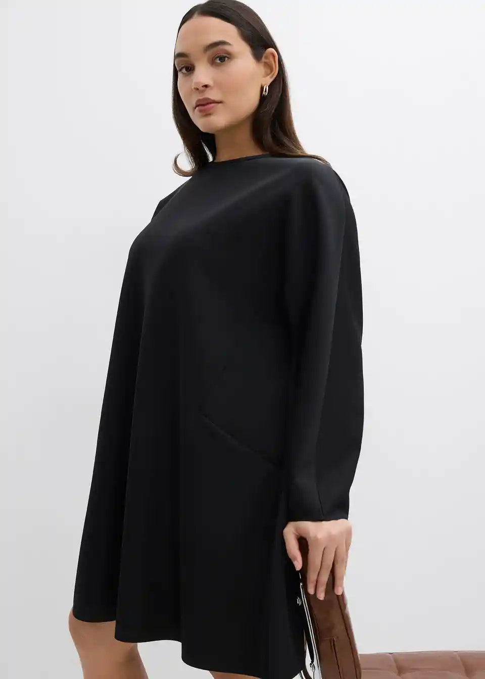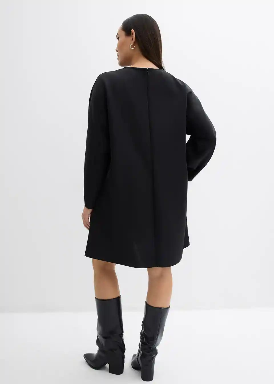 Minikleid mit Rundhalsausschnitt sowie Teilungsnähten vorne und an den Ärmeln. Verdeckter Reißverschluss hinten und zwei Nahttaschen vorne.