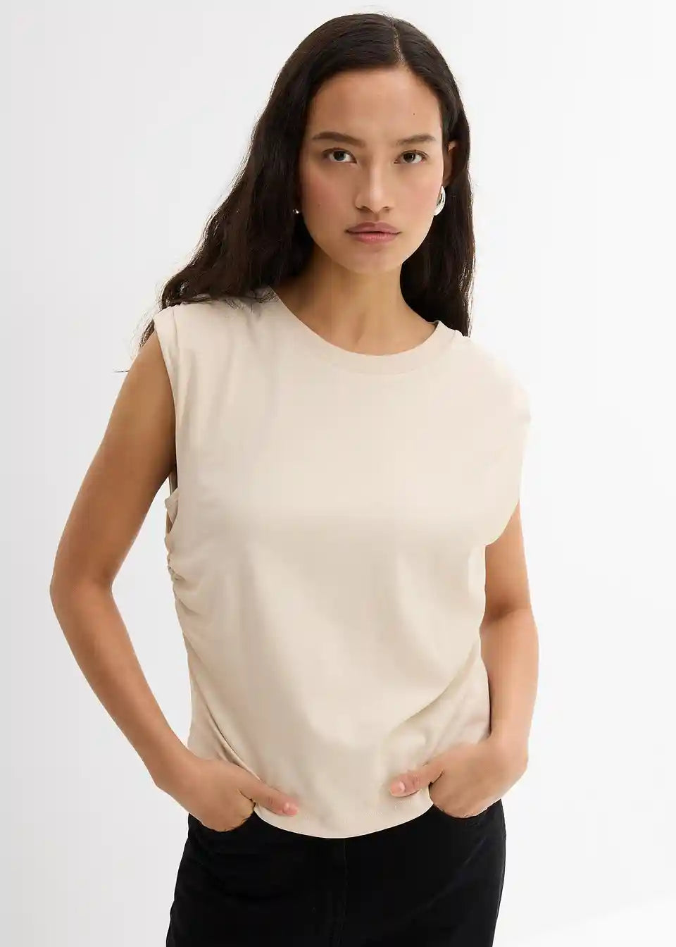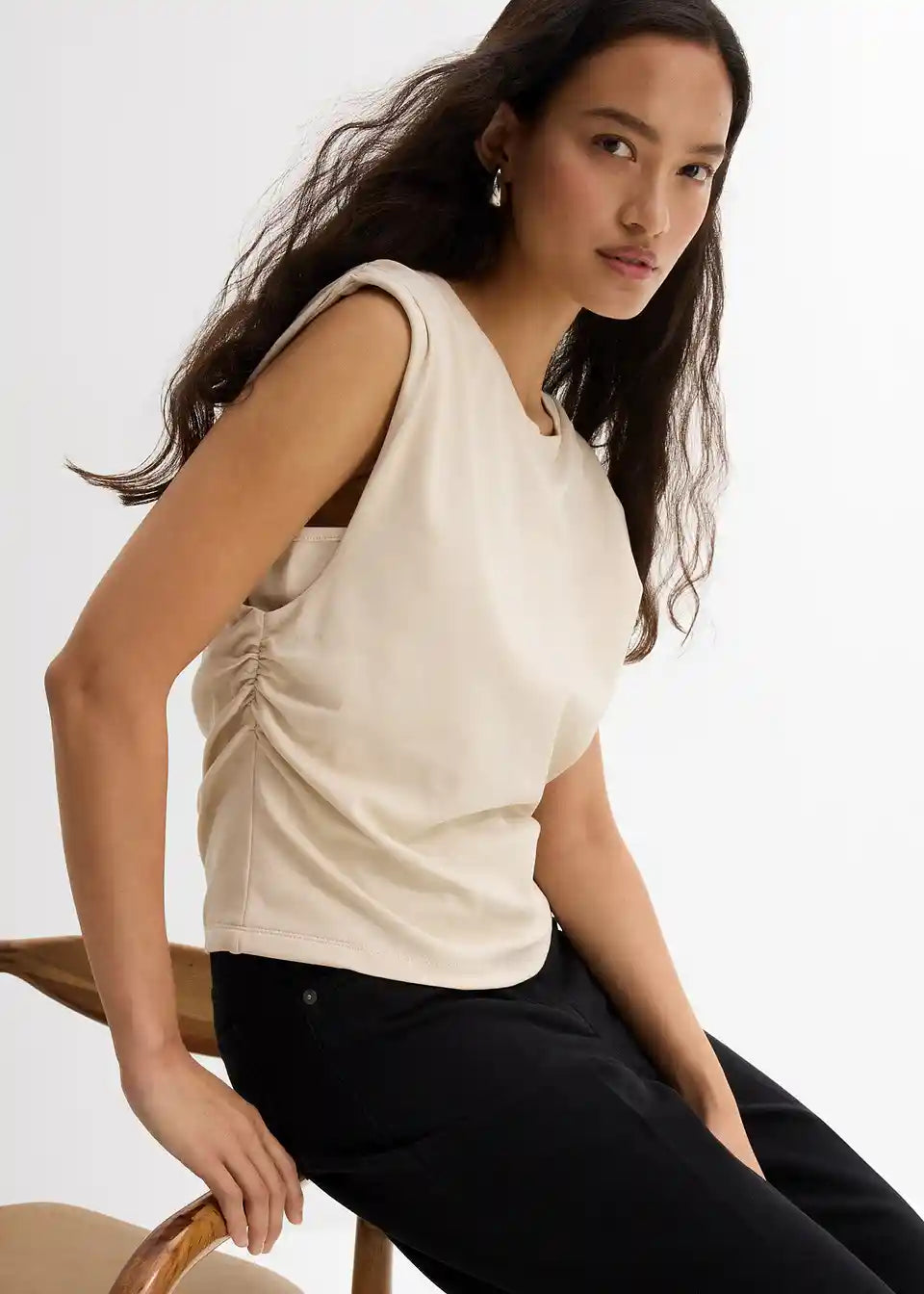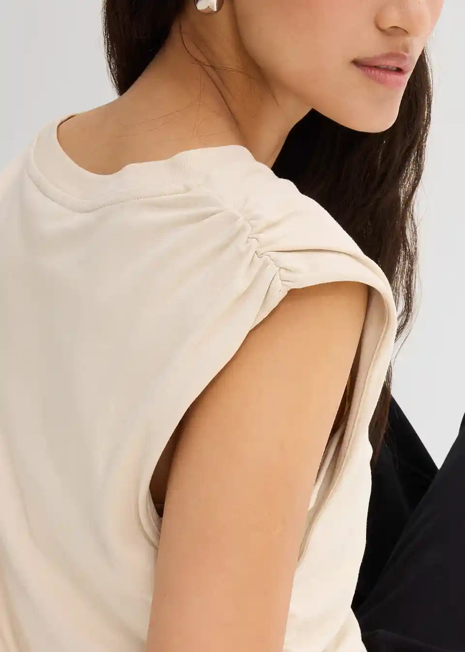 Kurz geschnittenes Top mit Drapierungen an Schulter und Taille aus reiner Baumwolle