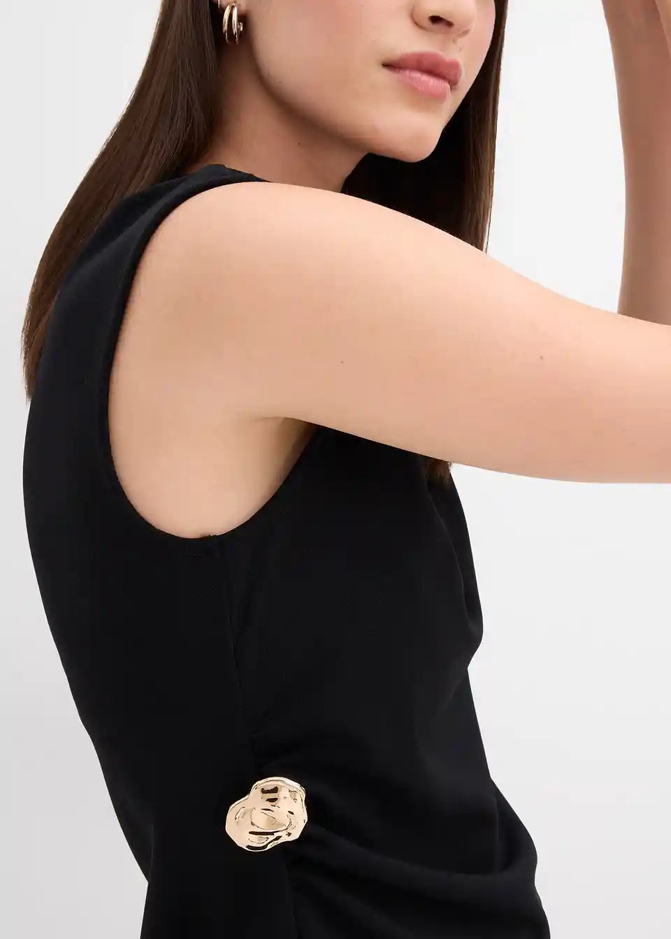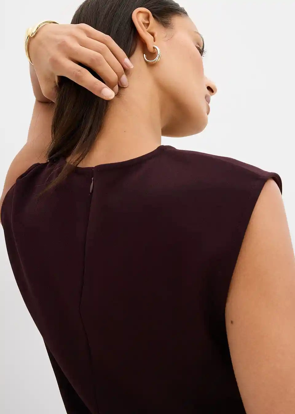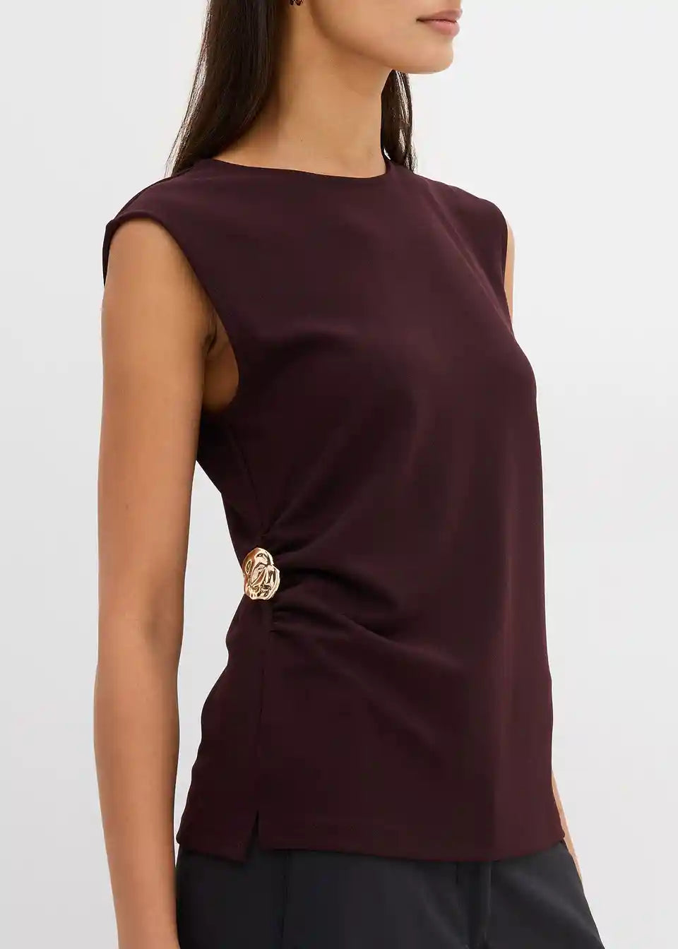 Ärmelloses Top mit Taillenfokus und Zierschnalle in der Taille. Verdeckter Reißverschluss hinten.