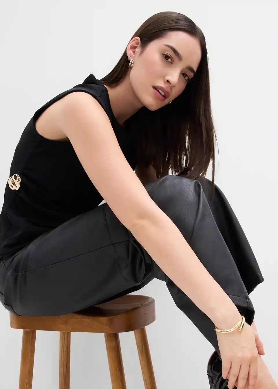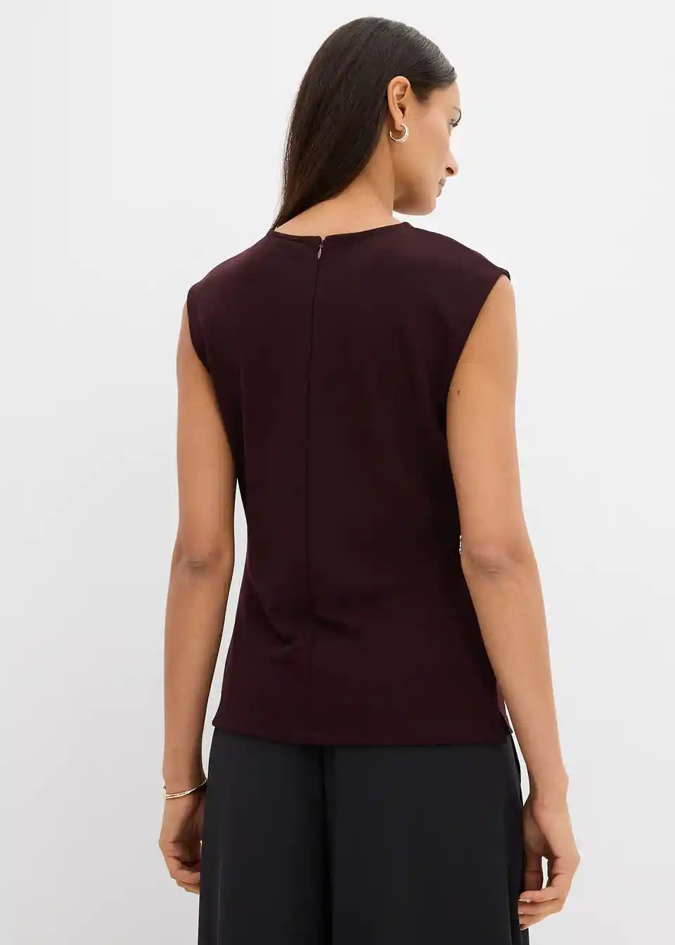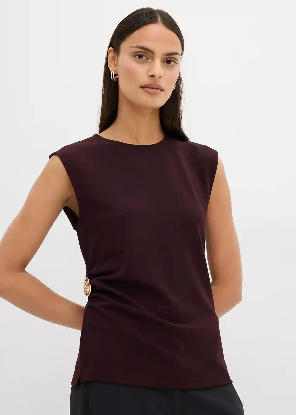 Ärmelloses Top mit Taillenfokus und Zierschnalle in der Taille. Verdeckter Reißverschluss hinten.