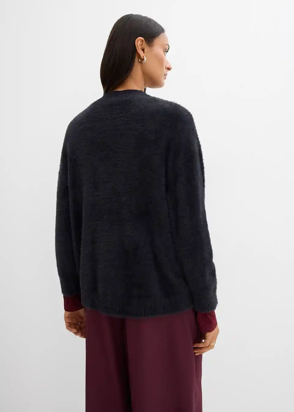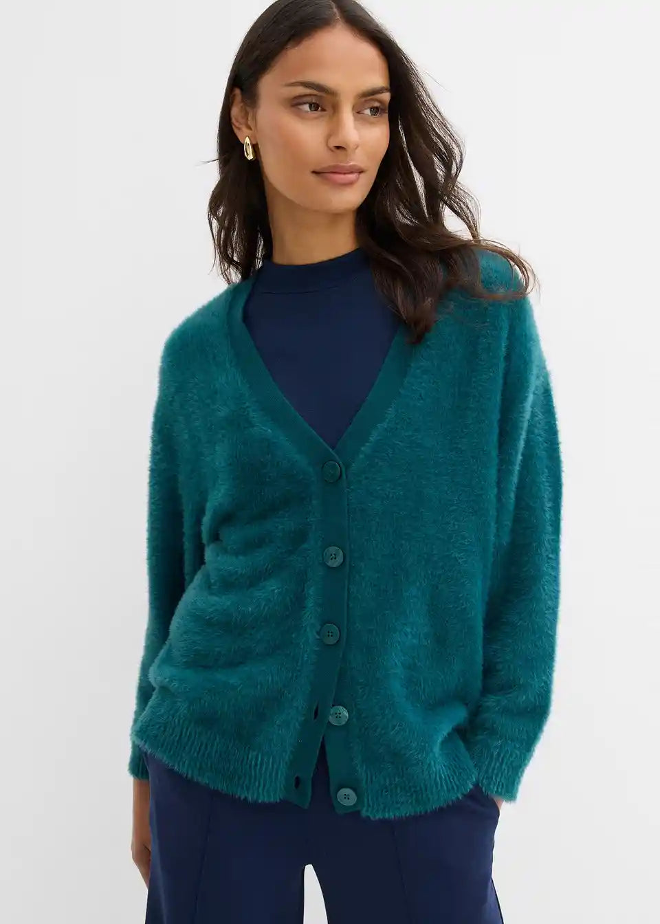 Langärmlige Strickjacke aus Federgarn mit Knopfverschluss vorne