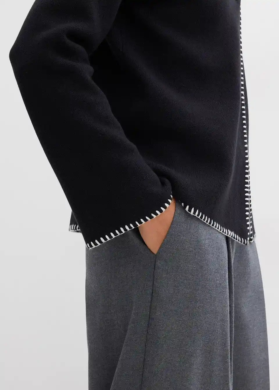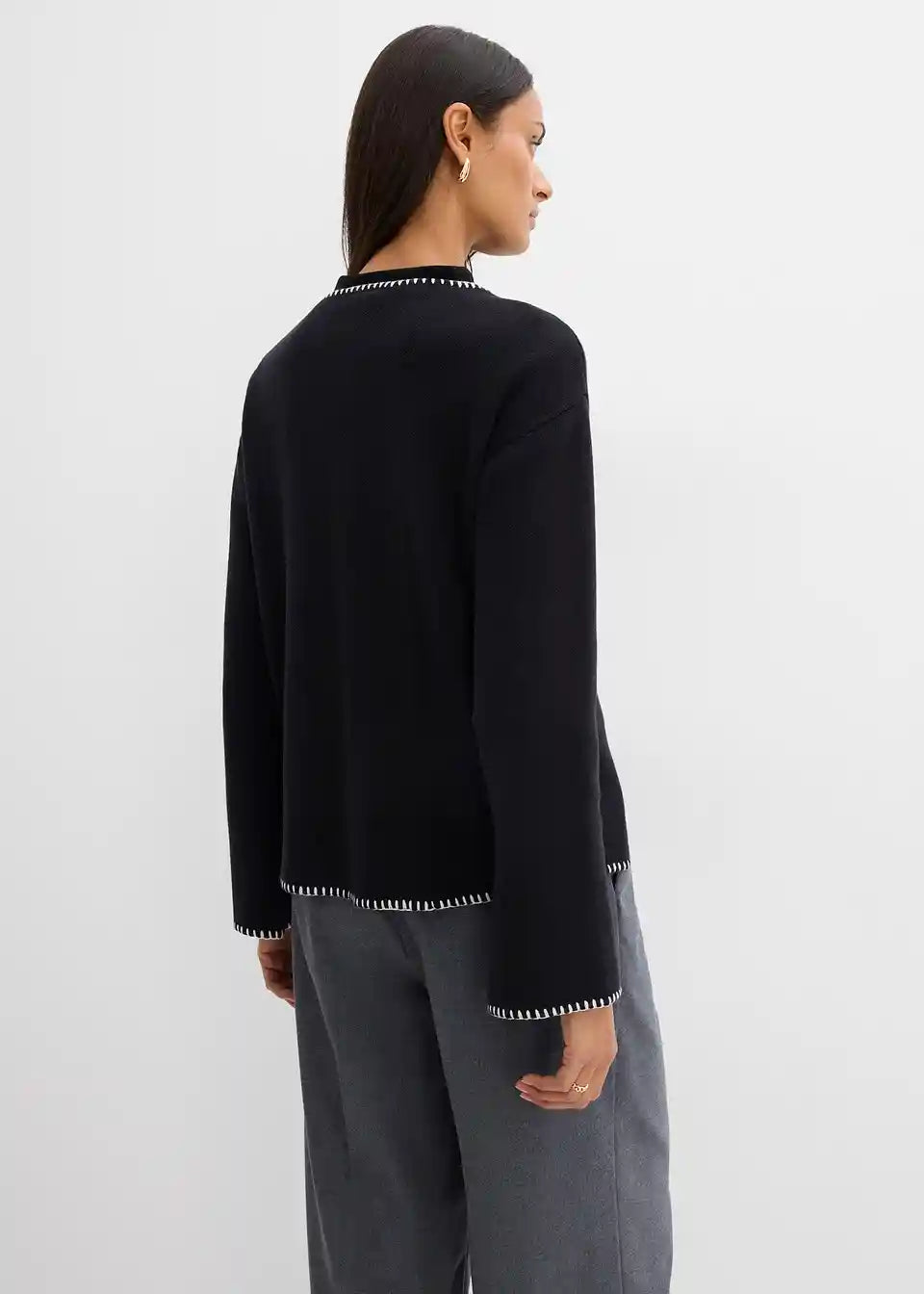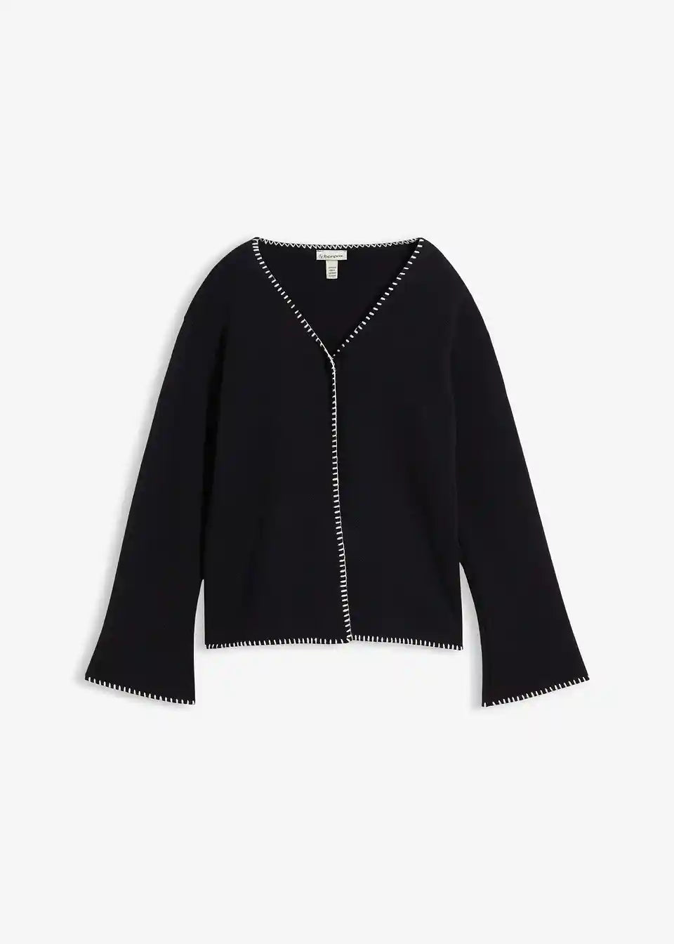 Strickjacke mit Festonstich mit Oversize-Passform und überschnittenen Schultern