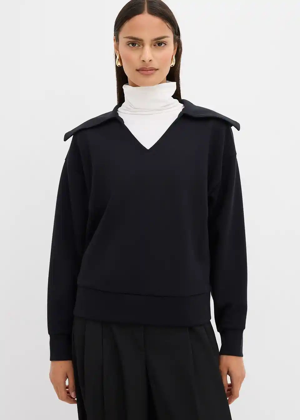 Sweatshirt mit breitem Polokragen und V-Ausschnitt