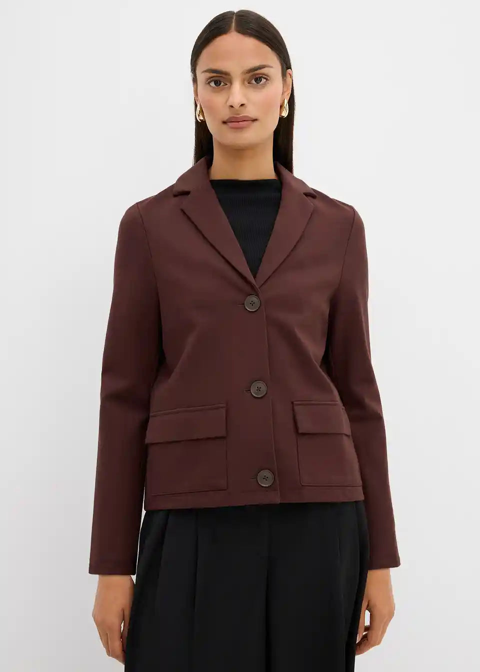 Gerade geschnittener Blazer mit Knopfverschluss sowie zwei Pattentaschen vorne