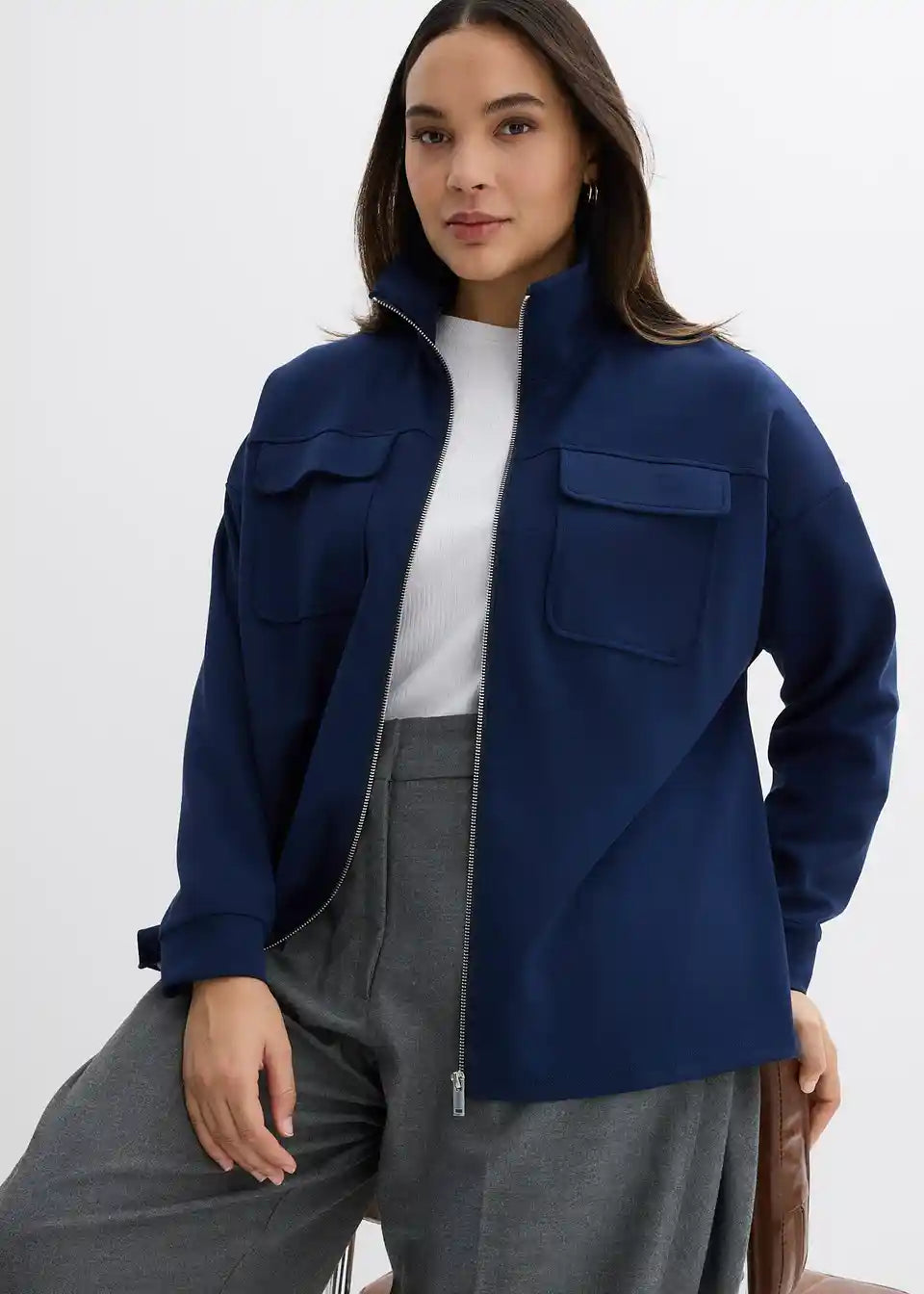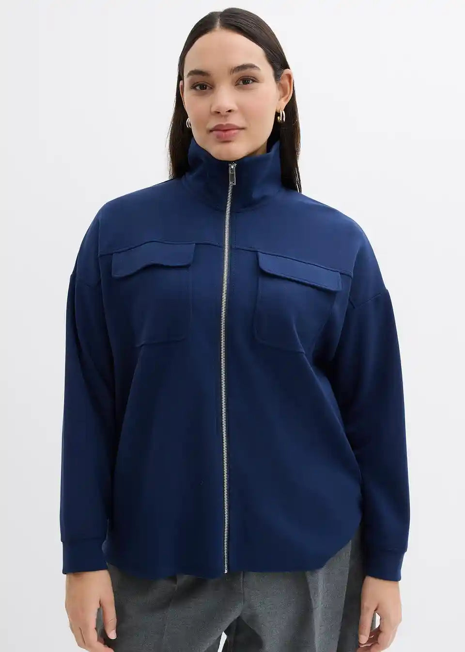 Sweatjacke mit Reißverschluss und zwei Pattentaschen auf Brusthöhe