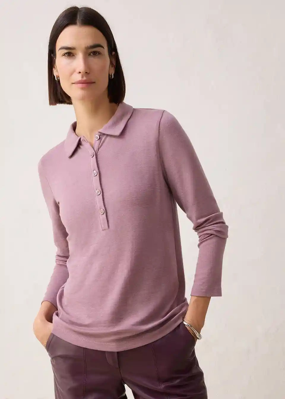 modernes Poloshirt mit Woll-Anteil , sehr angenehm auf der Haut