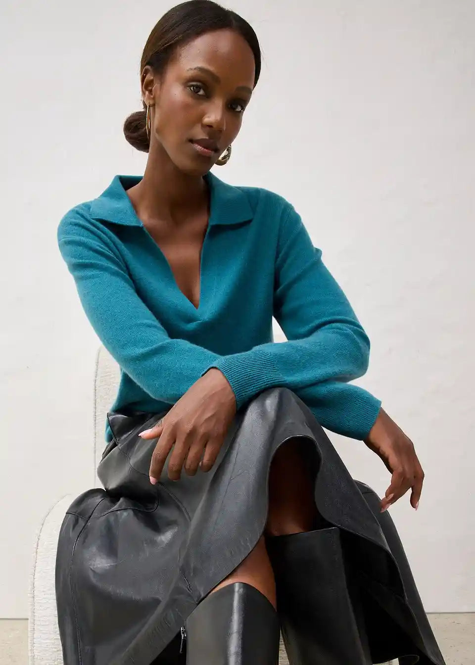 Die Materialmischung aus Kaschmir und Merinowolle bietet Dir das Beste aus beiden Welten: luxuriöse Weichheit von Kaschmir kombiniert mit den temperaturregulierenden Eigenschaften von feiner Merinowolle. Perfekt für Deine stilvolle und komfortable Herbstgarderobe.