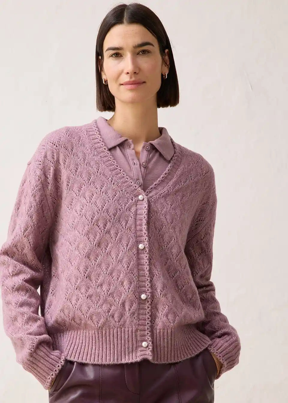 Ajour-Strickjacke mit hochwertigen Woll-Anteil