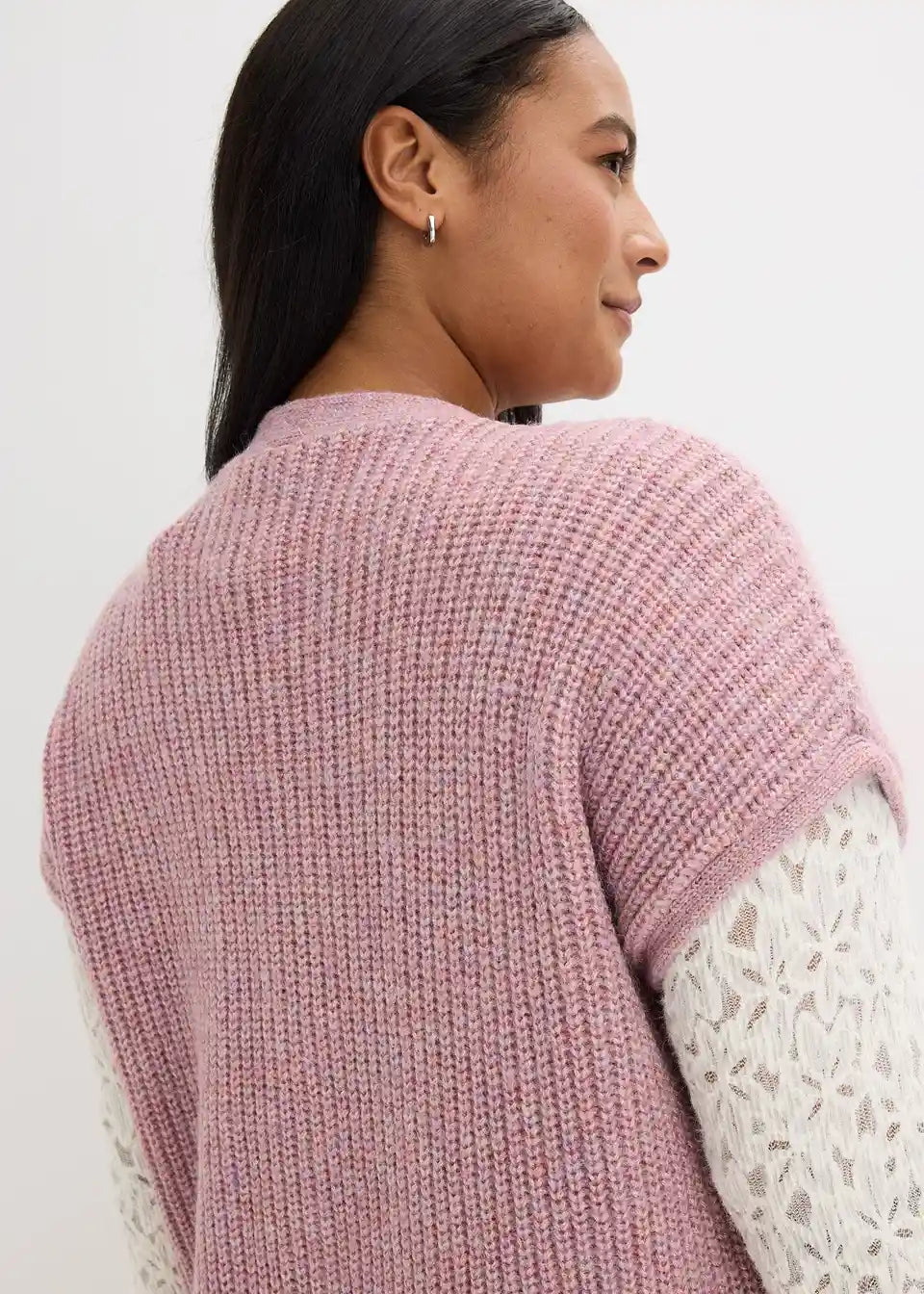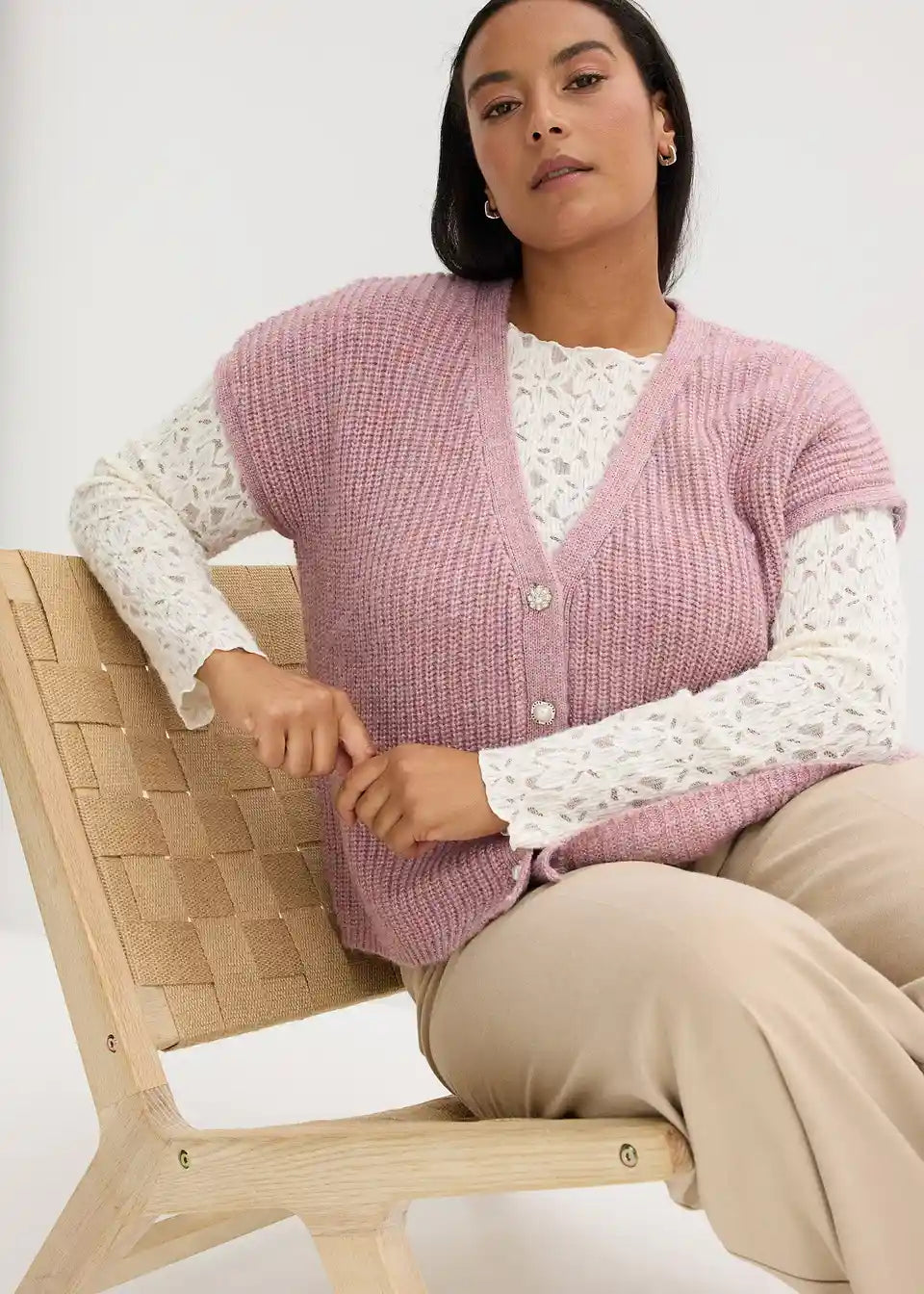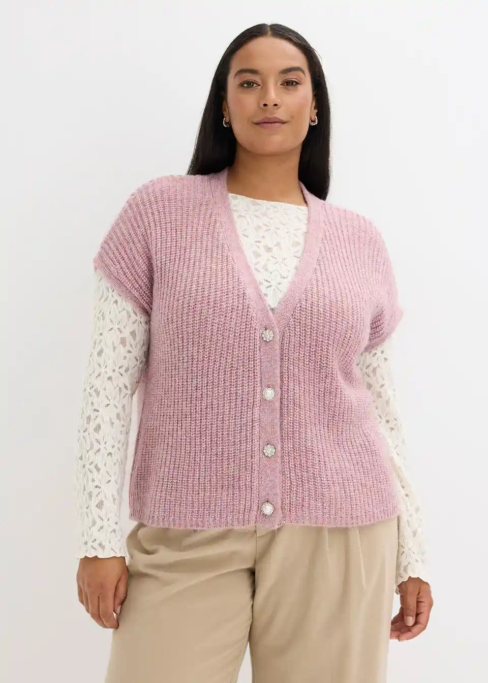 Strick-Weste mit dekorativen Knöpfen und Wollanteil