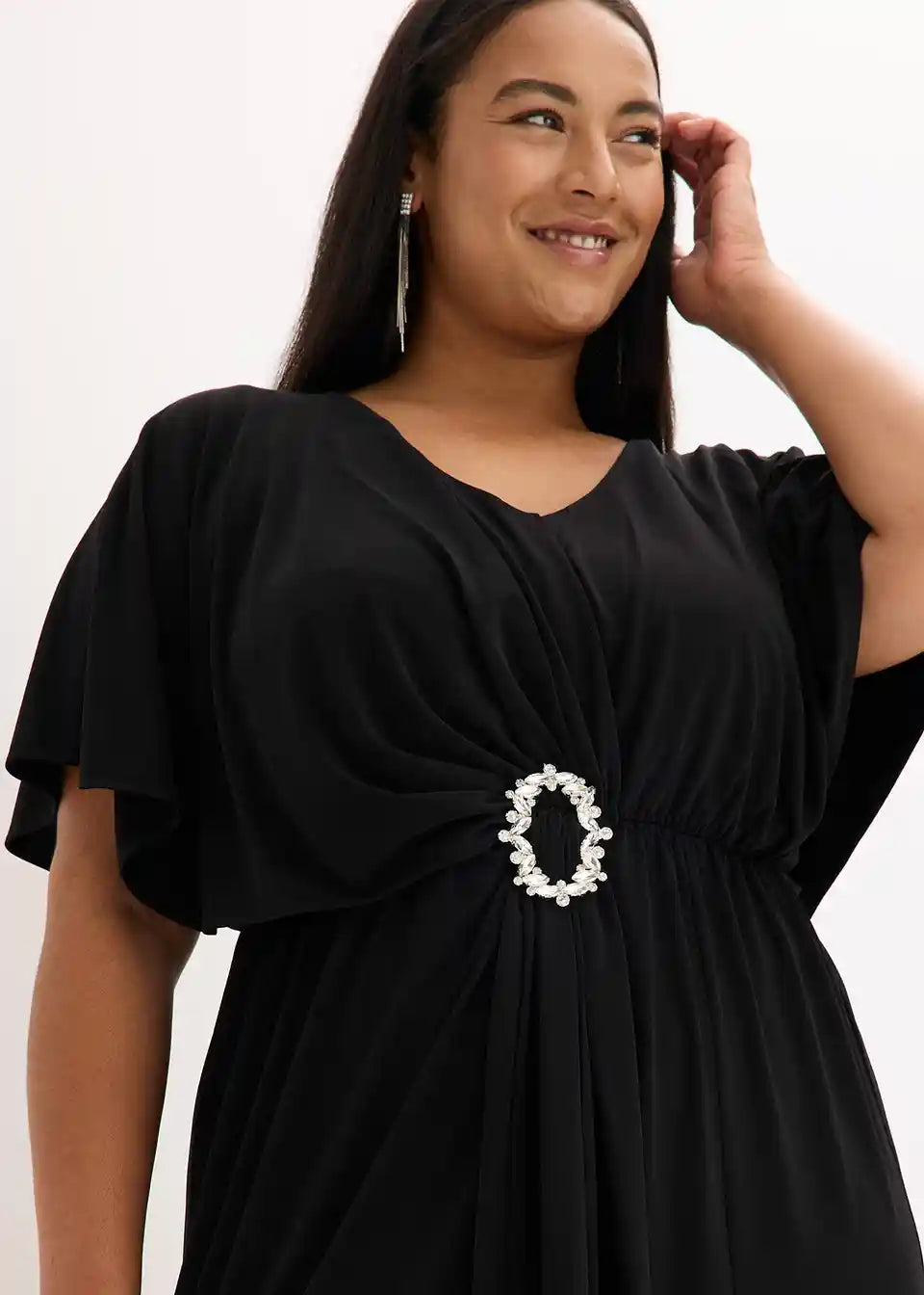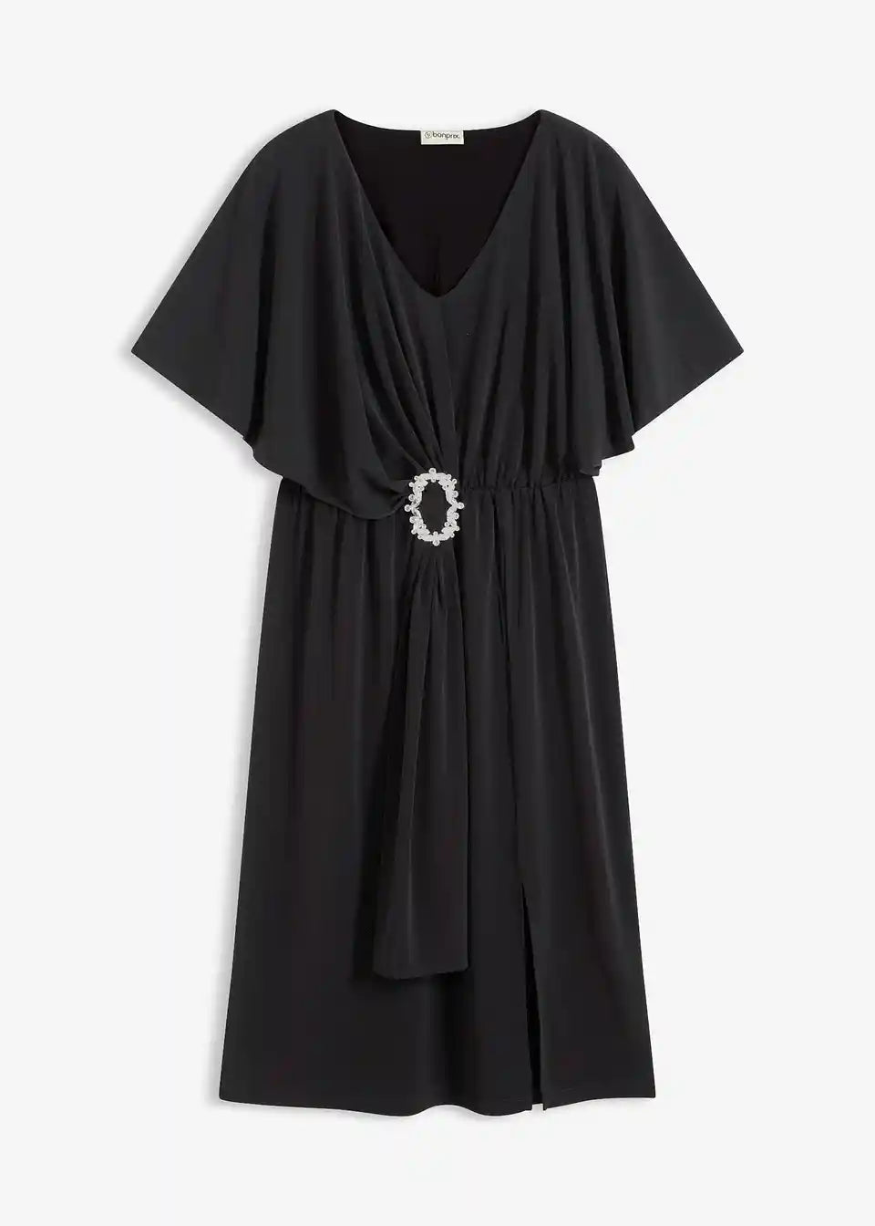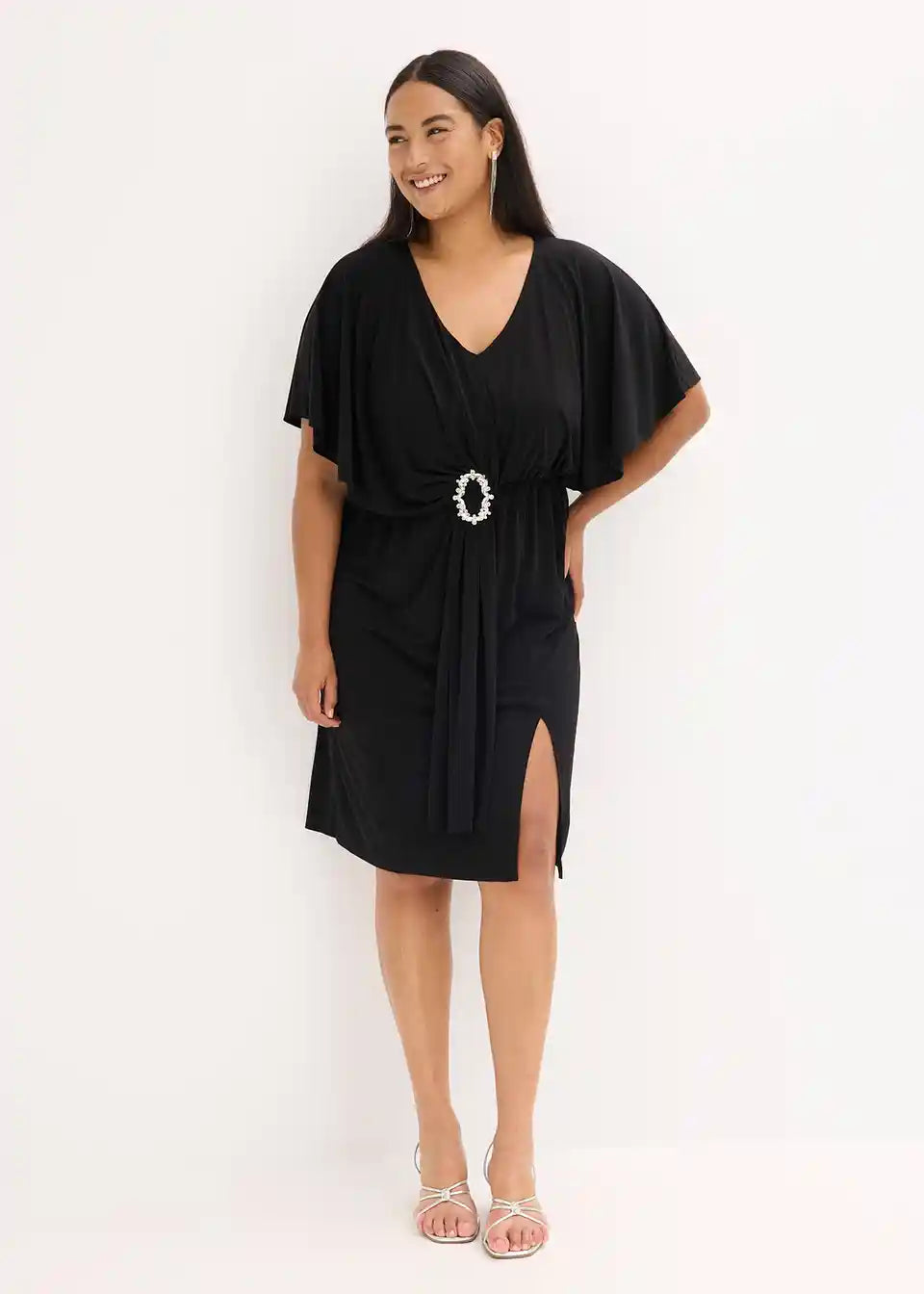 Oversized Kleid aus feinem Jersey mit Schmuck-Schnalle in der Taille