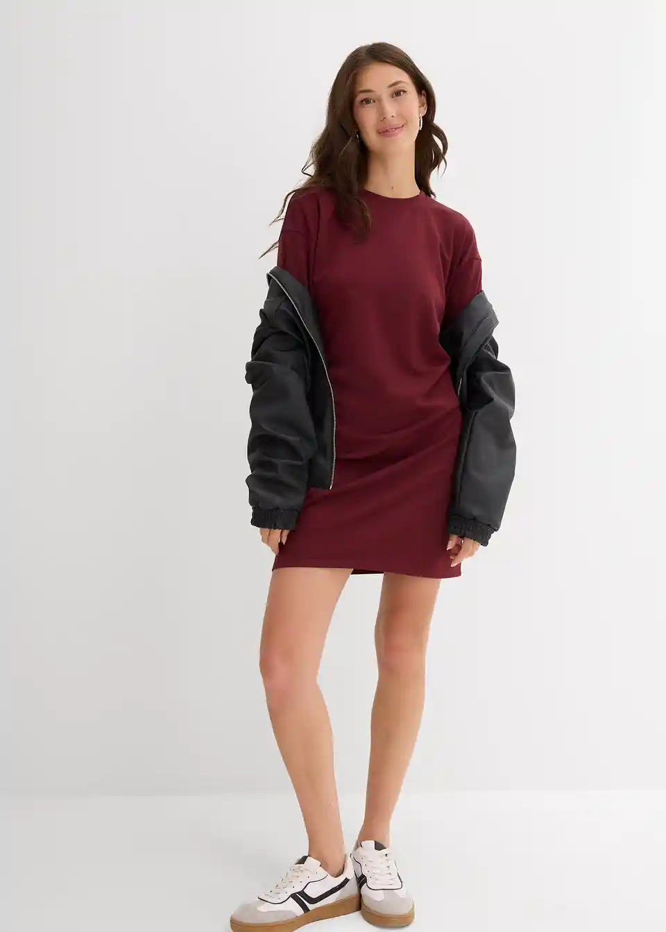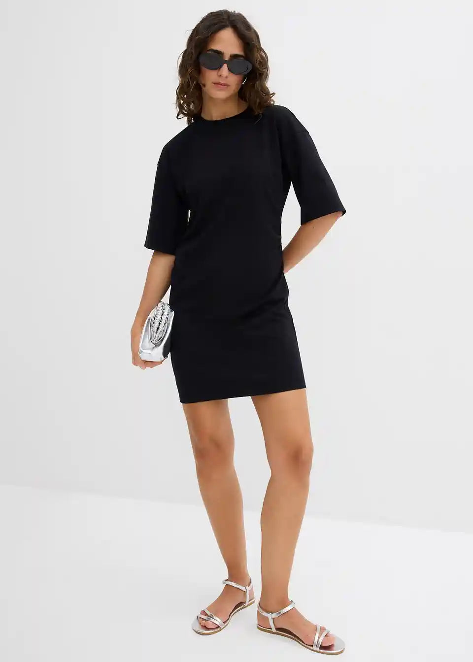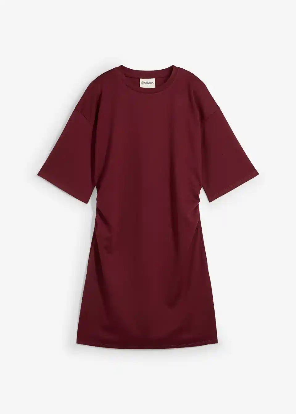 Lässiges T-Shirt Kleid mit seitlicher Raffung und weiten Ärmeln