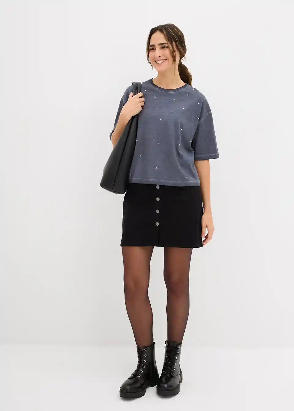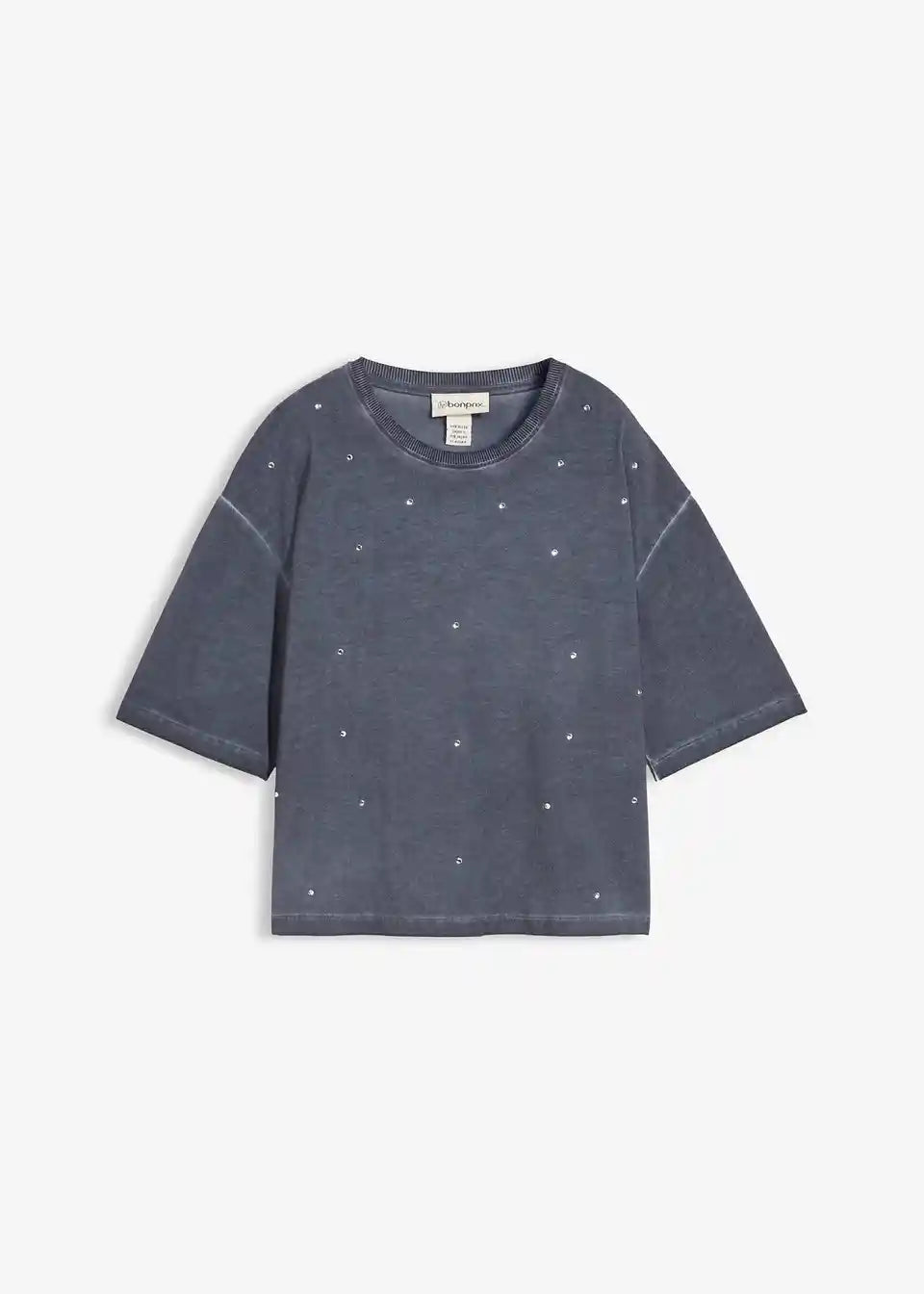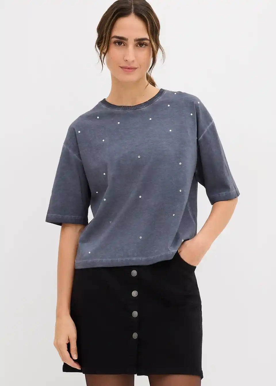 Lässiges T-Shirt mit Glitzersteinen aus reiner Baumwolle