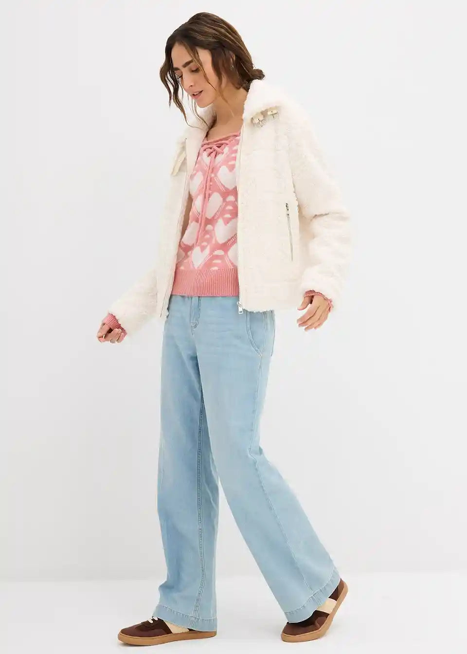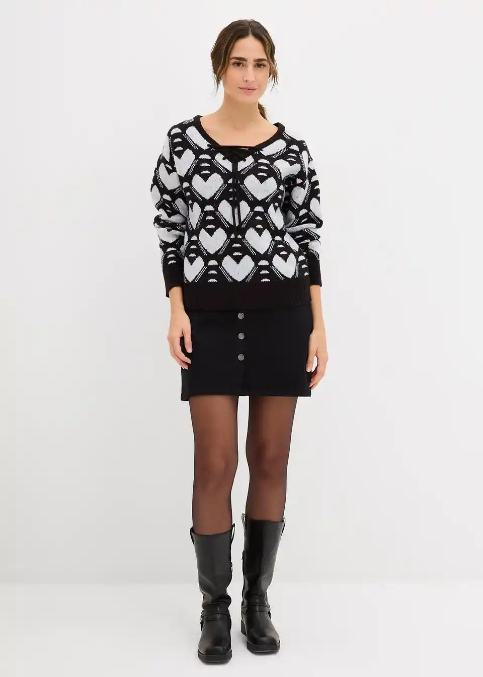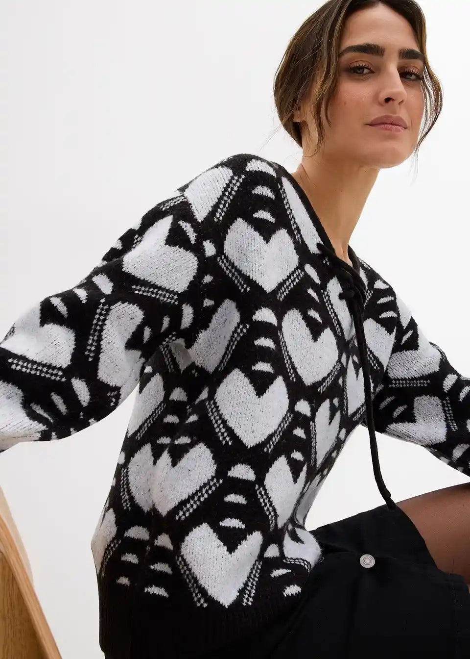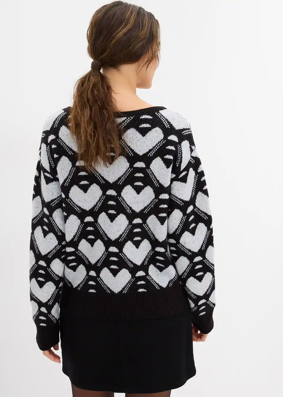 Modischer Jaquard Feinstrickpullover mit Herzmotiv