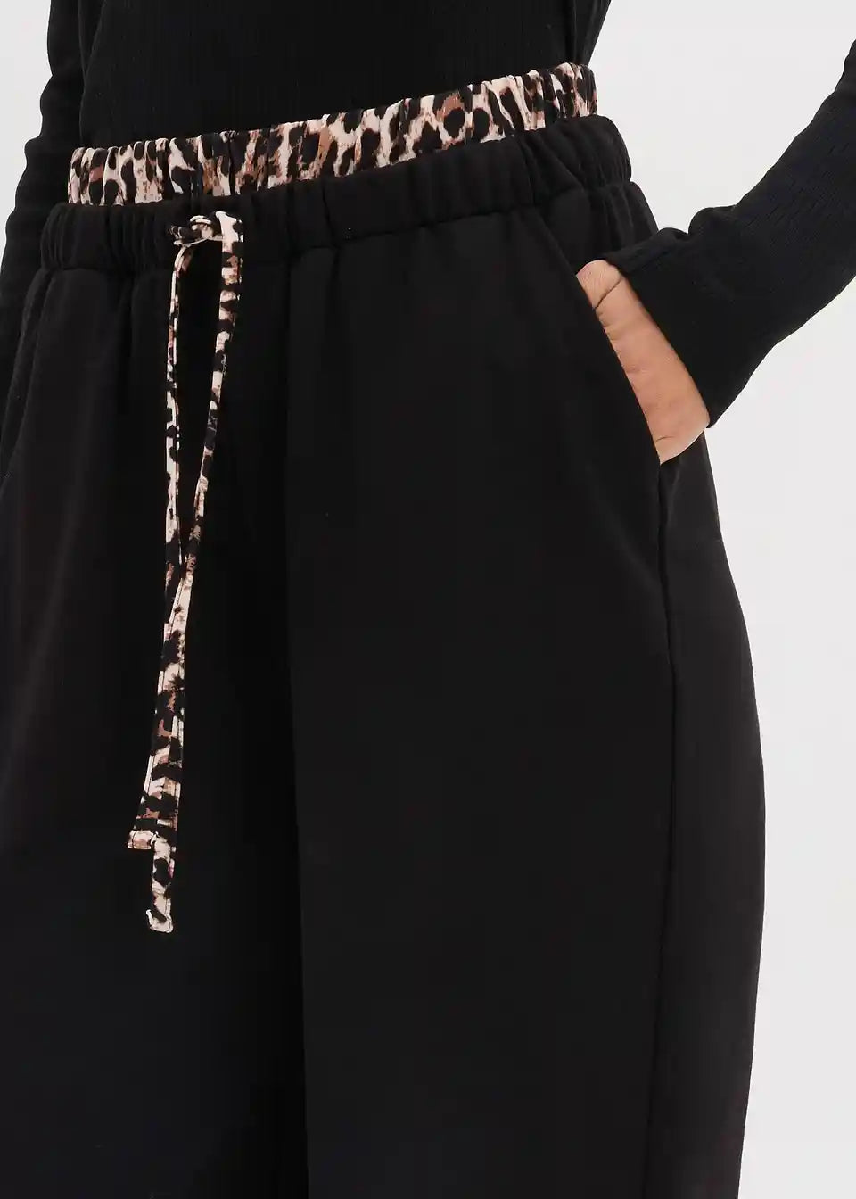 Weite Sweathose mit Kontrastbund und Bindedetail