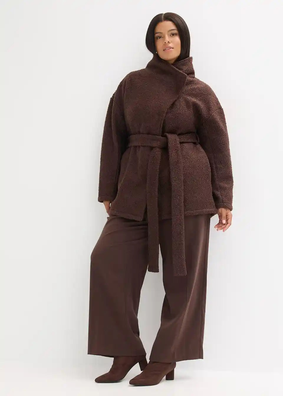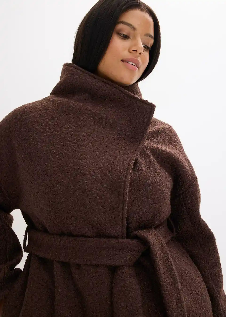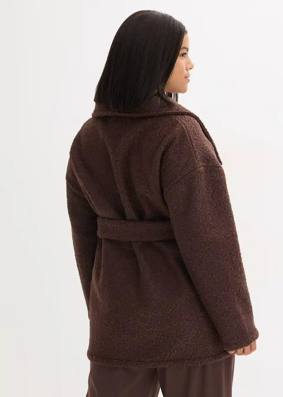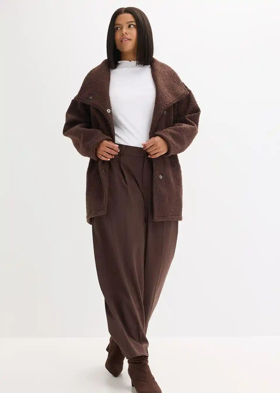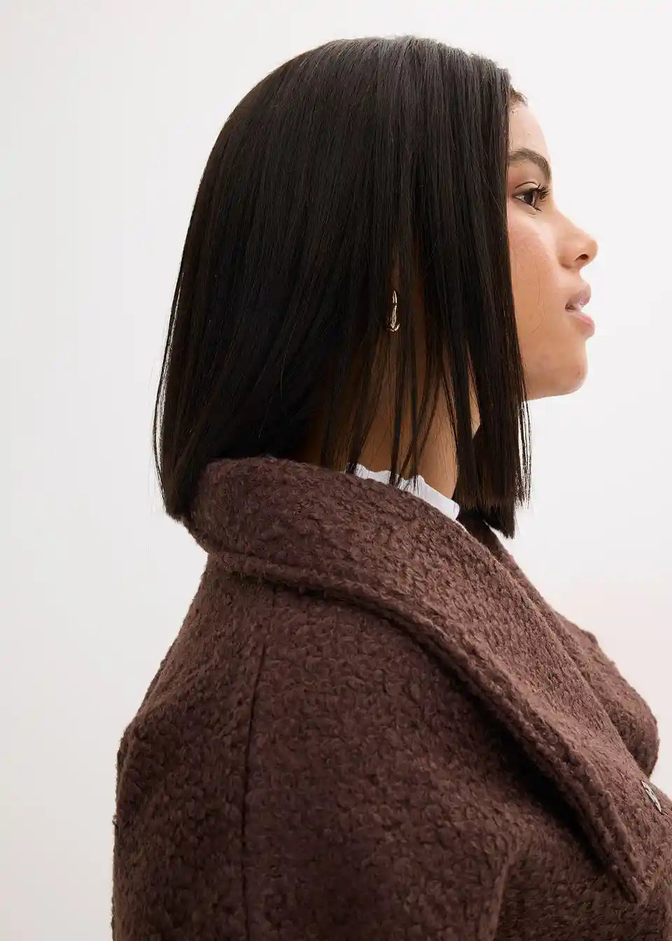 Jacke aus Bouclé-Stoff in Oversize-Passform, hohem Kragen und Taschen in den Seiten