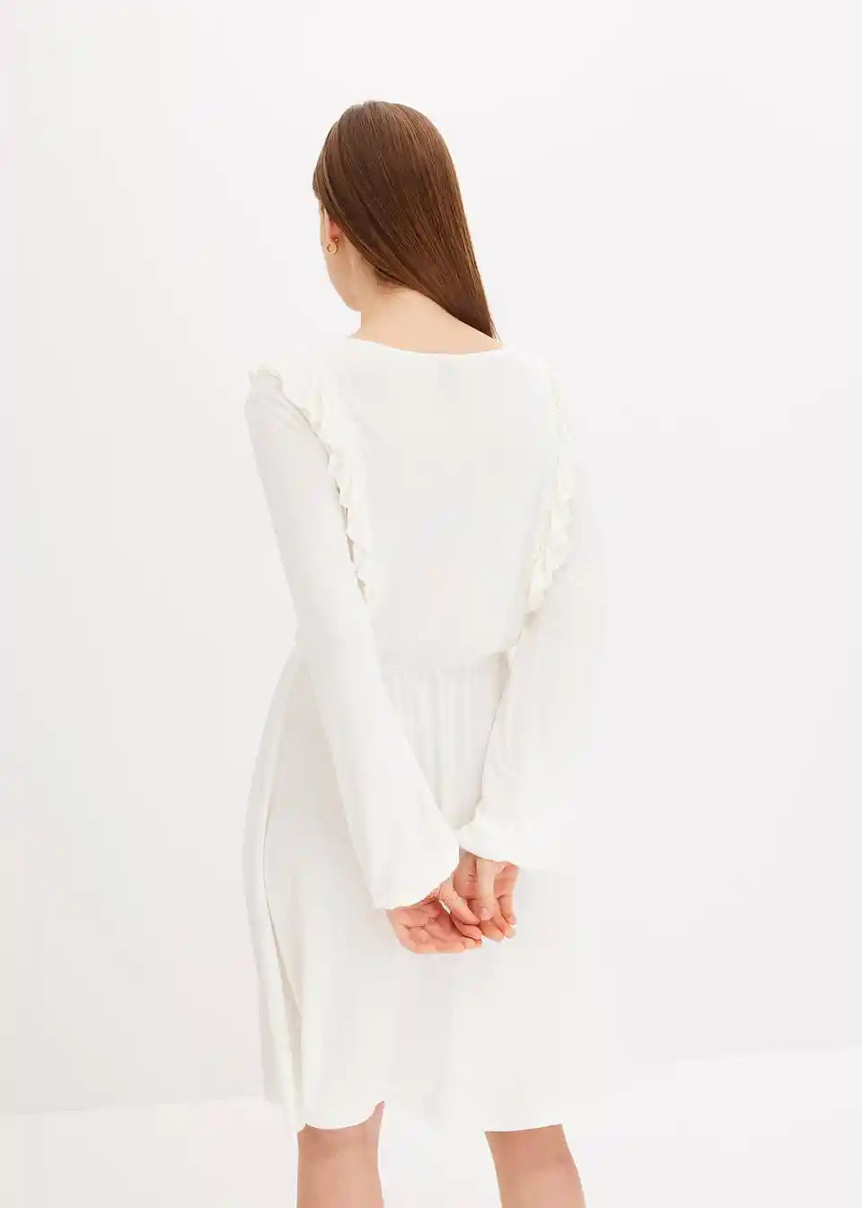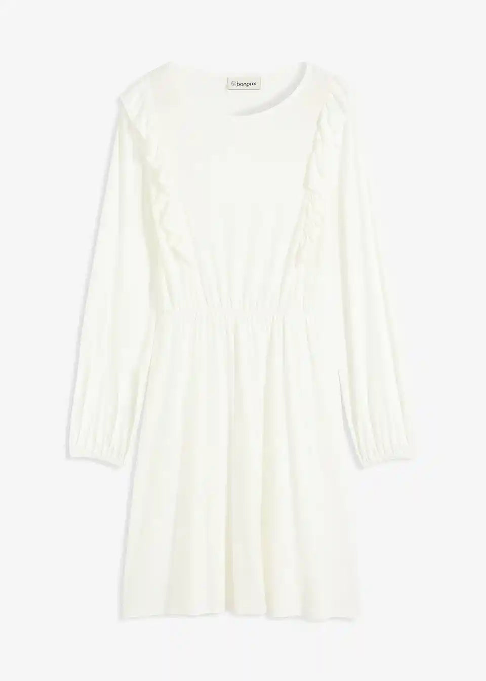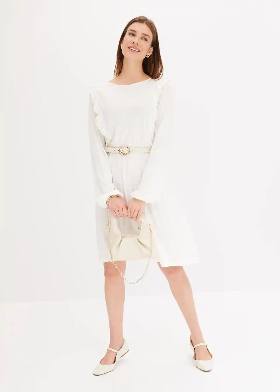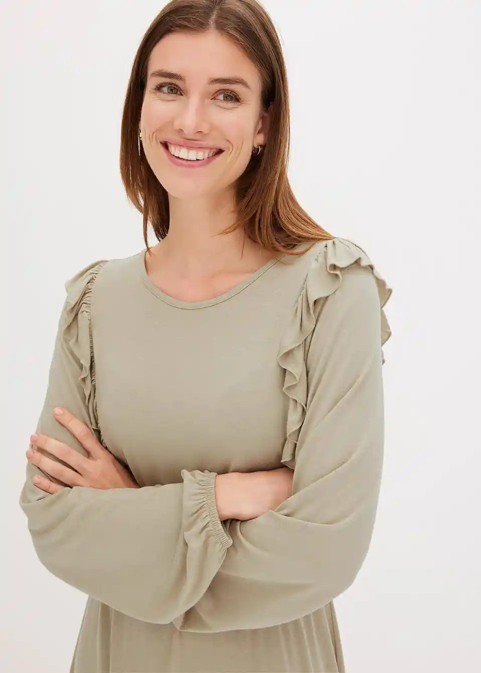 Ausgestelltes Shirtkleid mit Volants und Puffämeln
