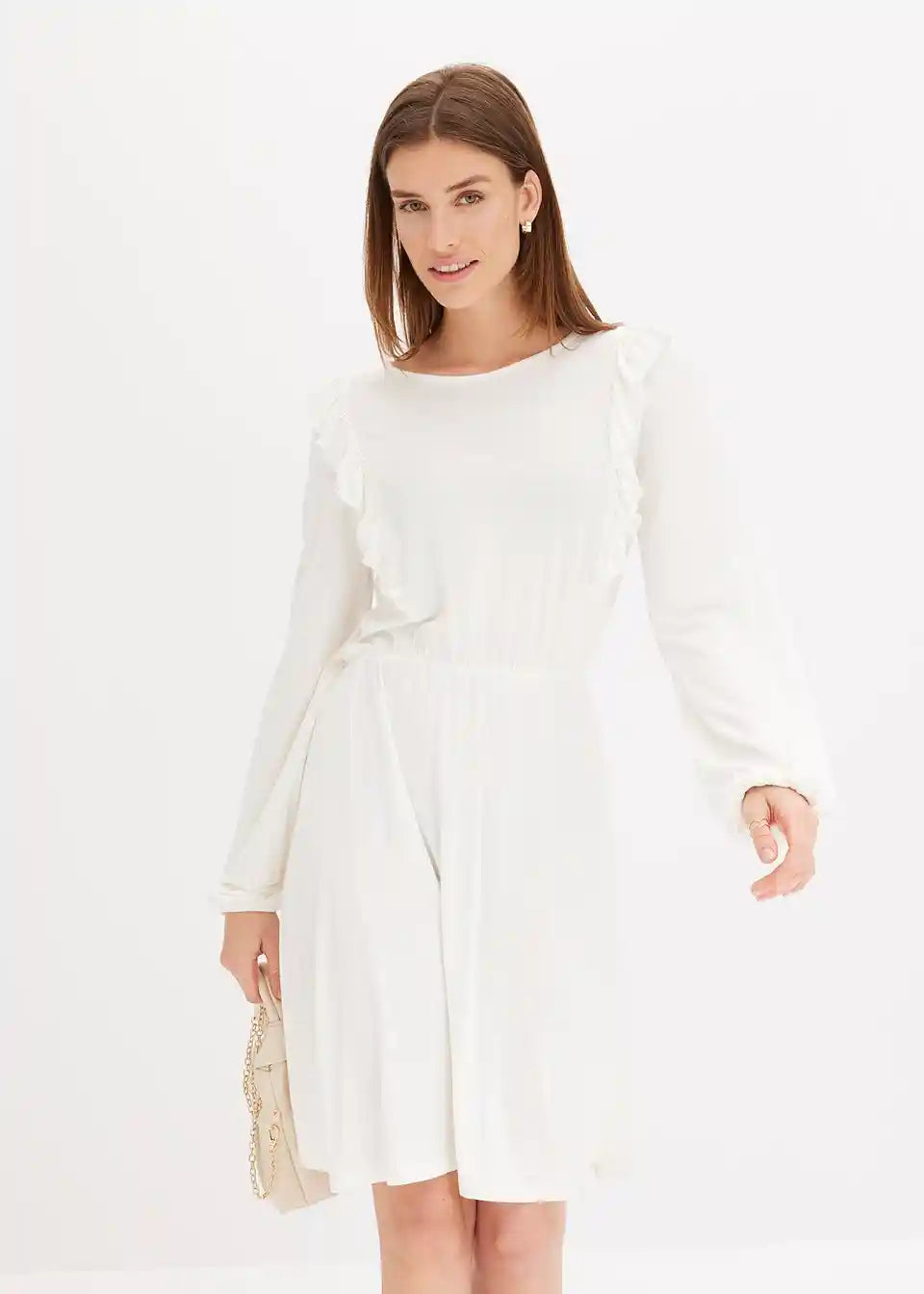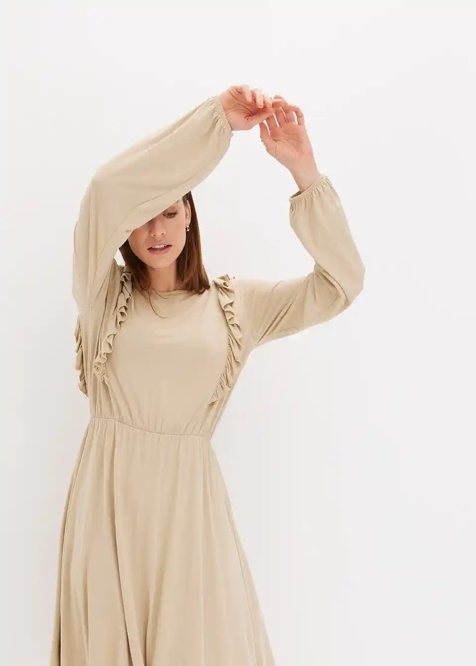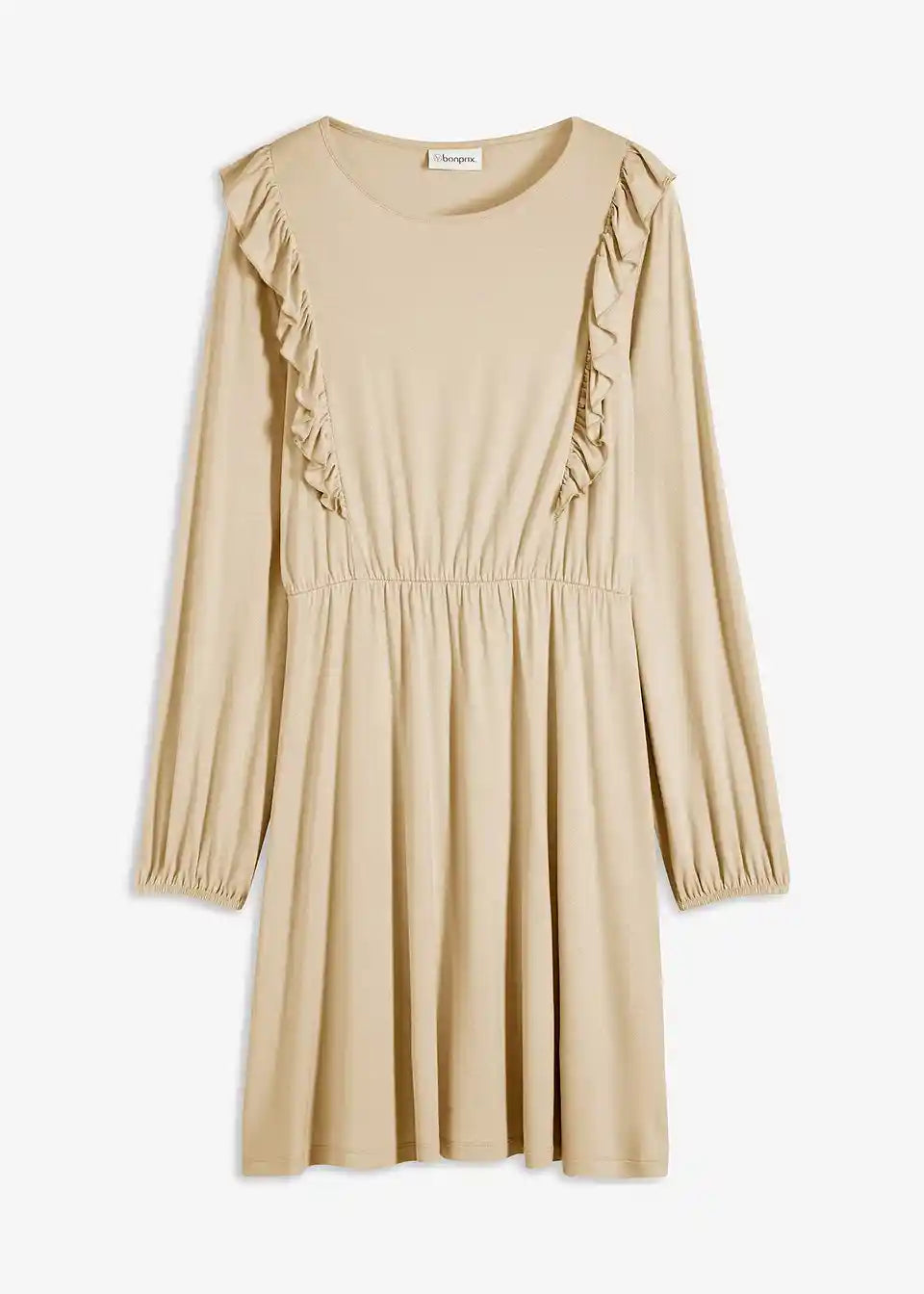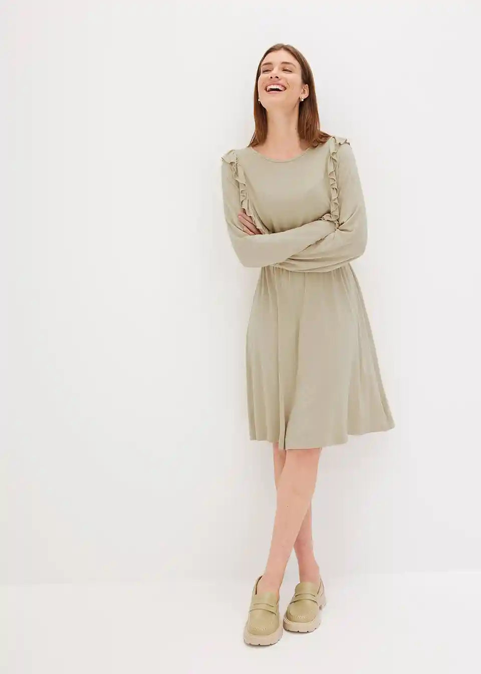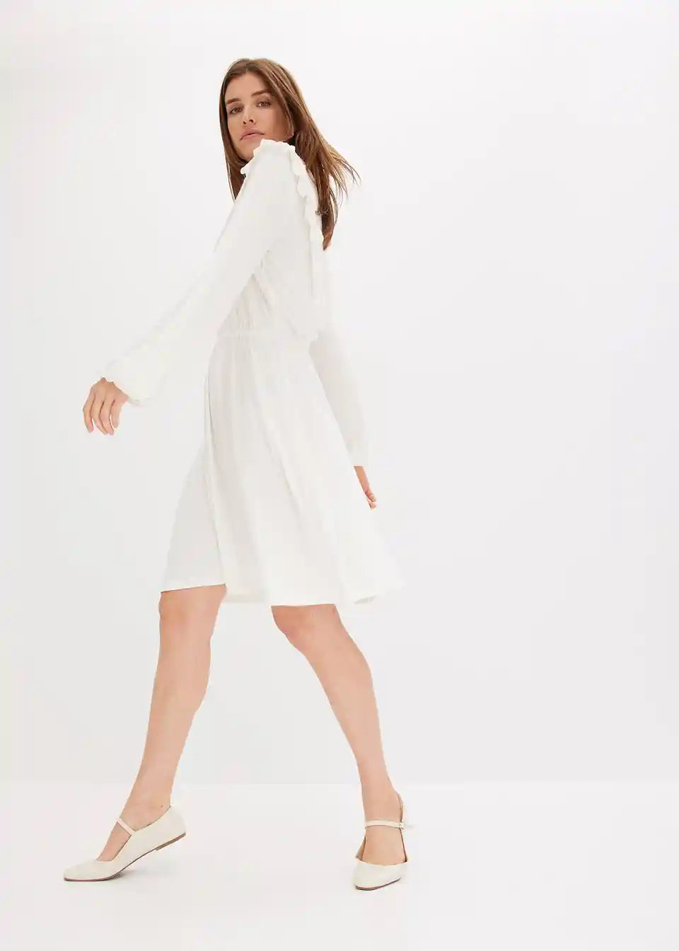 Ausgestelltes Shirtkleid mit Volants und Puffämeln