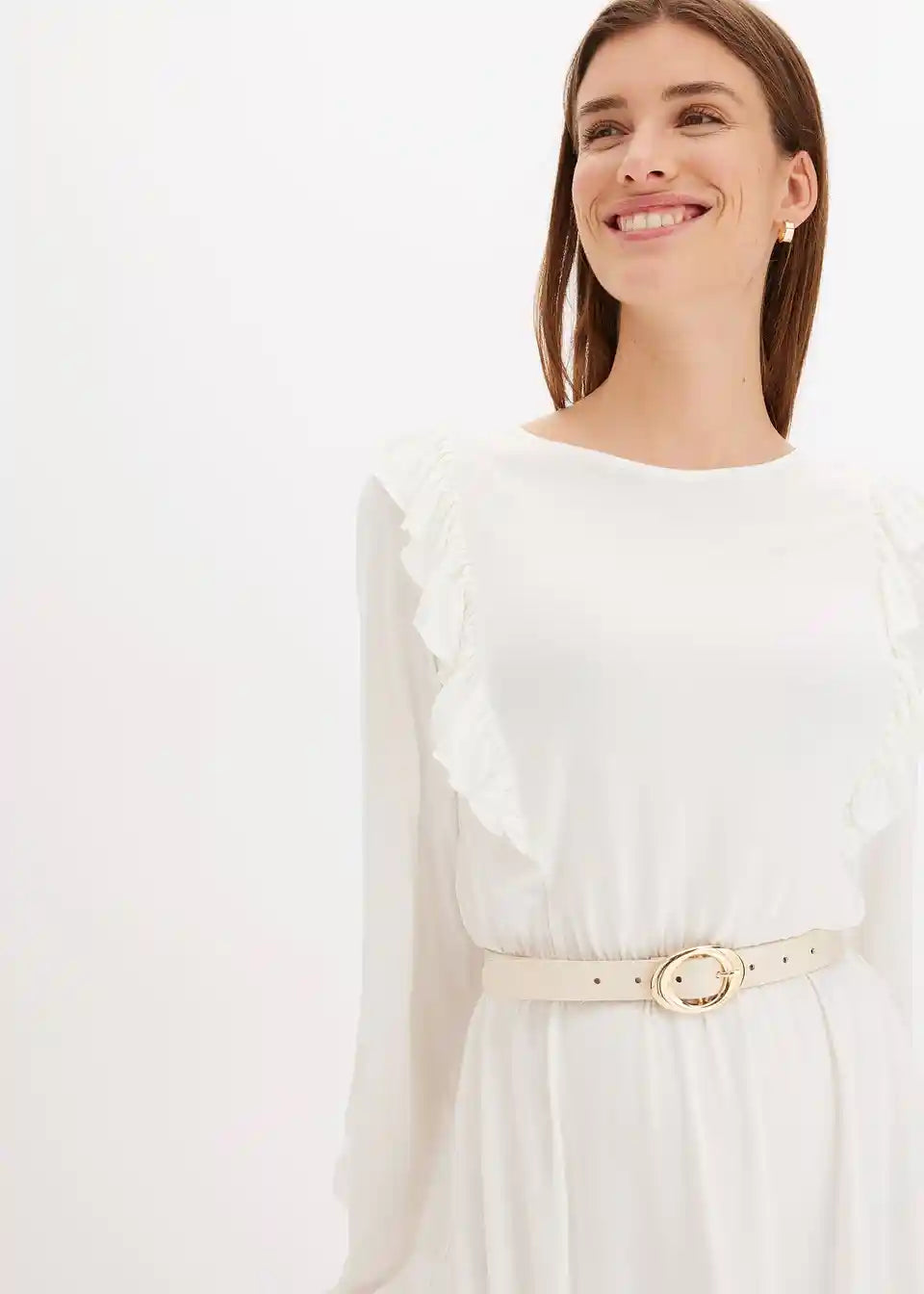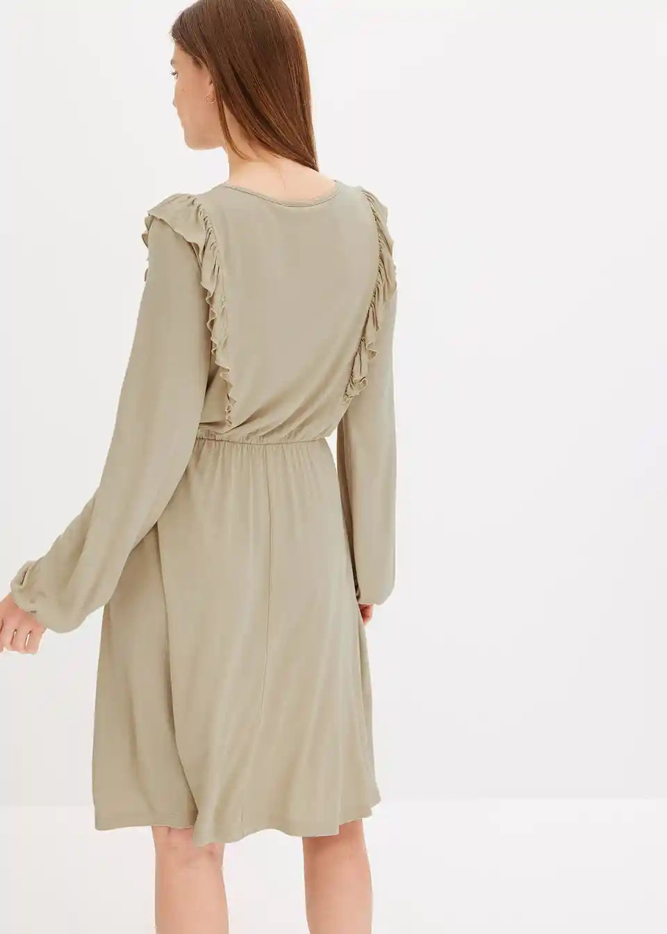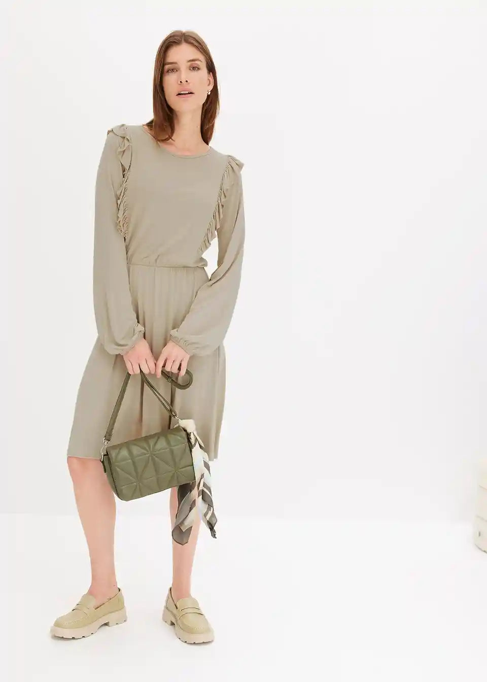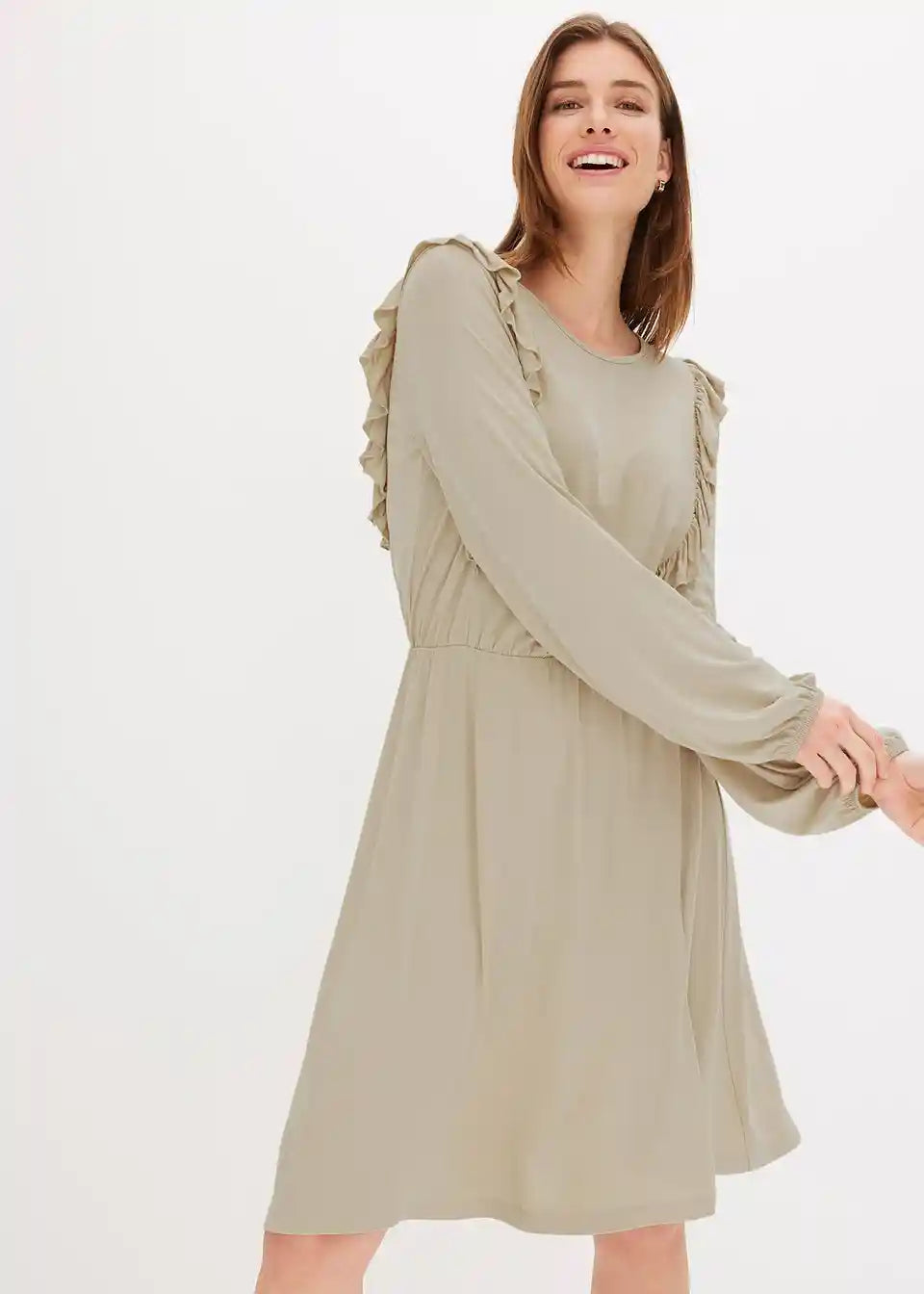 Ausgestelltes Shirtkleid mit Volants und Puffämeln