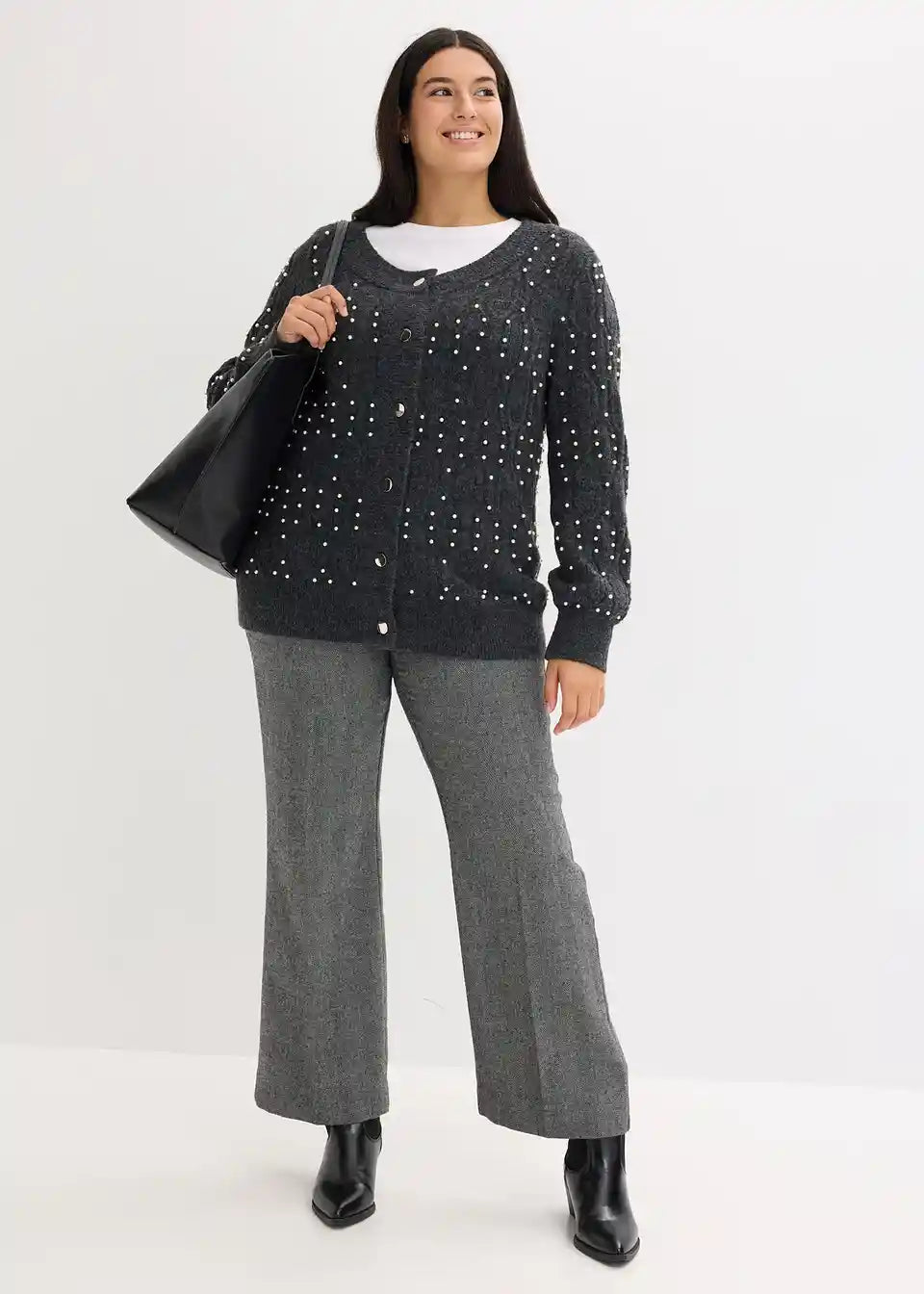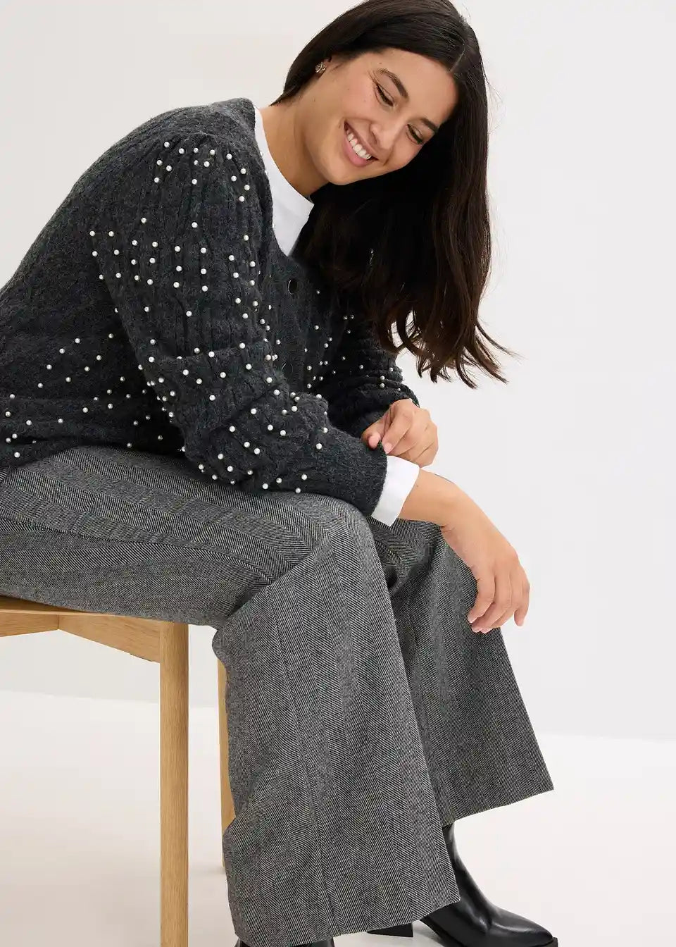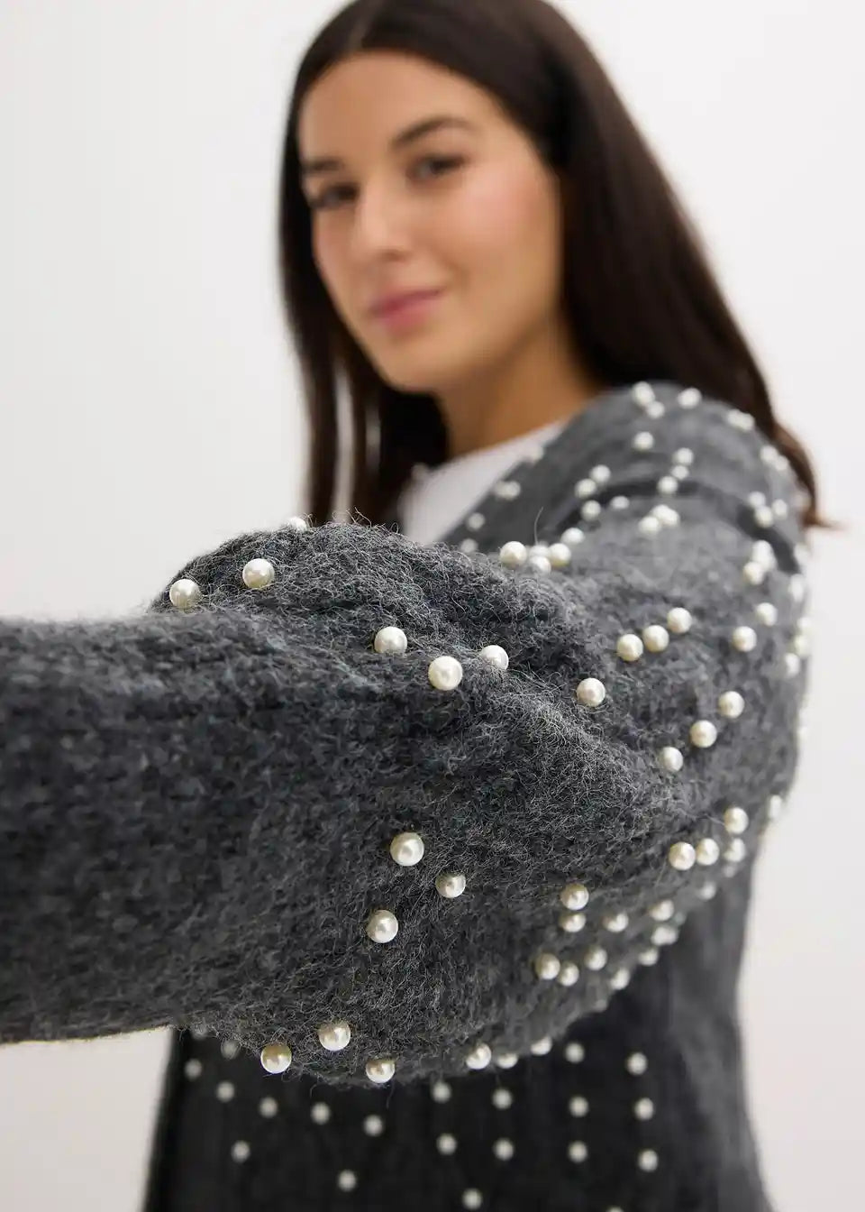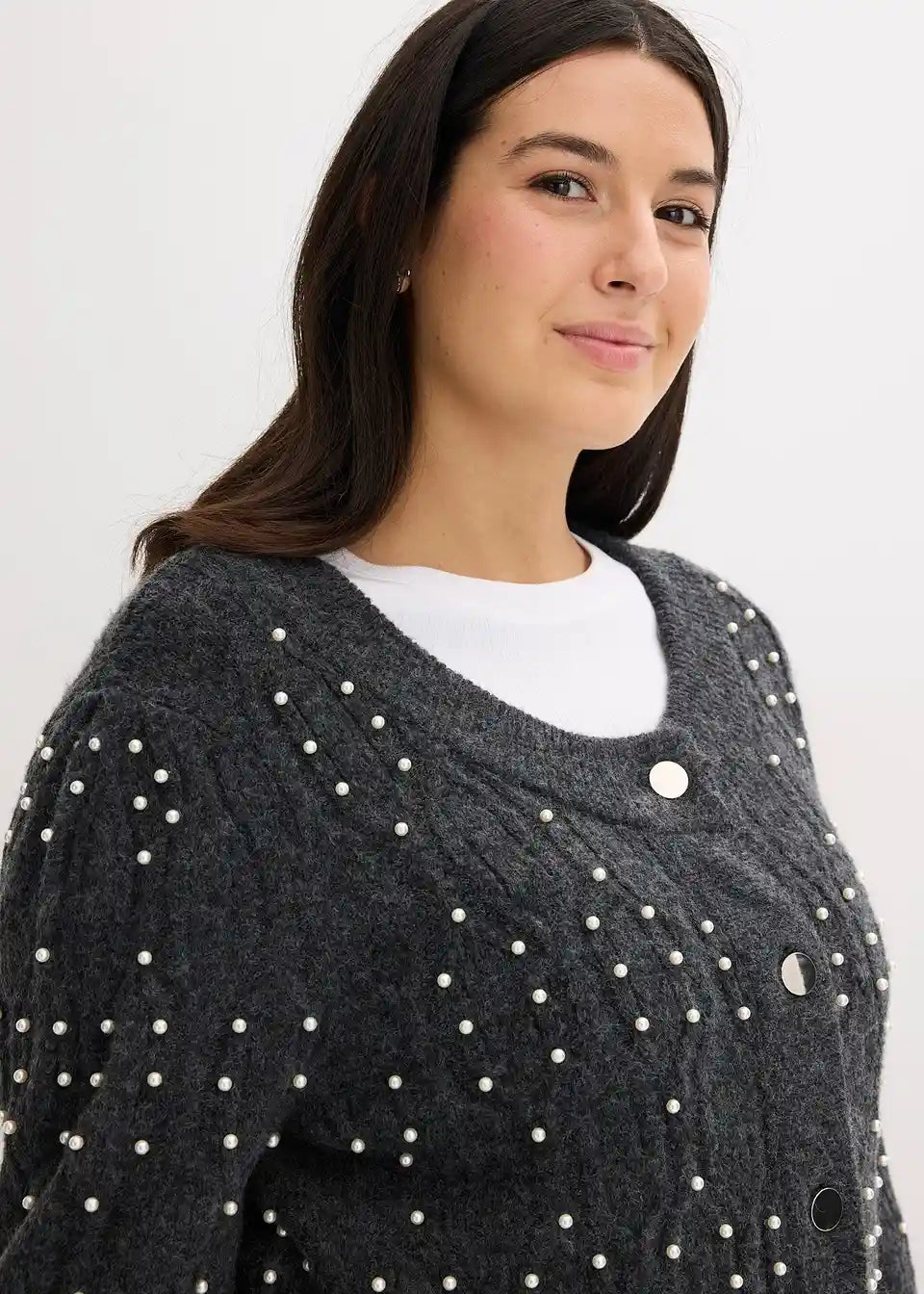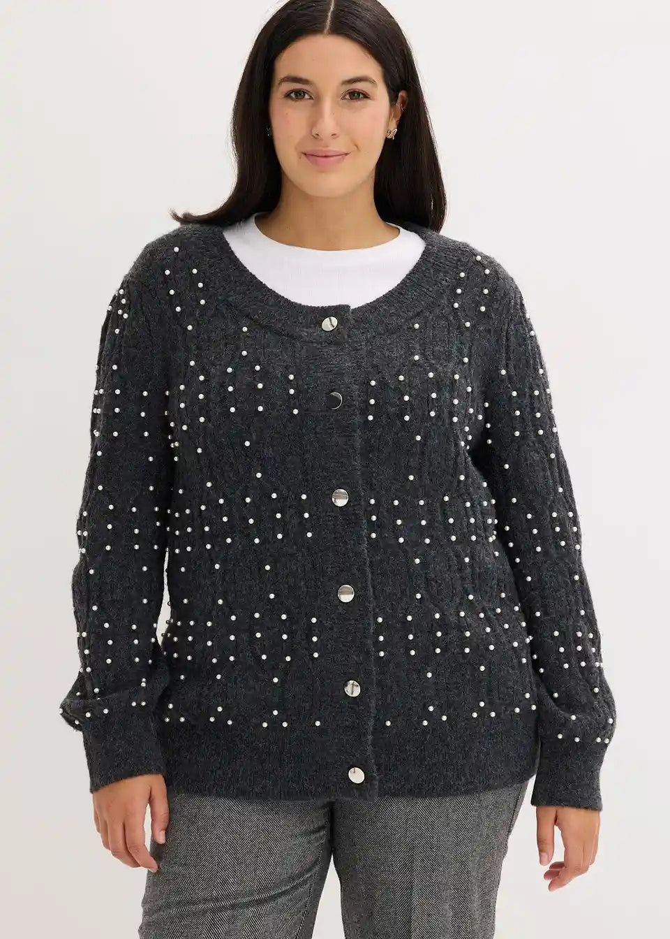 Modische Strickjacke mit Perlenverzierung