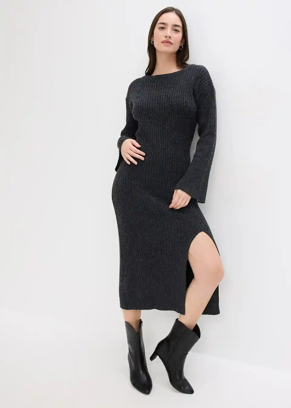 Mit U-Boot-Ausschnitt und langen Trompetenärmeln