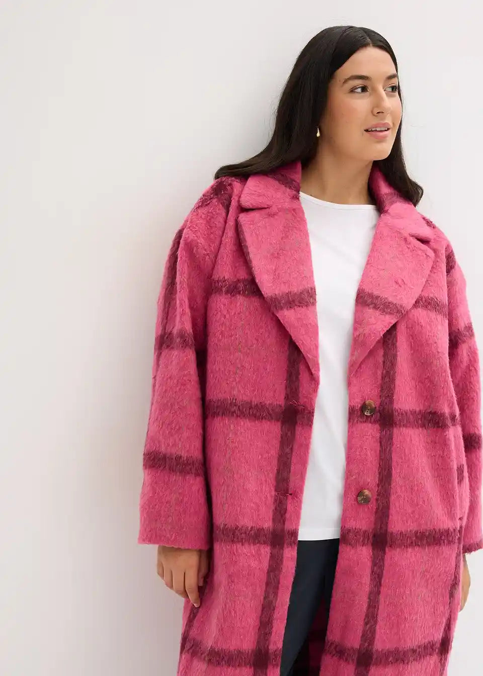 modischer Mantel in Wolloptik mit leichter Oversize-Passform und Knopfverschluss vorne