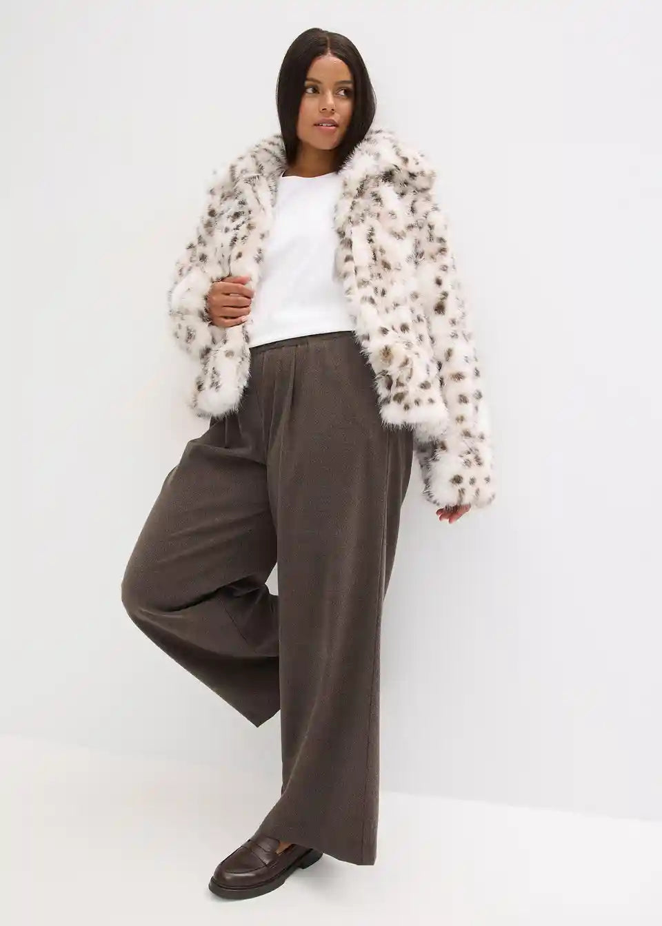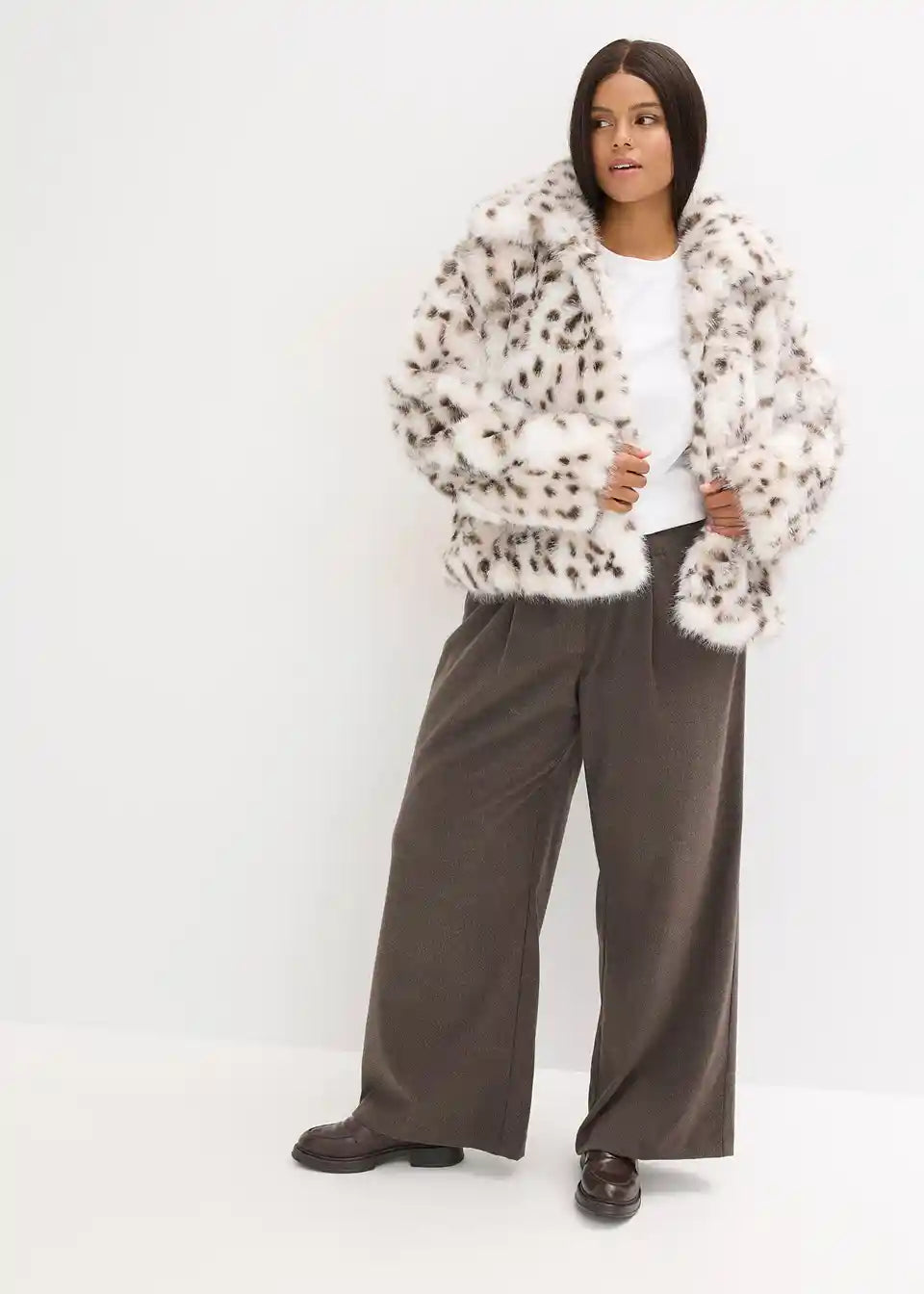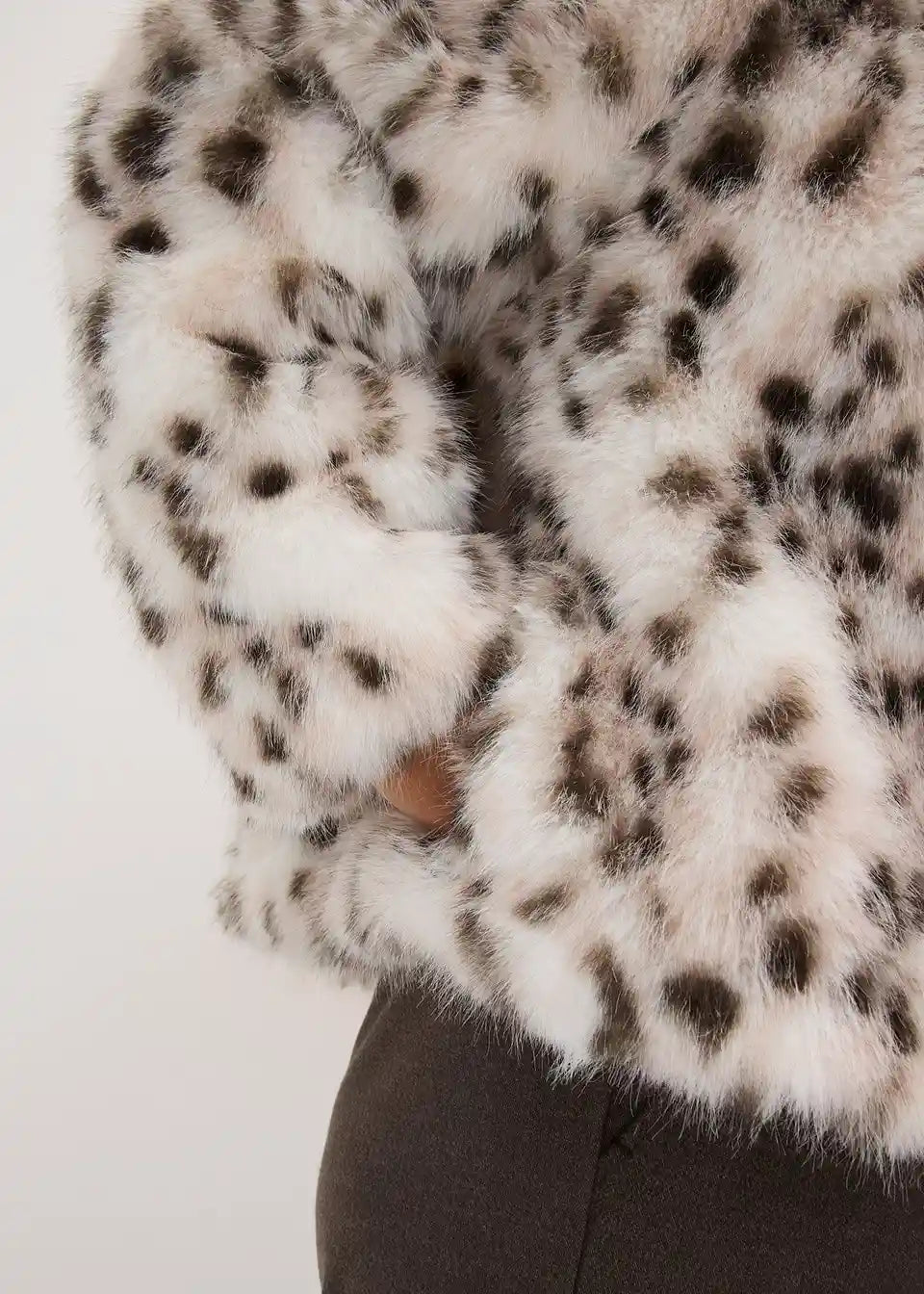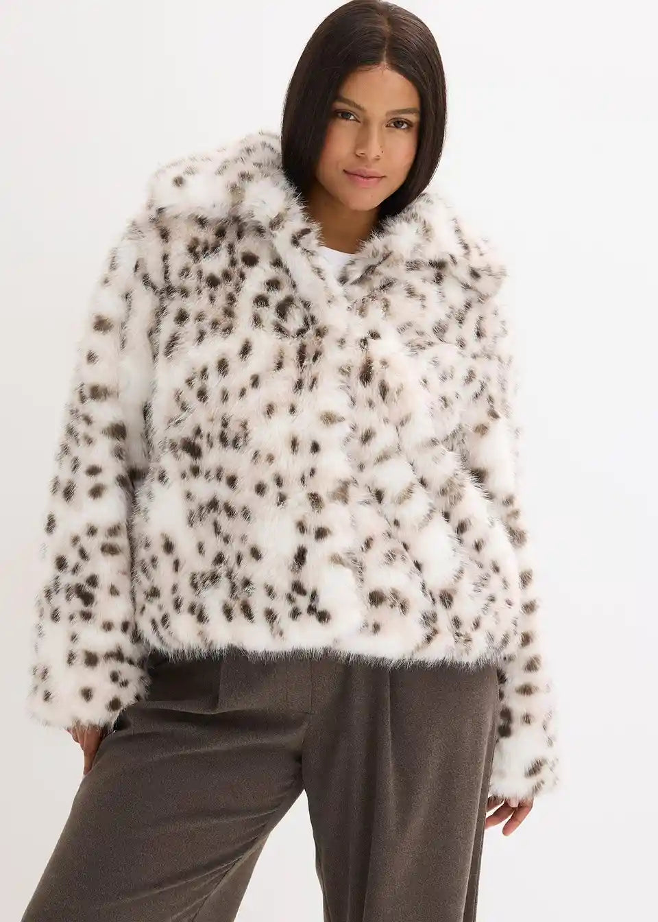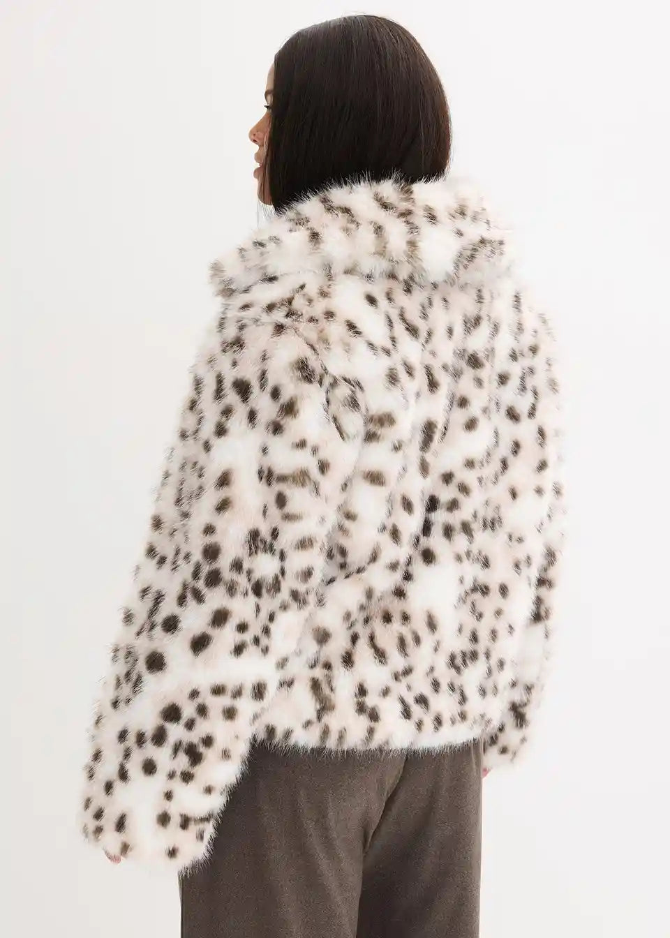 modische Fellimitat-Jacke mit Revers-Kragen und Druckknopf-Verschluss vorne.