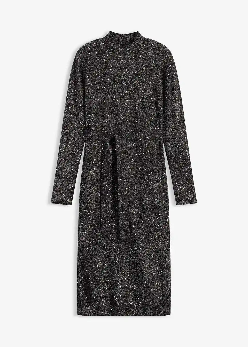 modisches Strickkleid in Midilänge mit Pailletten und leichtem Glitzereffekt