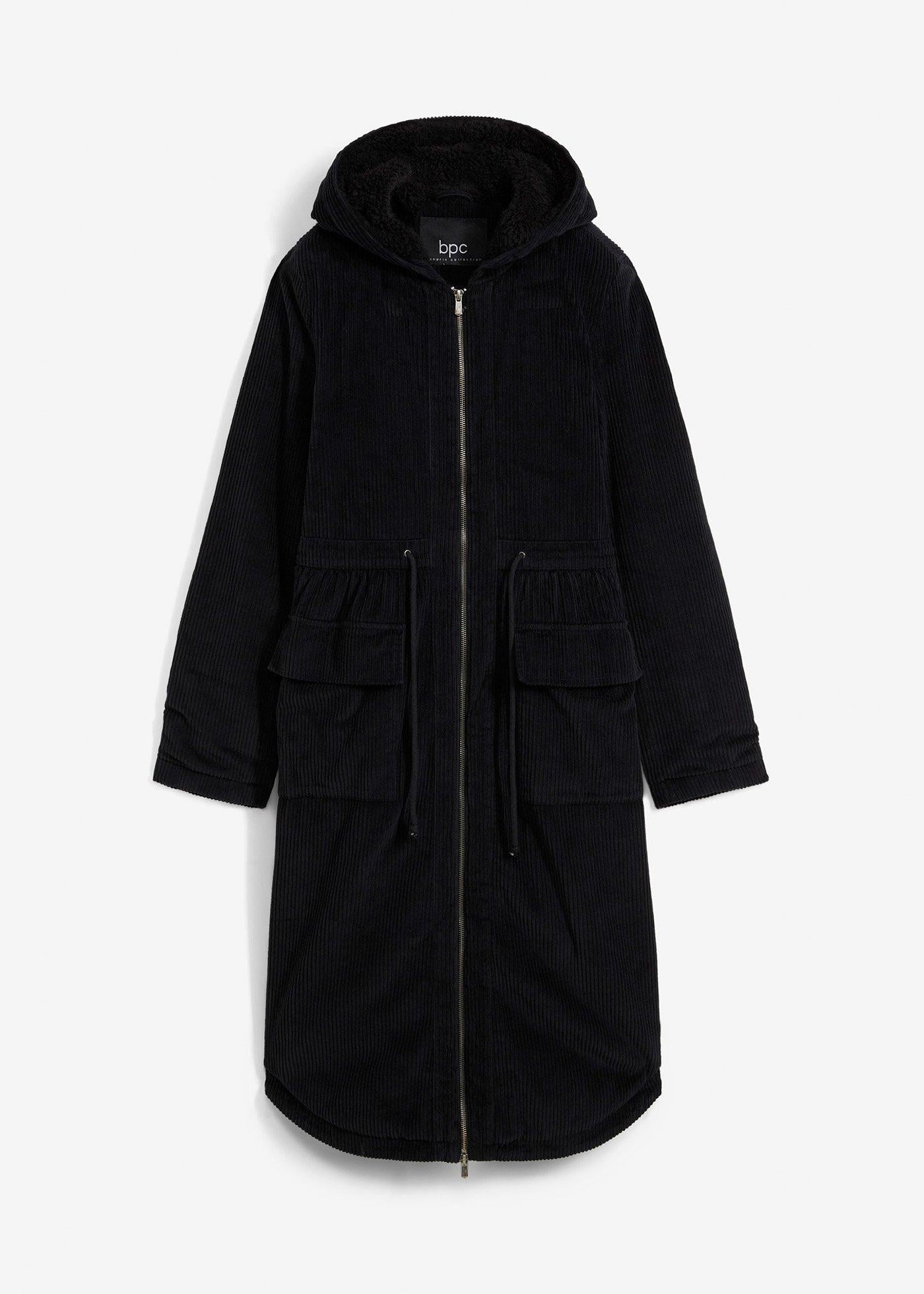 Plašč iz žameta s kapuco iz umetnega ovčjega krzna iz čistega bombaža