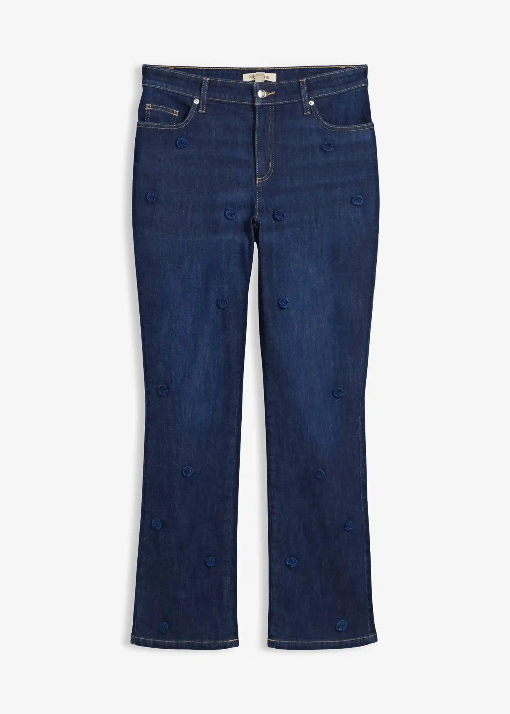 Ravne kavbojke s srednje visokim pasom s cvetlicami