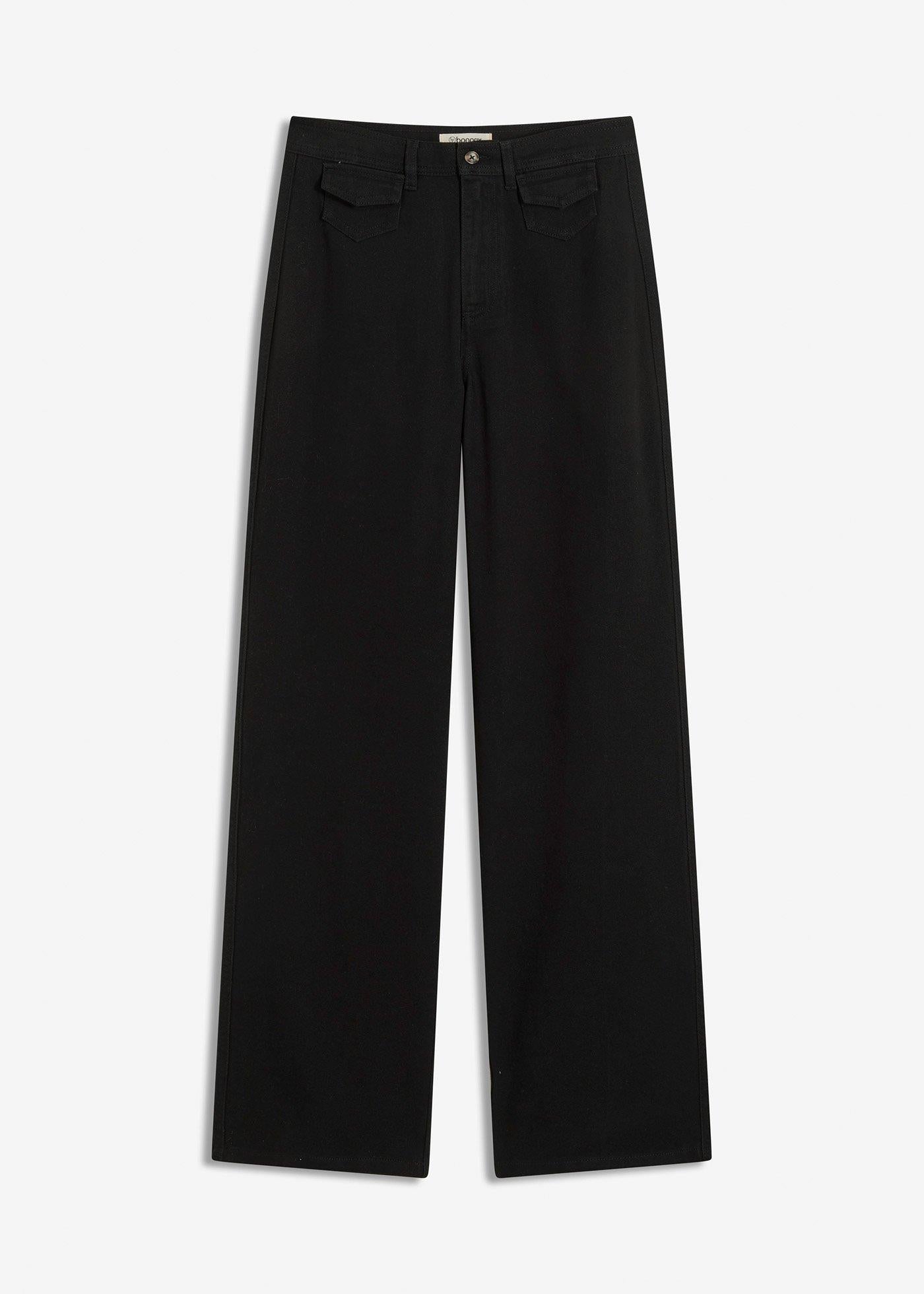 V pasu visoko krojene hlače iz kepra z našitimi žepi