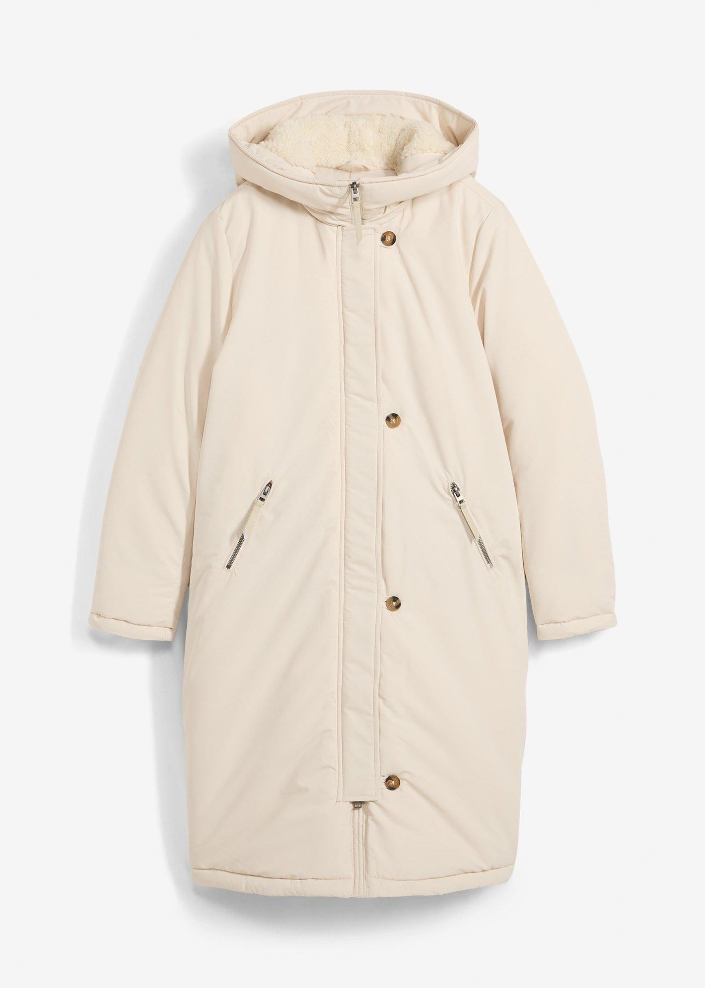 Zimski plašč z umetnim ovčjim krznom v kapuci