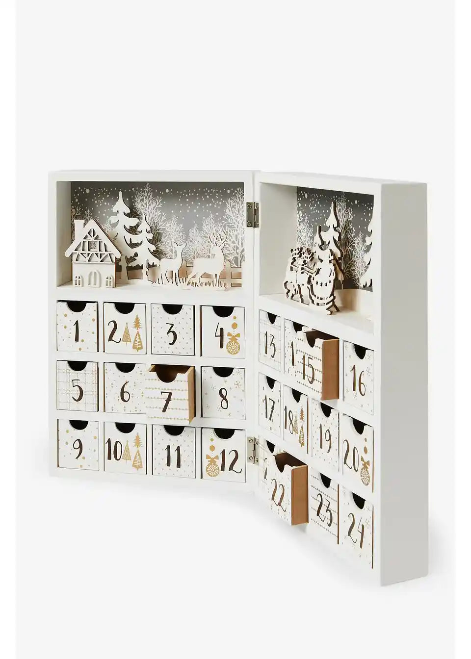 Entdecke unseren zauberhaften Adventskalender! Mit winterlichem Tannen- und Reh-Motiv sowie einem gemütlichen Häuschen lädt er zum täglichen Staunen ein. Hinter den 24 kleinen Schubladen verbirgt sich jeden Tag eine neue, kleine Überraschung, die die Vorfreude auf Weihnachten steigen lässt. Ideal zum Aufklappen und Hinstellen, verschönert er Dein Zuhause in der Adventszeit.