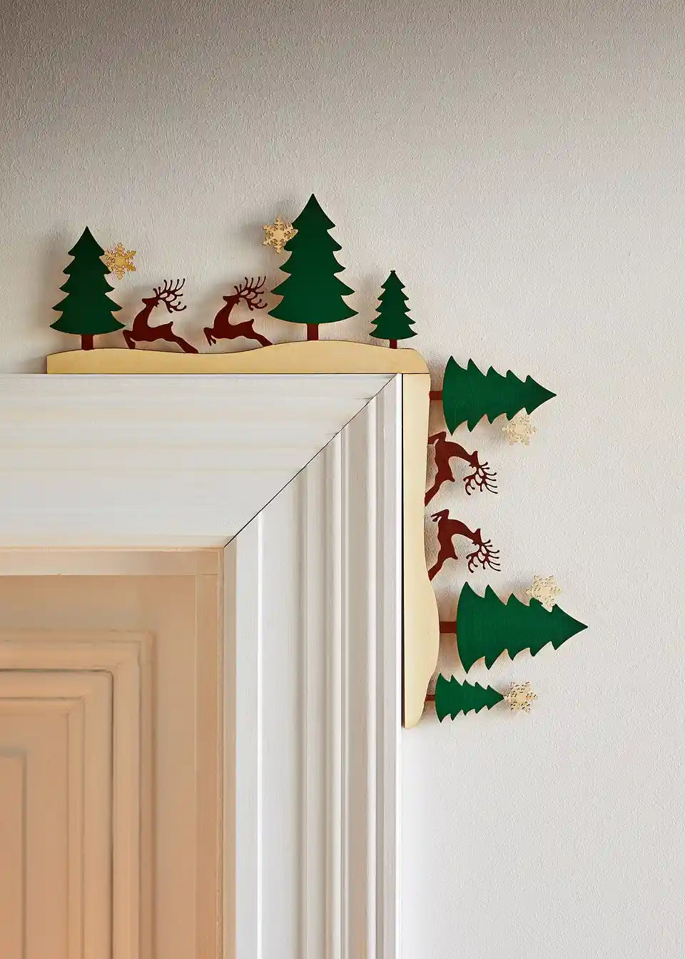 Hol Dir den Winterzauber ins Haus! Unsere Türrahmendeko mit fröhlichen Bäumen und Elchen bringt Weihnachtsstimmung in jeden Raum. Perfekt für Türrahmen, aber auch für Kommoden oder Sideboards. Lass Dich von weihnachtlichen Motiven verzaubern.